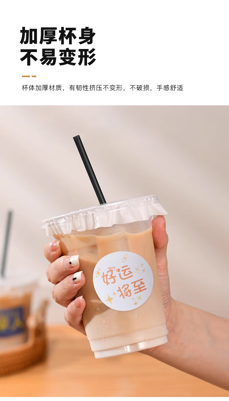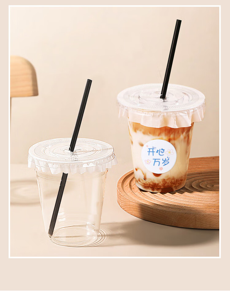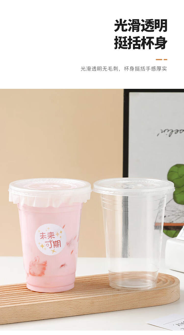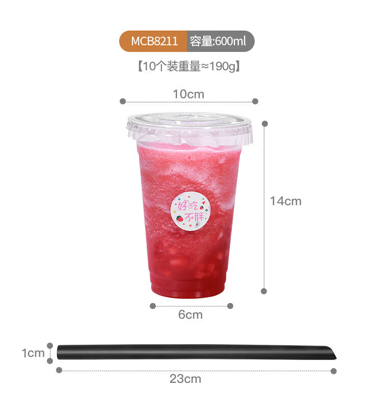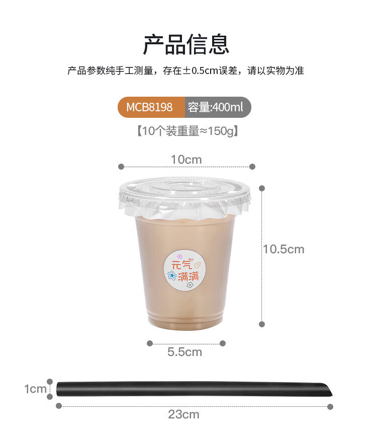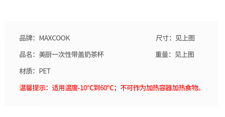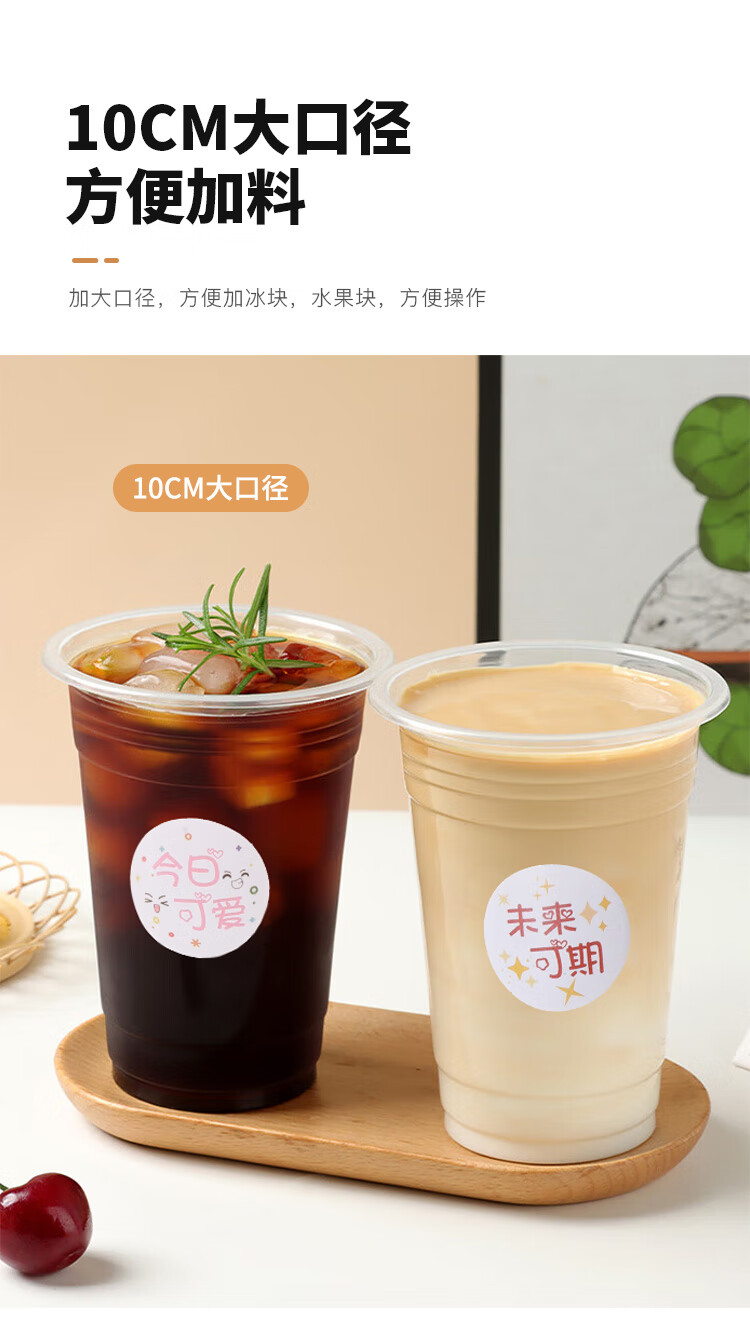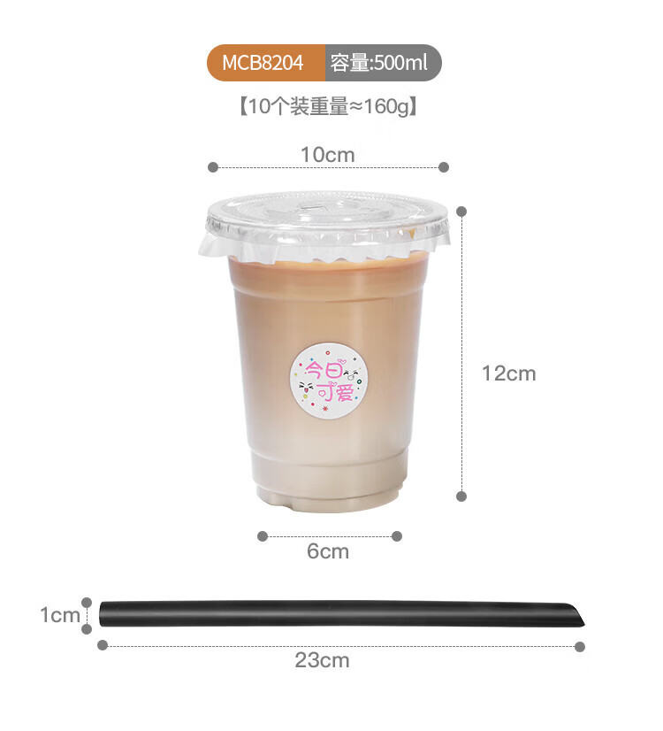 MAXCOOK milk tea cup disposable cup drink cup coffee cup 500ml set of 10 with lid and straw sticker MCB8204