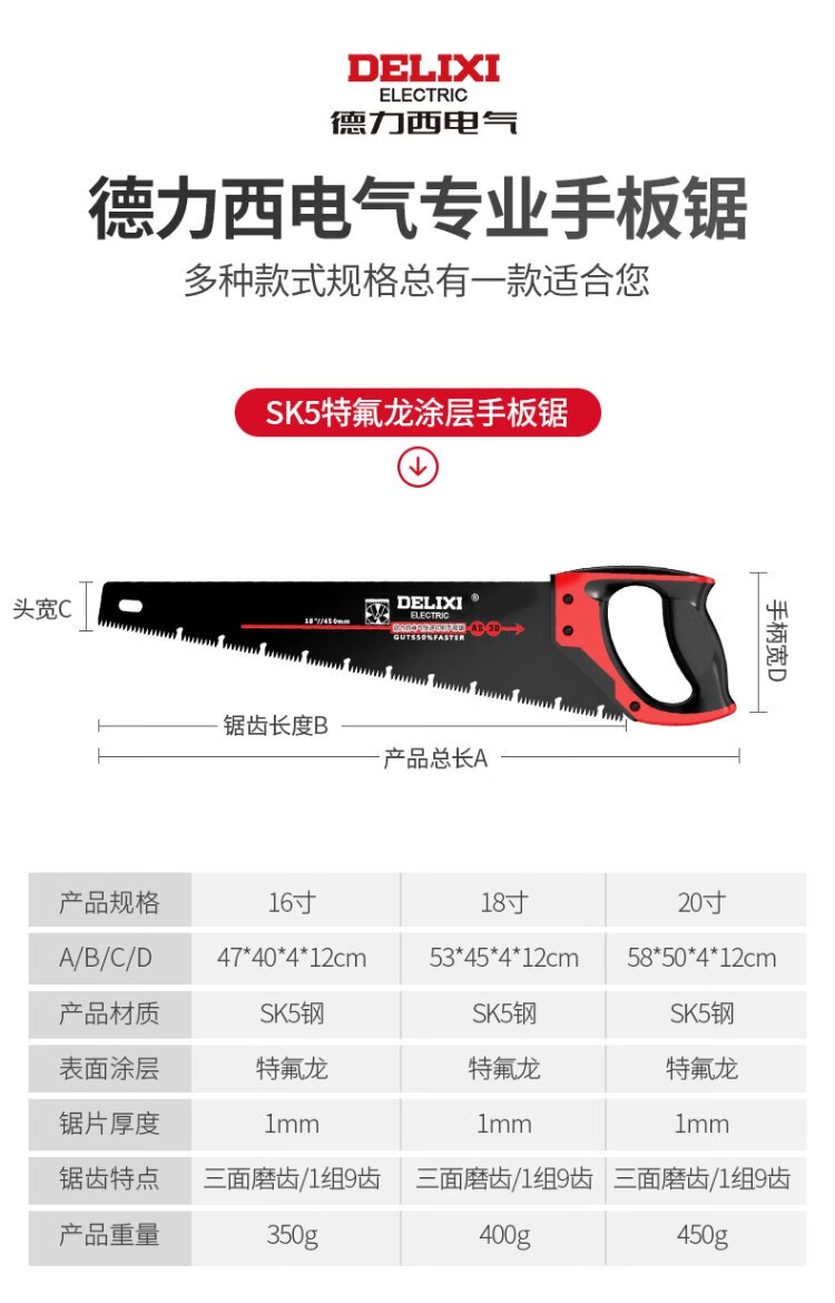 Delixi hand saw household wood saw hand-held fast saw woodworking saw hand saw hand panel saw felling wood