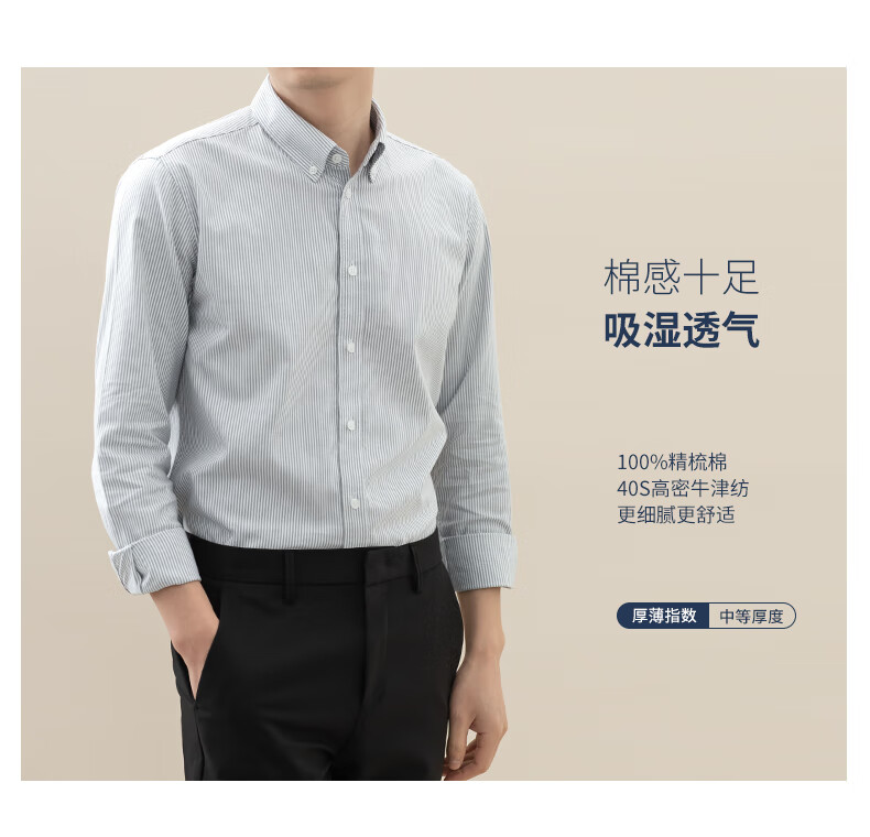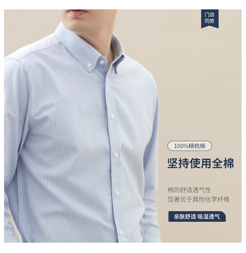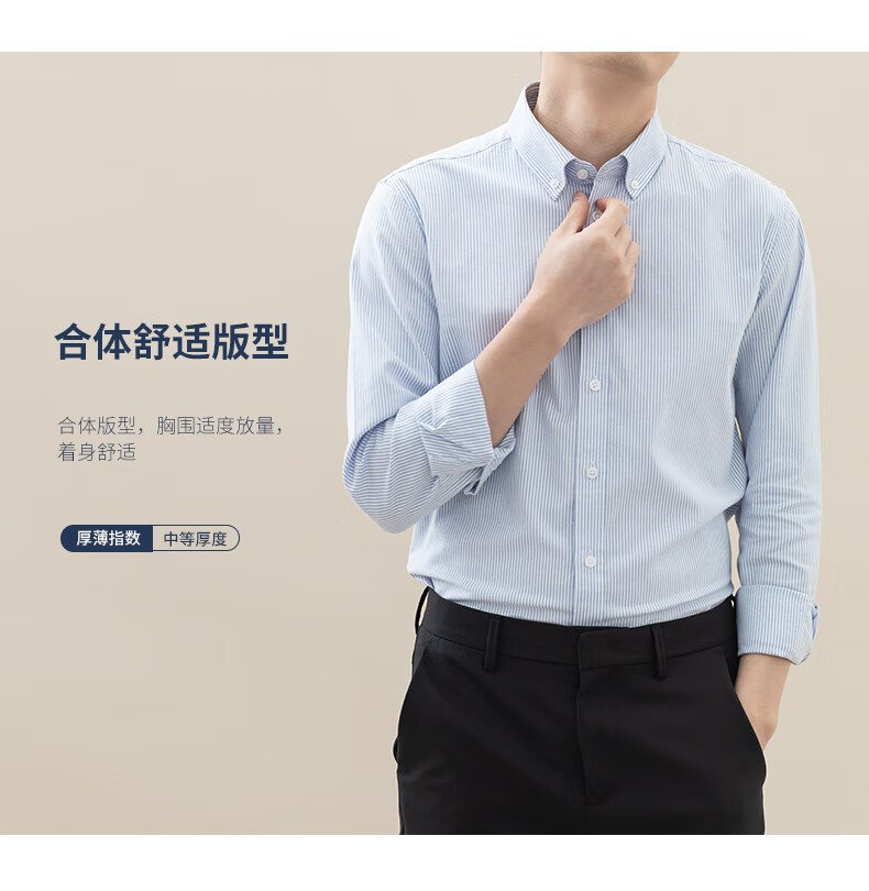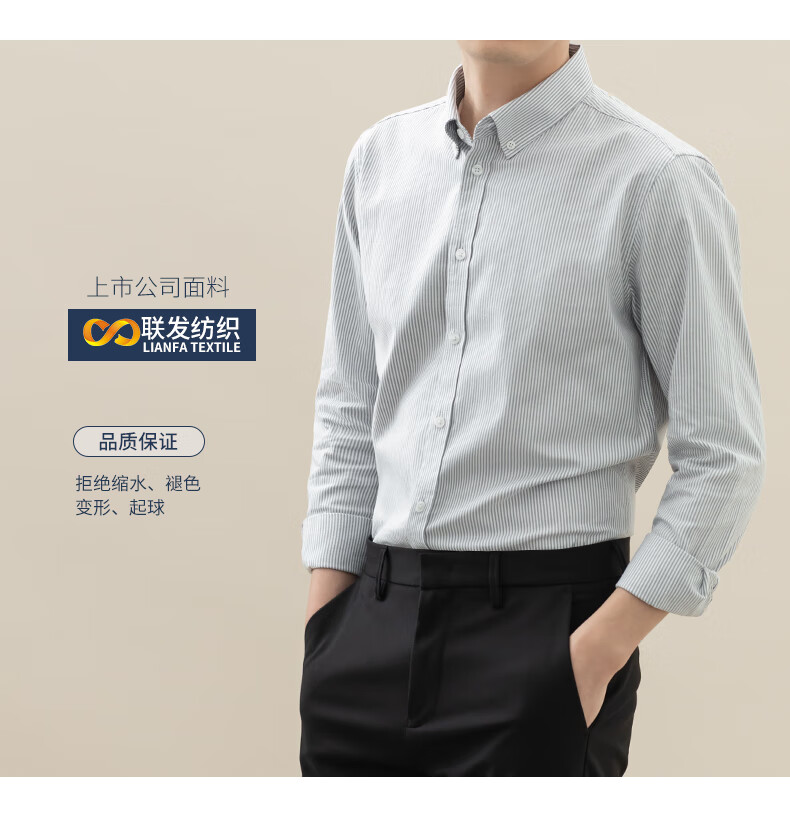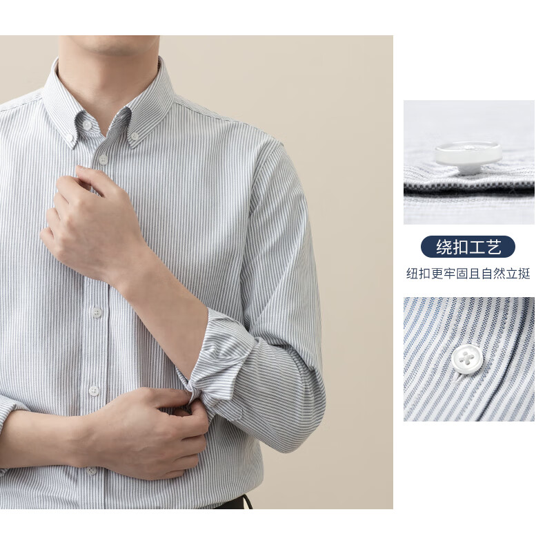 BLACKMONDAY combed cotton pure cotton Oxford long-sleeved shirt men's cotton vertical stripe men's anti-wrinkle business casual shirt