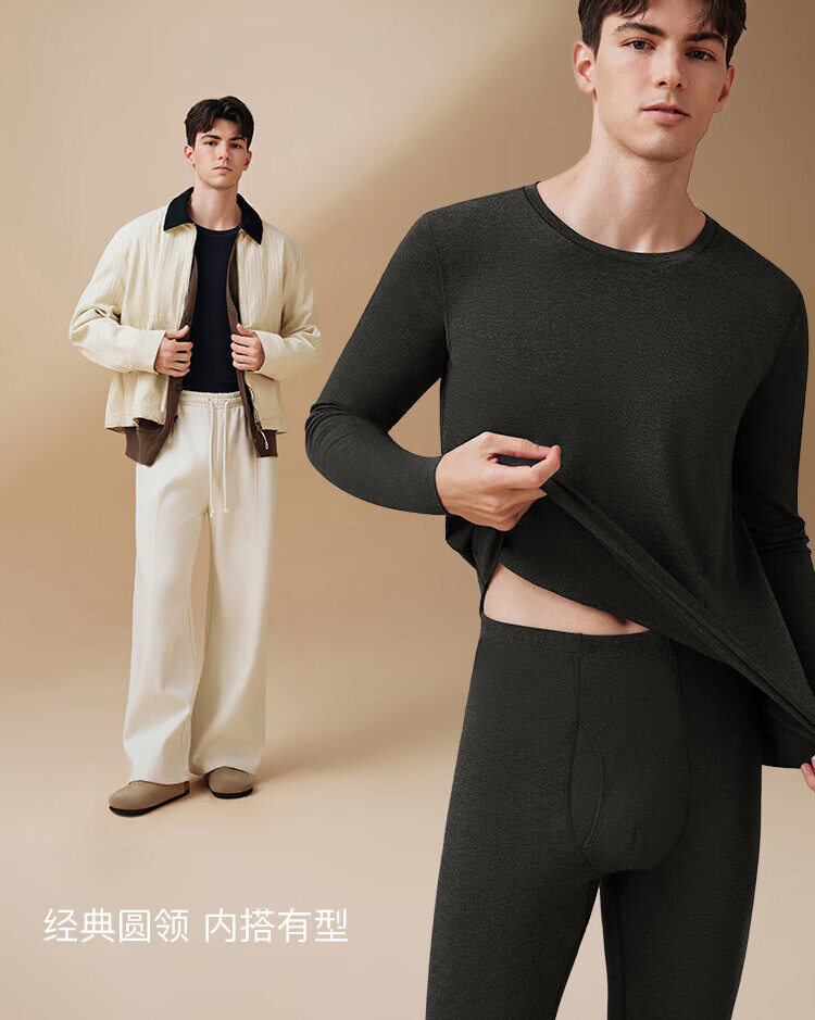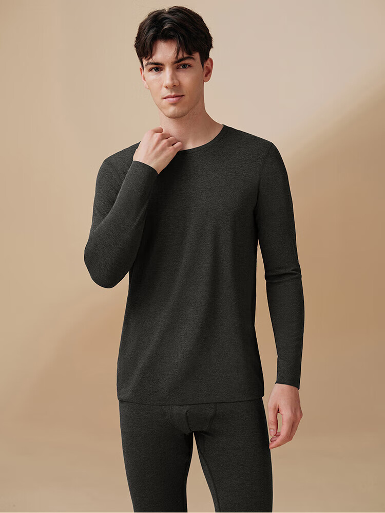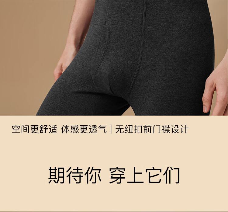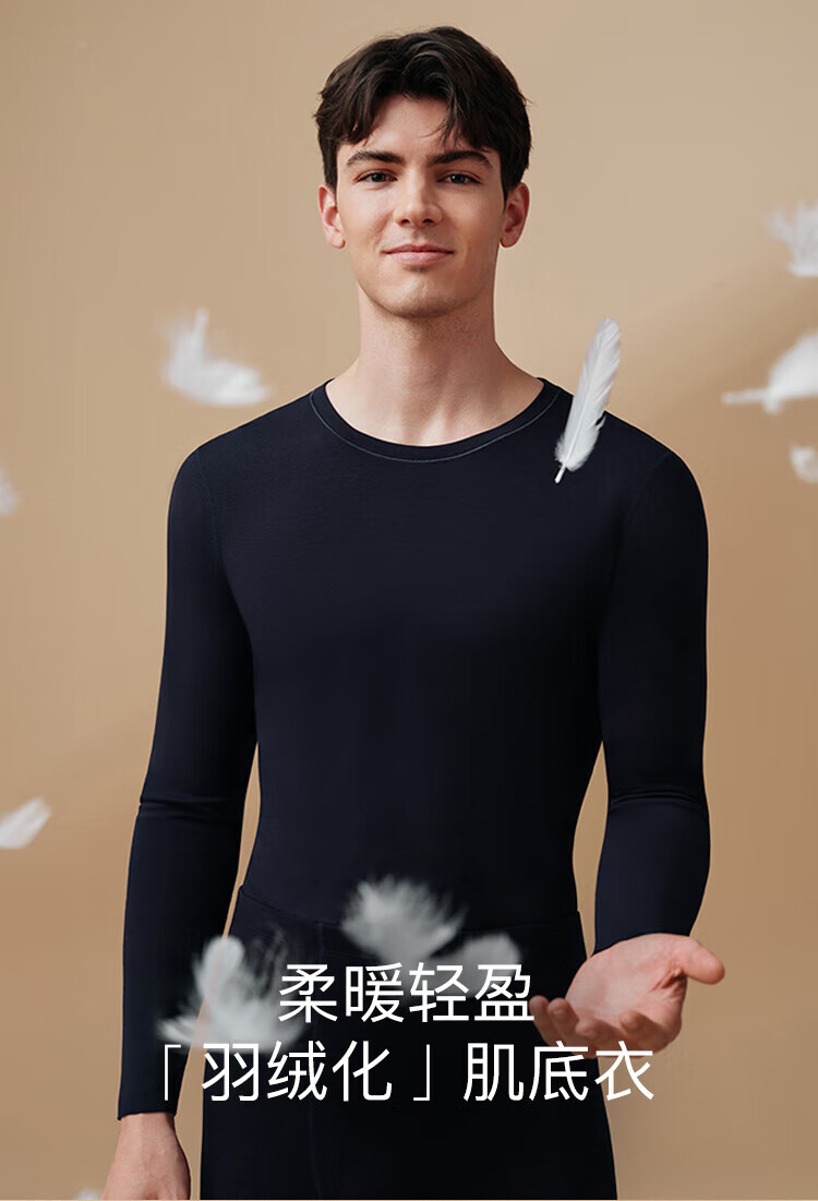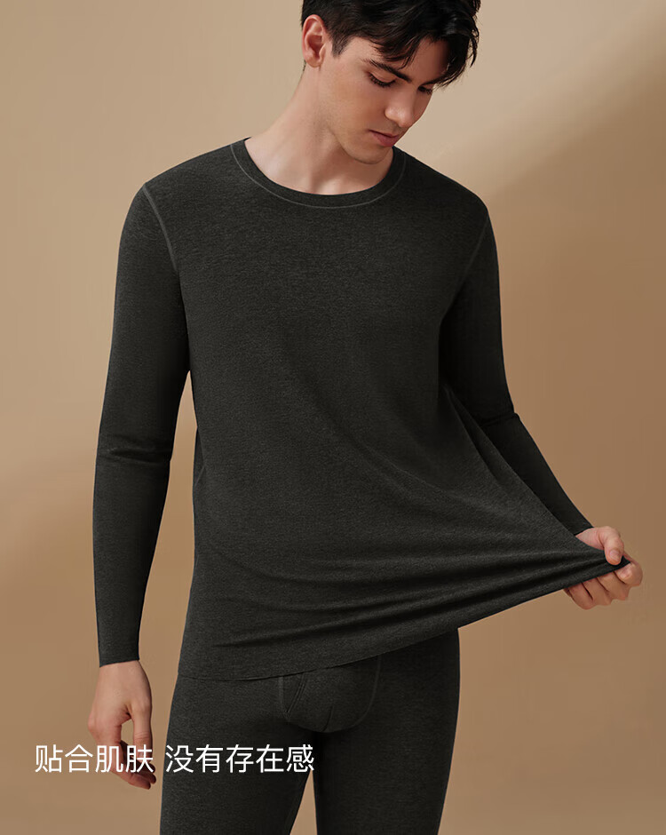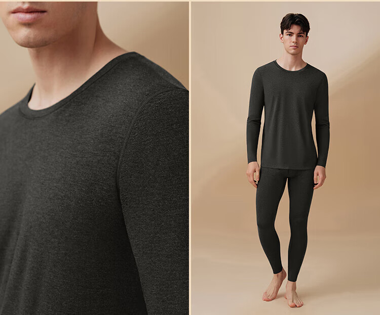 ubras新柔暖羽绒化肌底衣套装男保暖秋衣秋裤情侣打底轻暖花深灰 L