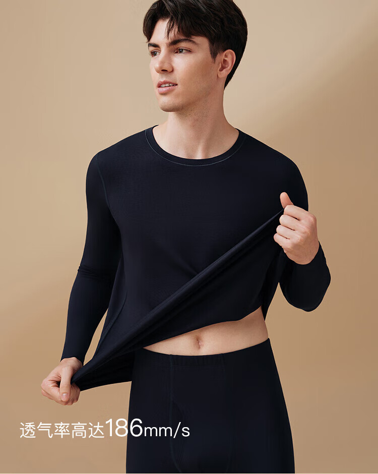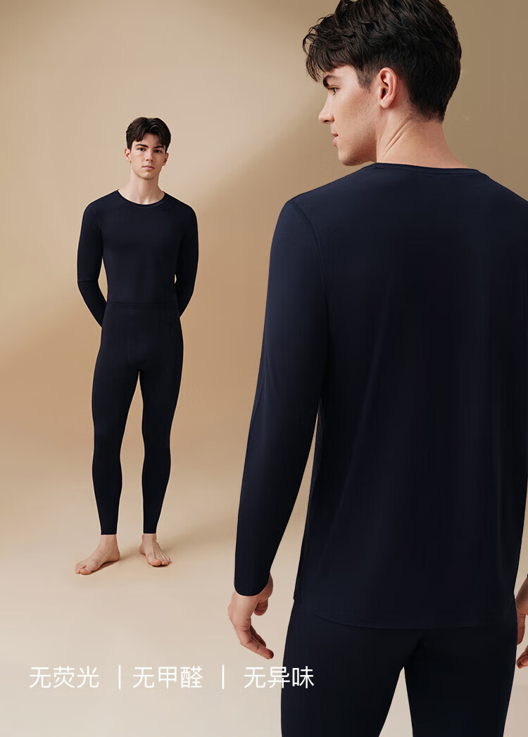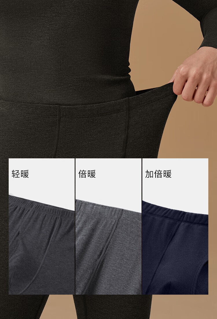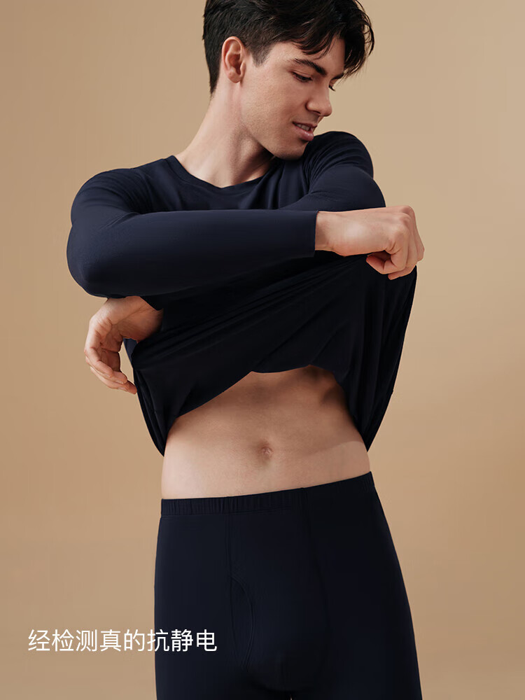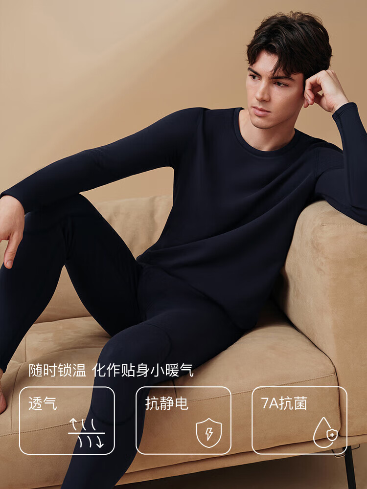 ubras新柔暖羽绒化肌底衣套装男保暖秋衣秋裤情侣打底轻暖花深灰 L