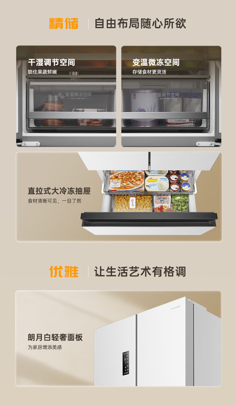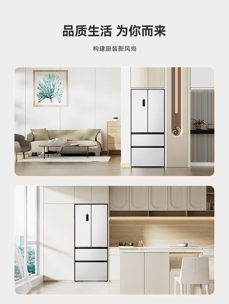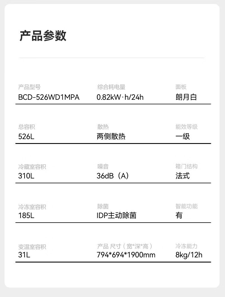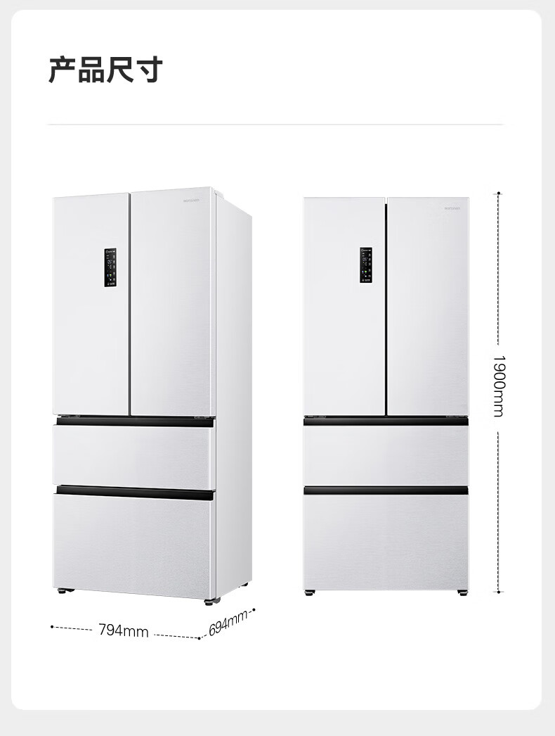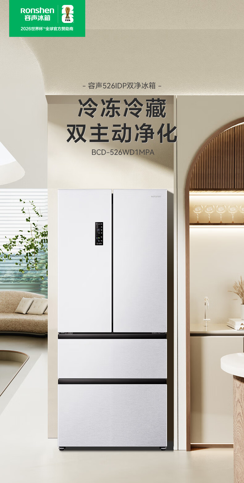 Rongsheng 526-liter dual-clean dual-system French multi-door four-door refrigerator household first-class energy efficiency air-cooled frost-free energy-saving large capacity BCD-526WD1MPA white national subsidy