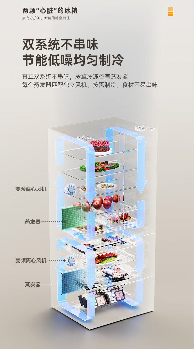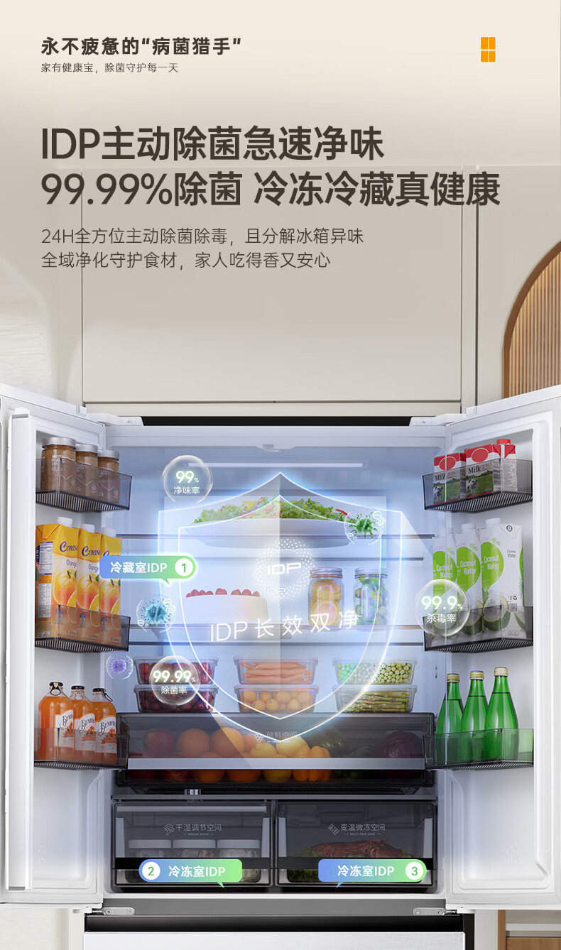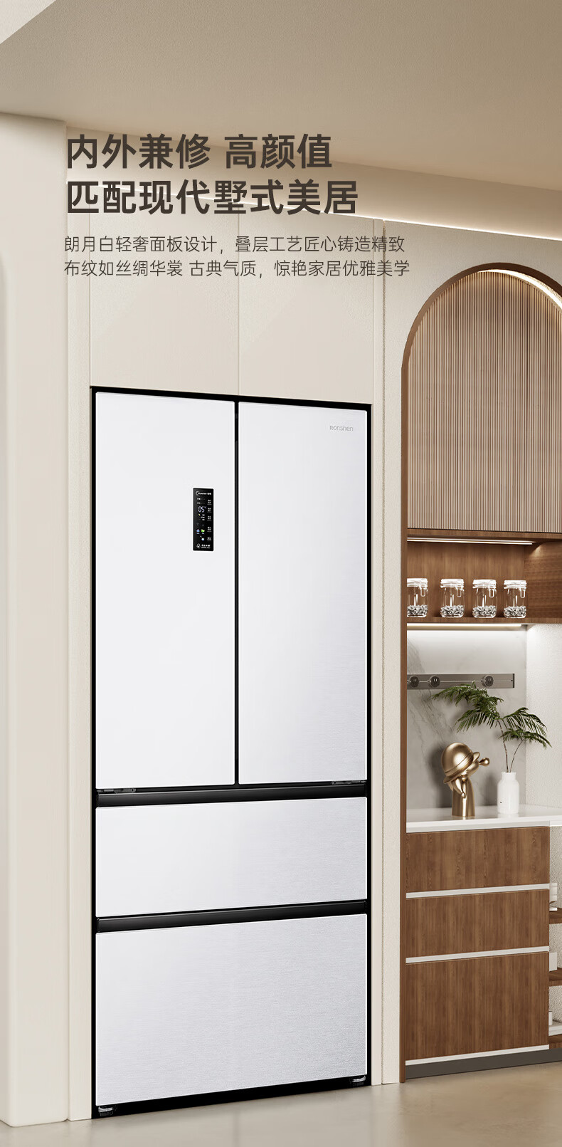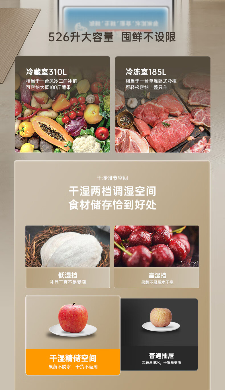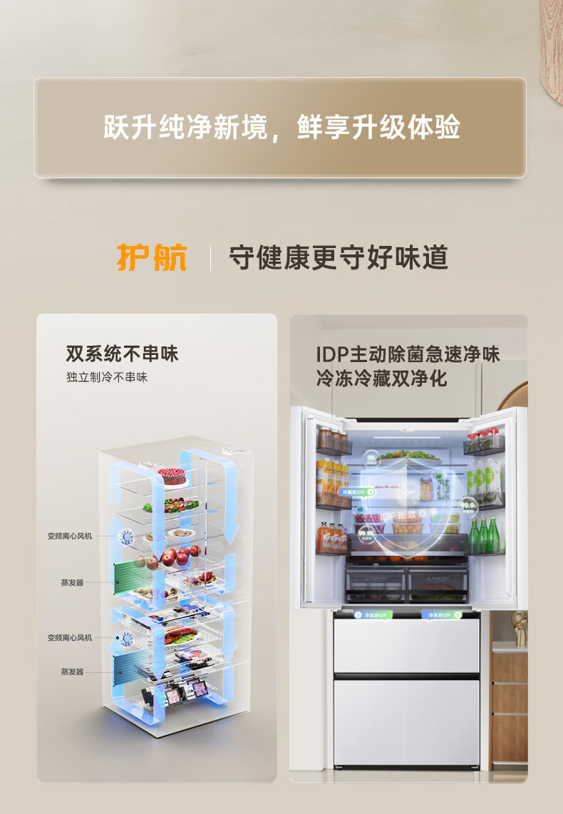 Rongsheng 526-liter dual-clean dual-system French multi-door four-door refrigerator household first-class energy efficiency air-cooled frost-free energy-saving large capacity BCD-526WD1MPA white national subsidy