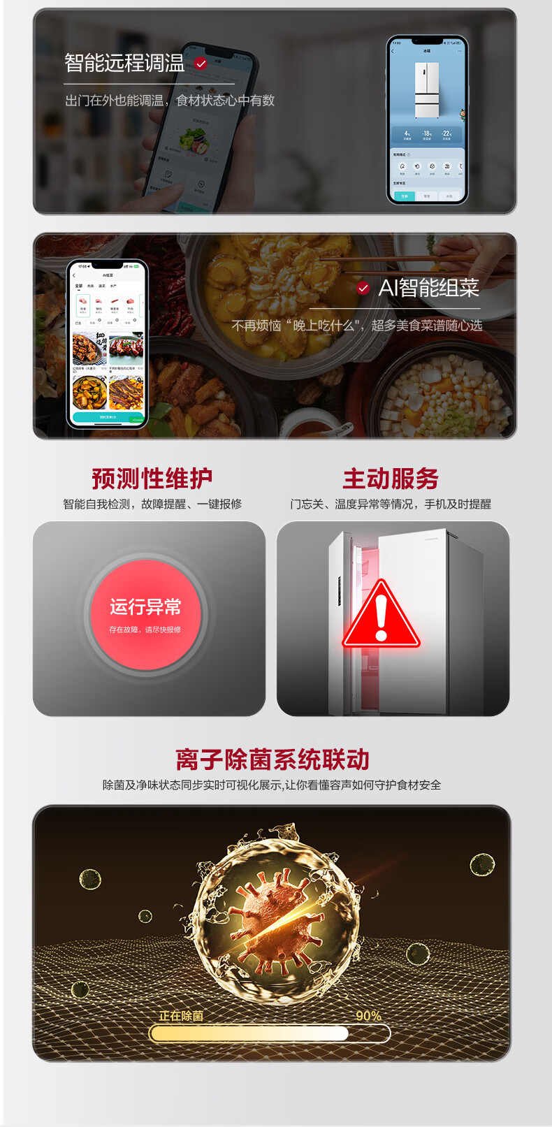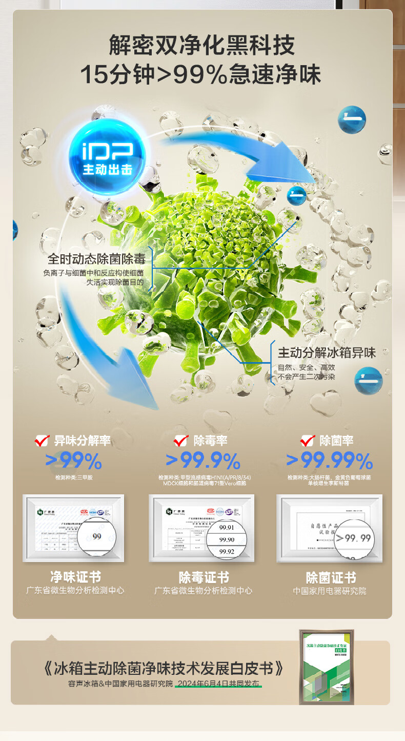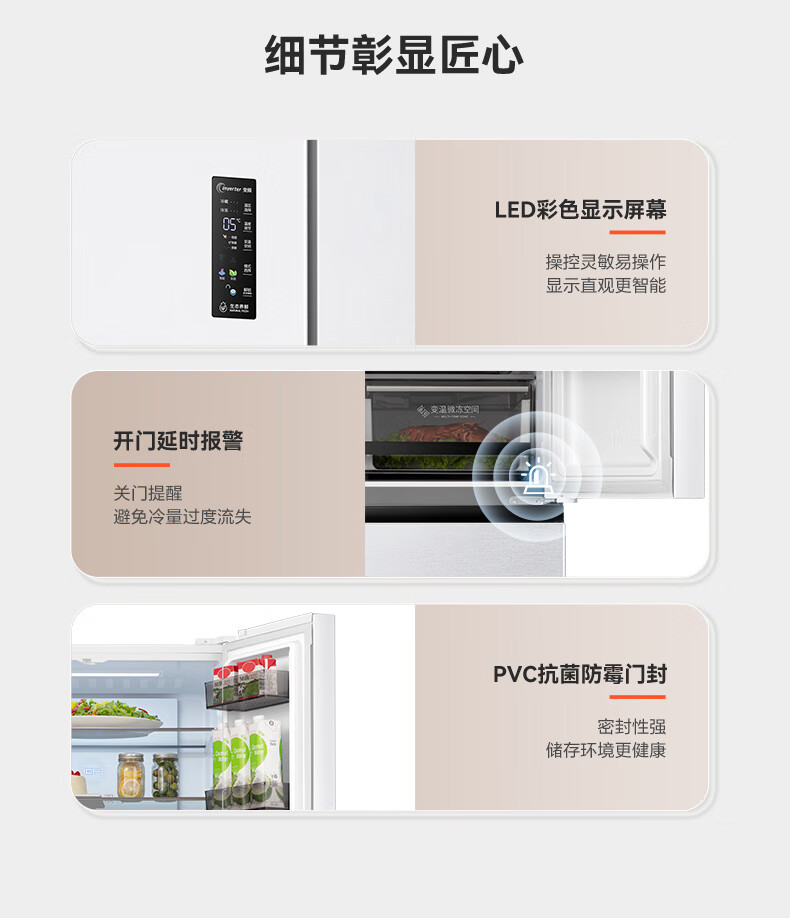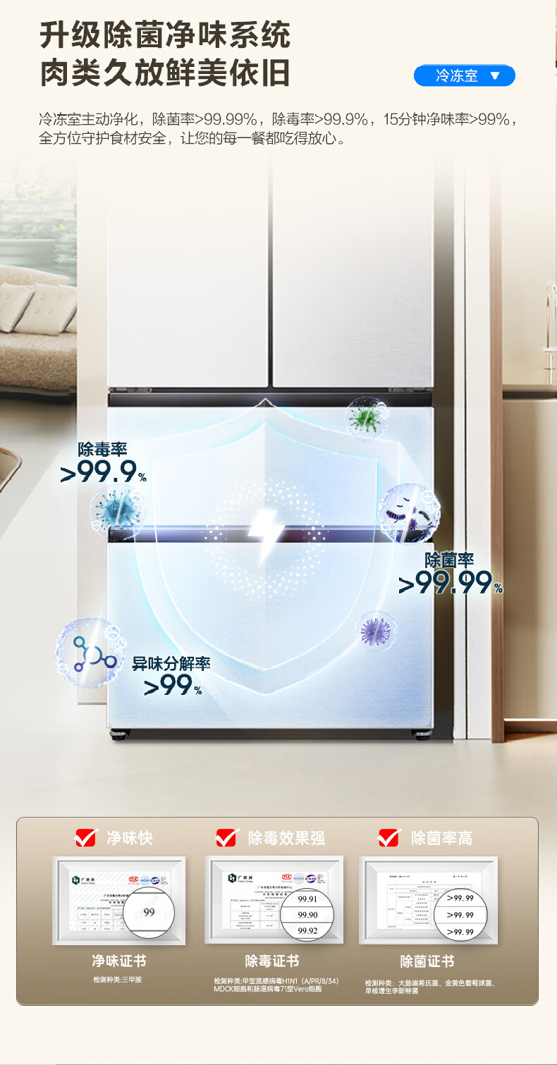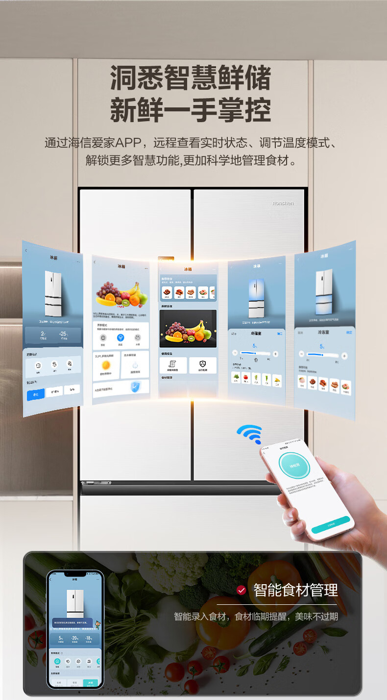 Rongsheng 526-liter dual-clean dual-system French multi-door four-door refrigerator household first-class energy efficiency air-cooled frost-free energy-saving large capacity BCD-526WD1MPA white national subsidy