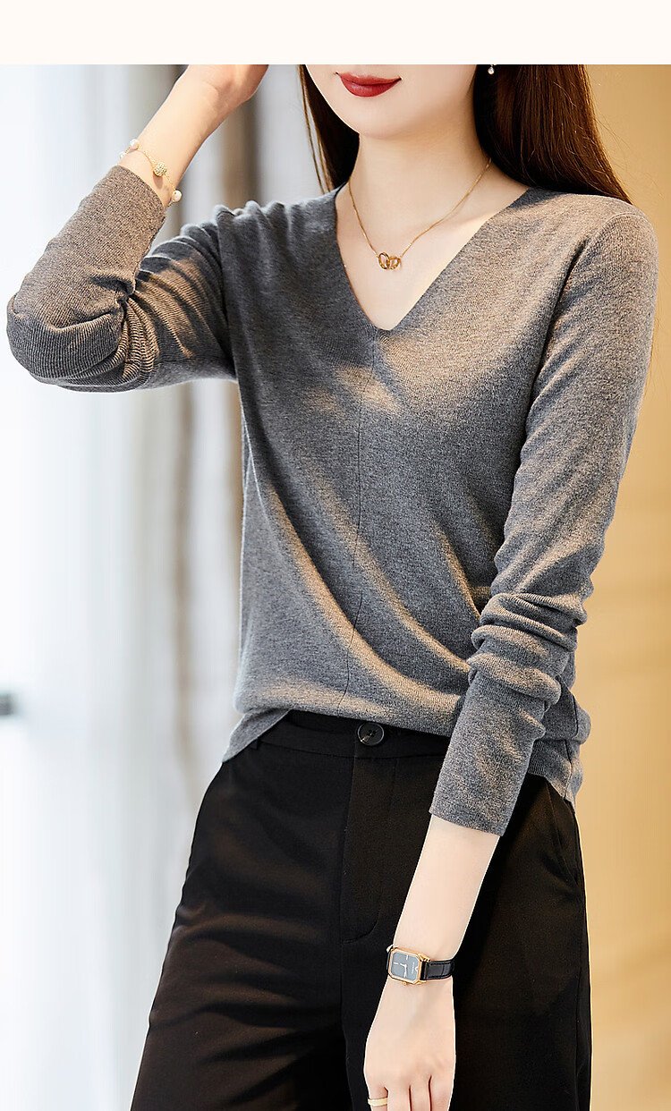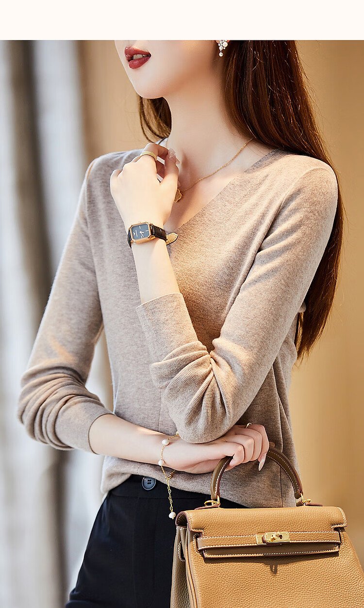 Demana Capsule Wardrobe Series Spring and Autumn Paper Man V-neck Sweater Lazy Hidden Body Loose Feeling Knitted Sweater Women's Top
