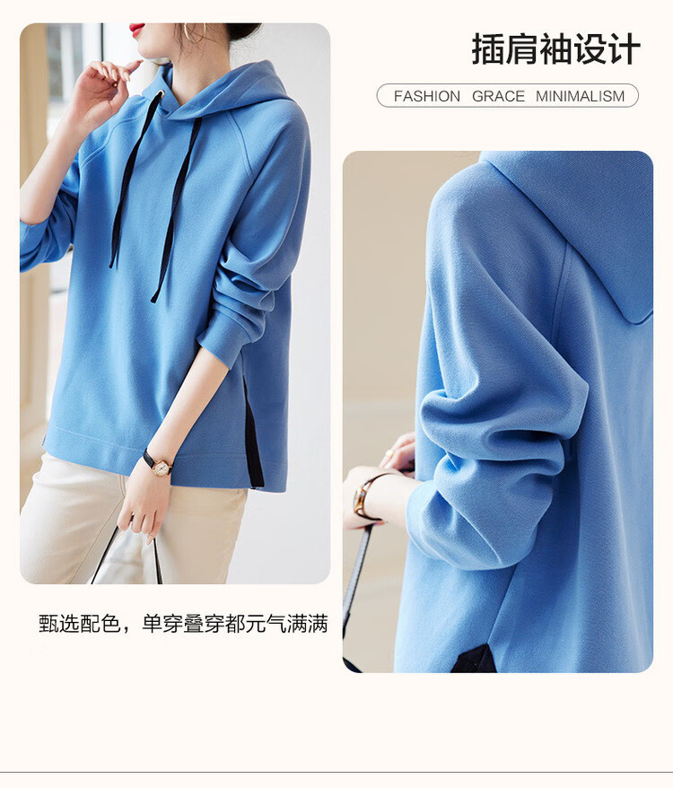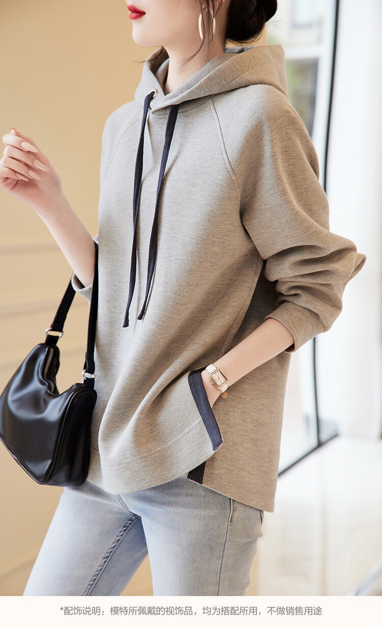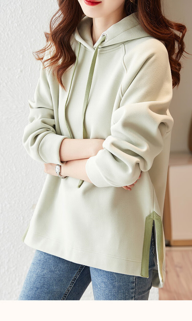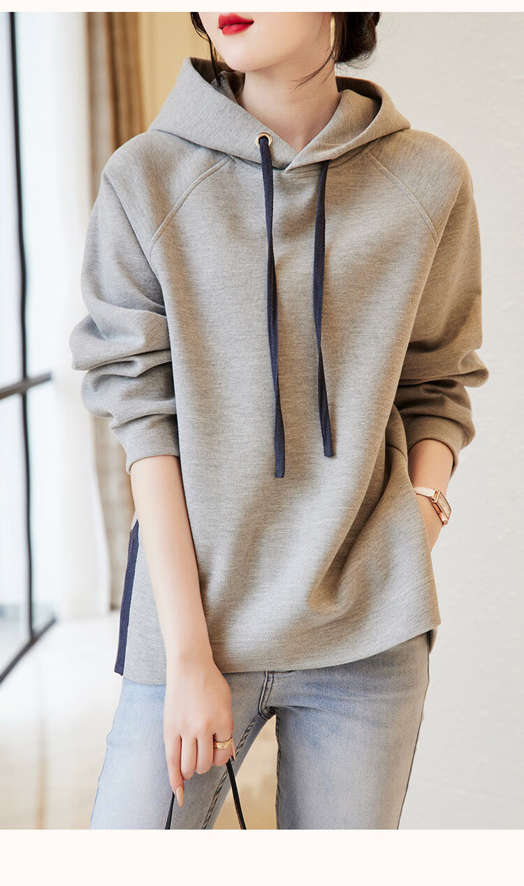 Demana Slit Craft Spring and Autumn Hooded Loose Casual Micro-Elastic Long-Sleeved Sweatshirt for Women Gray Velvet XL