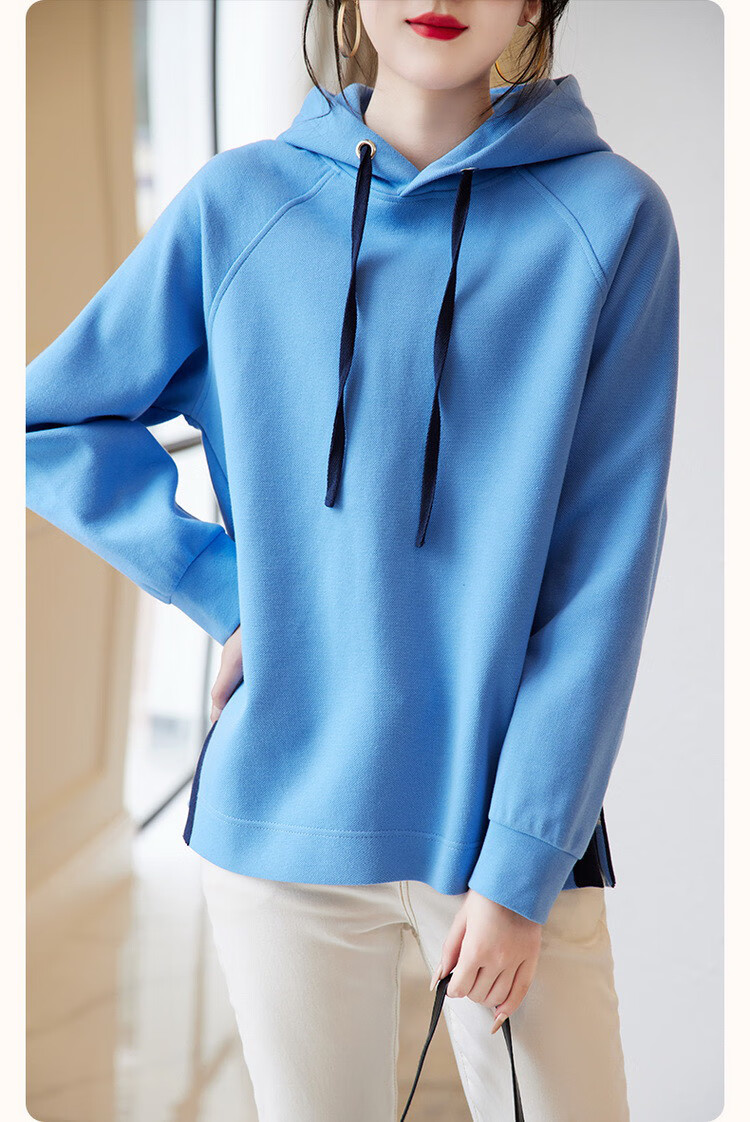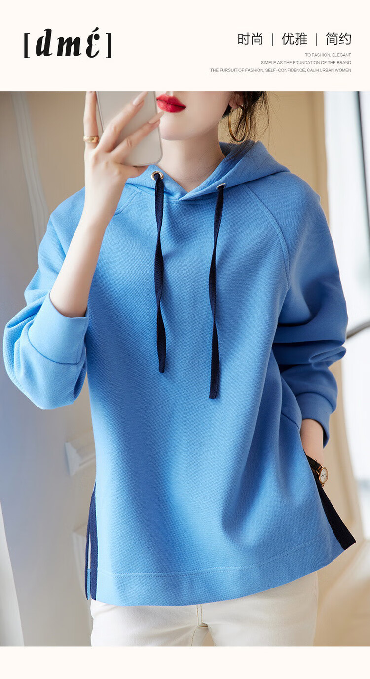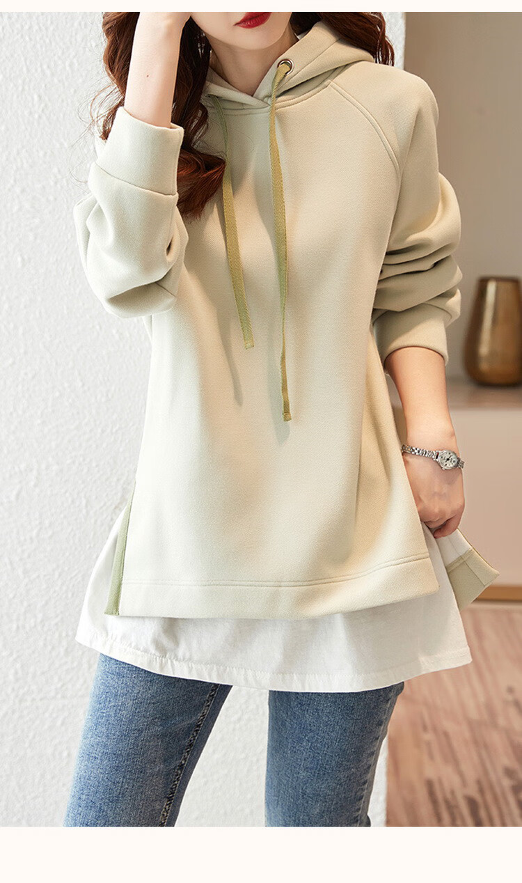 Demana Slit Craft Spring and Autumn Hooded Loose Casual Micro-Elastic Long-Sleeved Sweatshirt for Women Gray Velvet XL