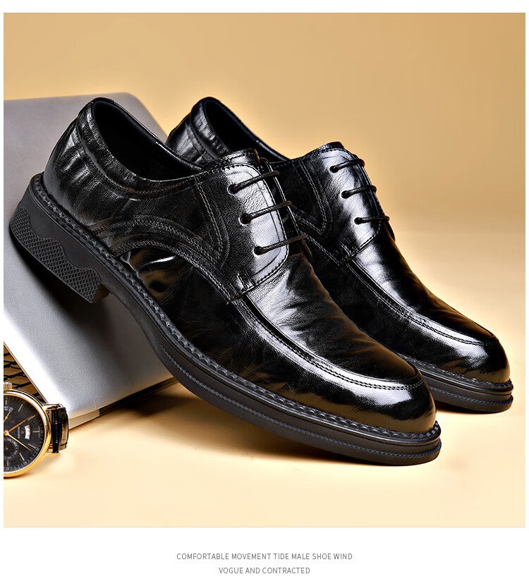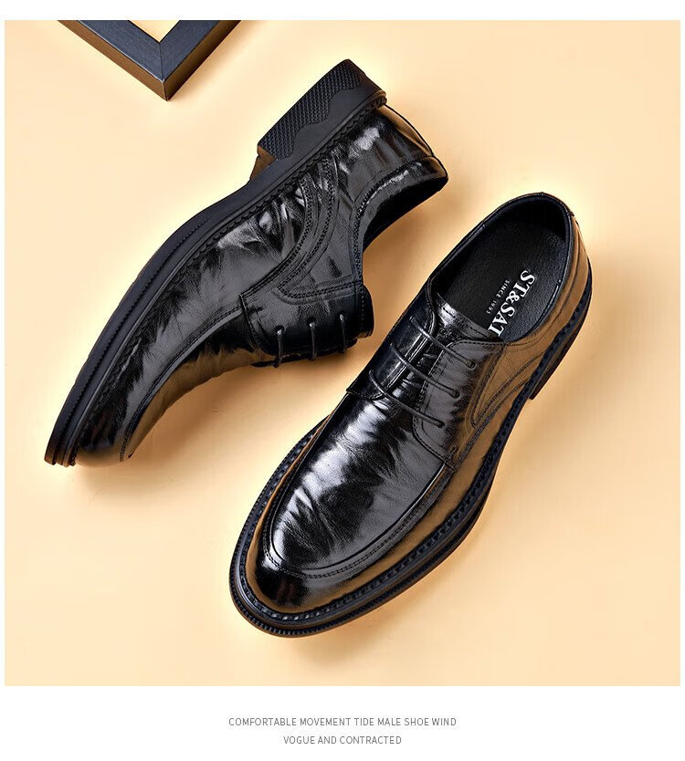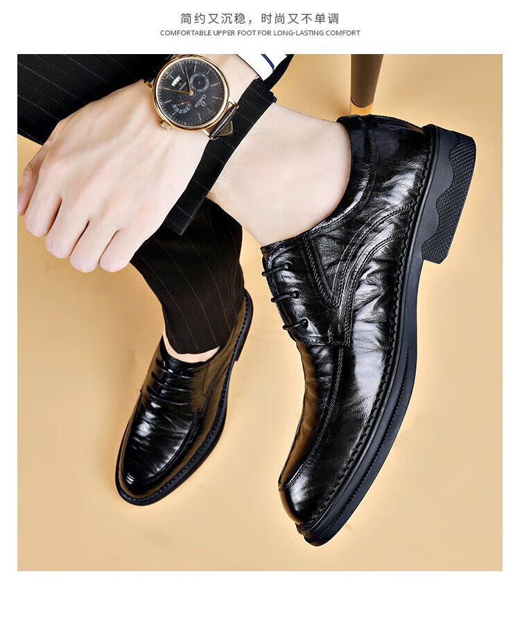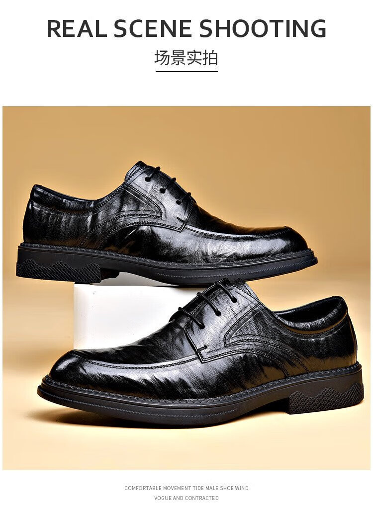 Saturday men's shoes toe-layer sheepskin men's hand-scratch leather shoes business casual leather shoes men's shoes black 42