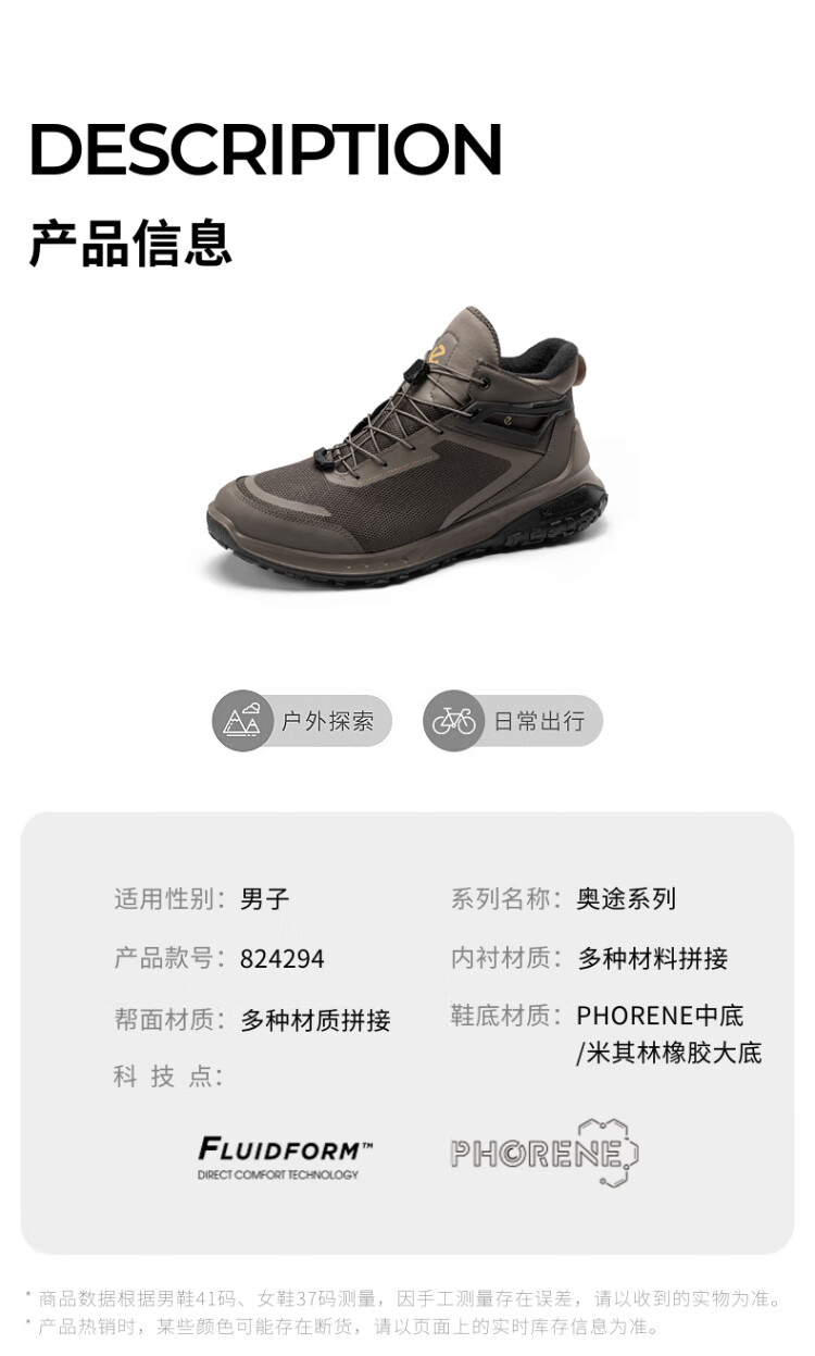 ECCO sports shoes for men, winter thickened, warm and grippy, wear-resistant outdoor hiking shoes, Aotu 824294, black 40