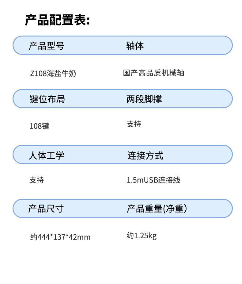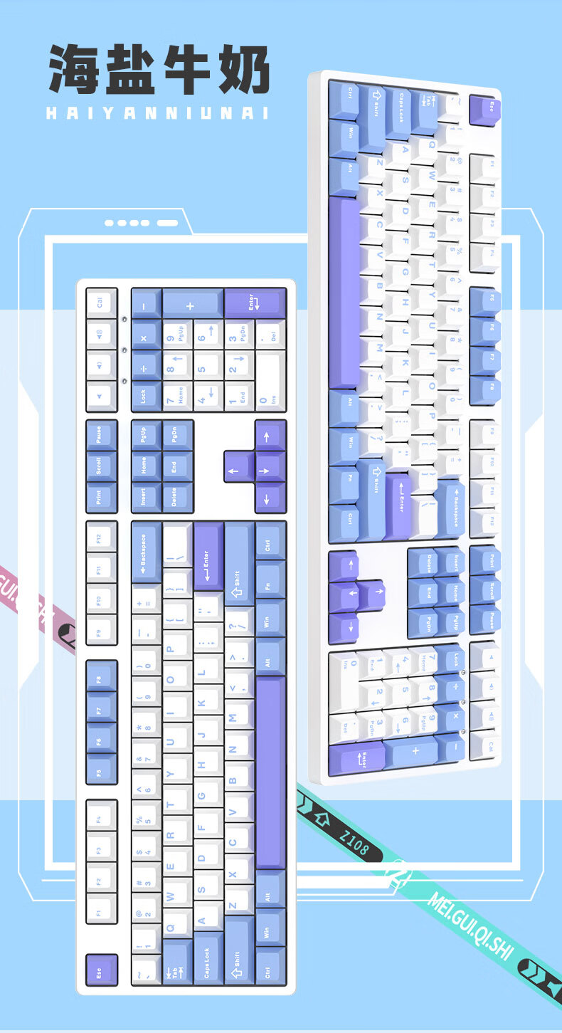 Ikbc Z108 sea salt milk wired mechanical keyboard e-sports office gaming keyboard color matching 108 key tea switch