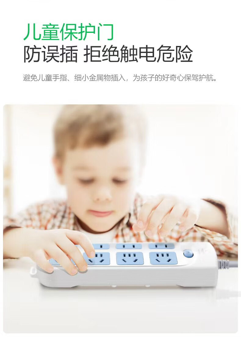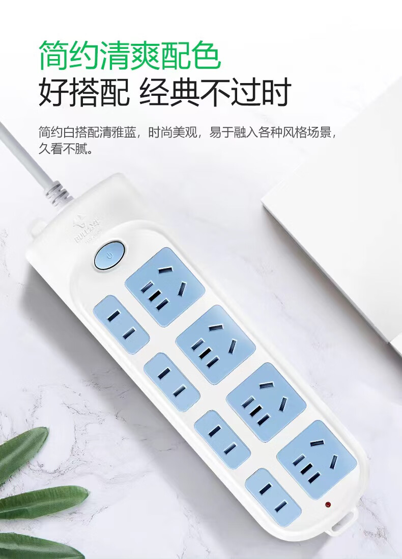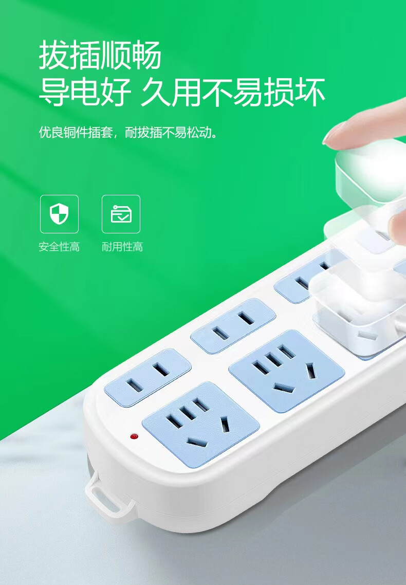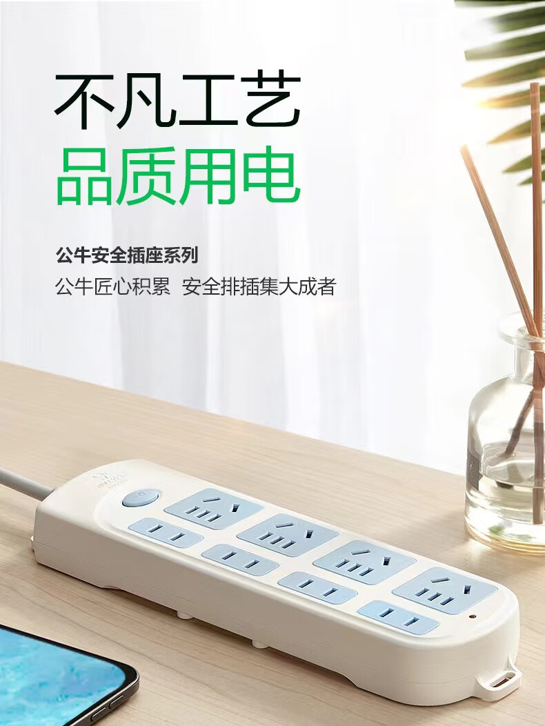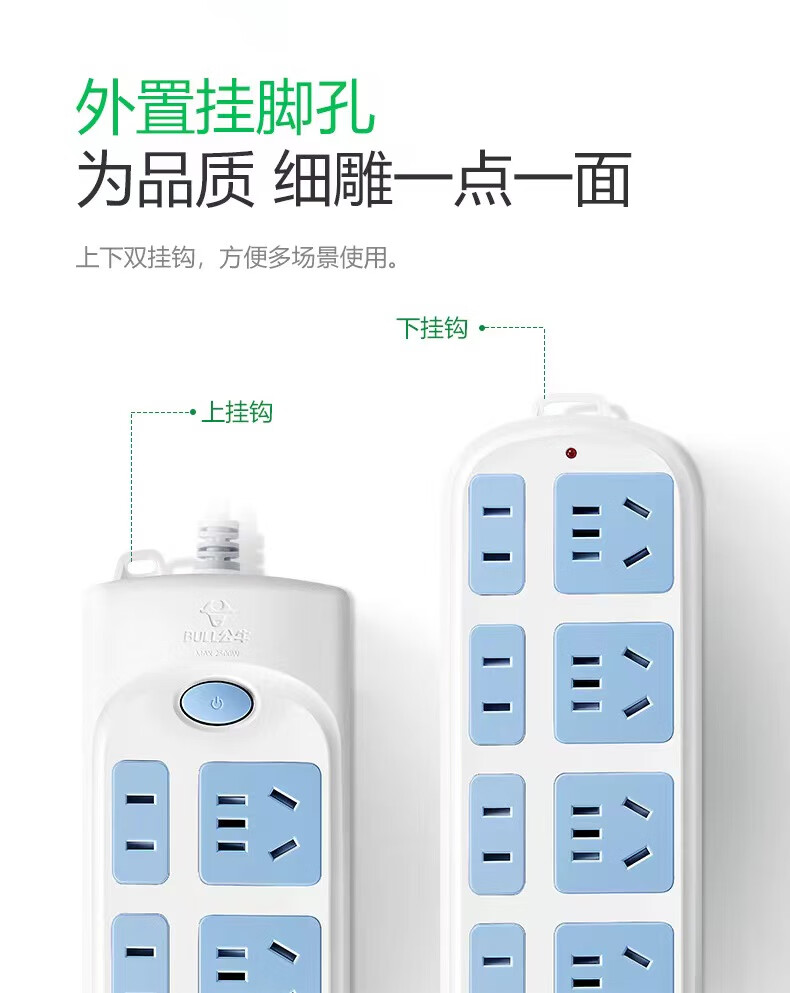 Bull (BULL) eight-position two-three plug multi-hole GN-610 1.8 meters new national standard row socket wiring drag strip master control switch plug patch panel wire tray socket surface-mounted expansion multi-hole socket