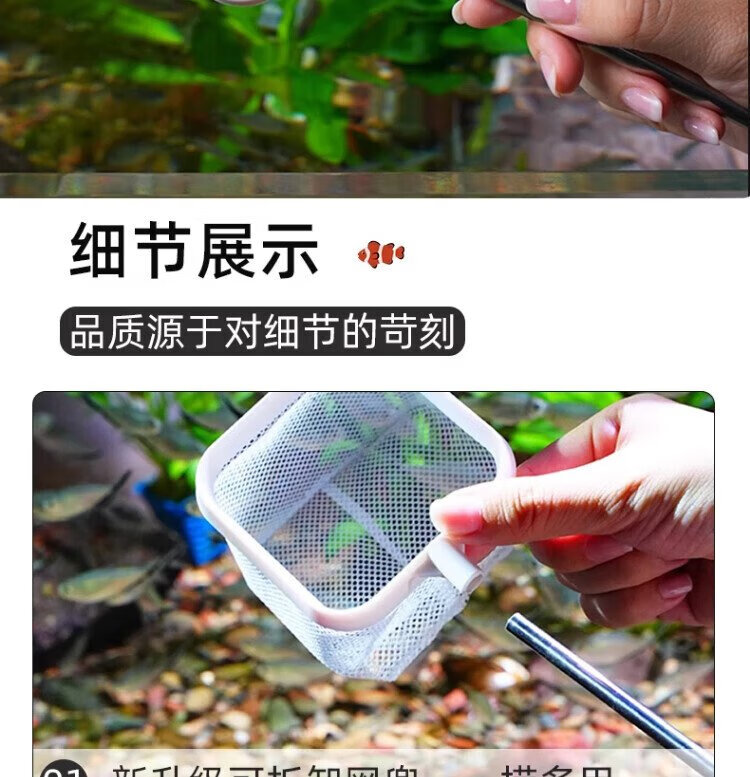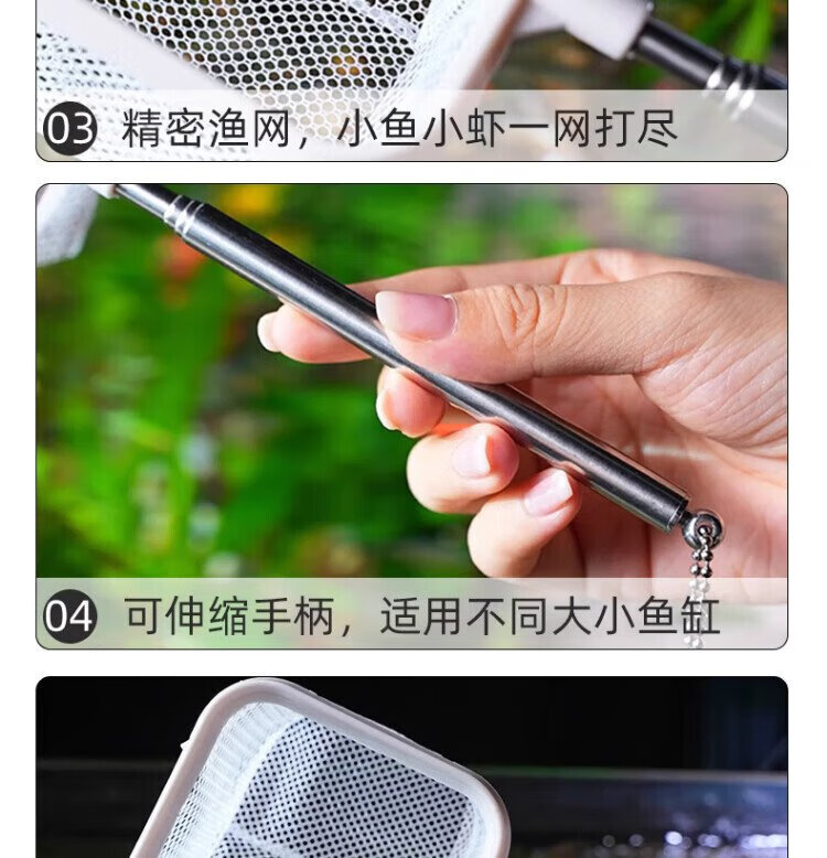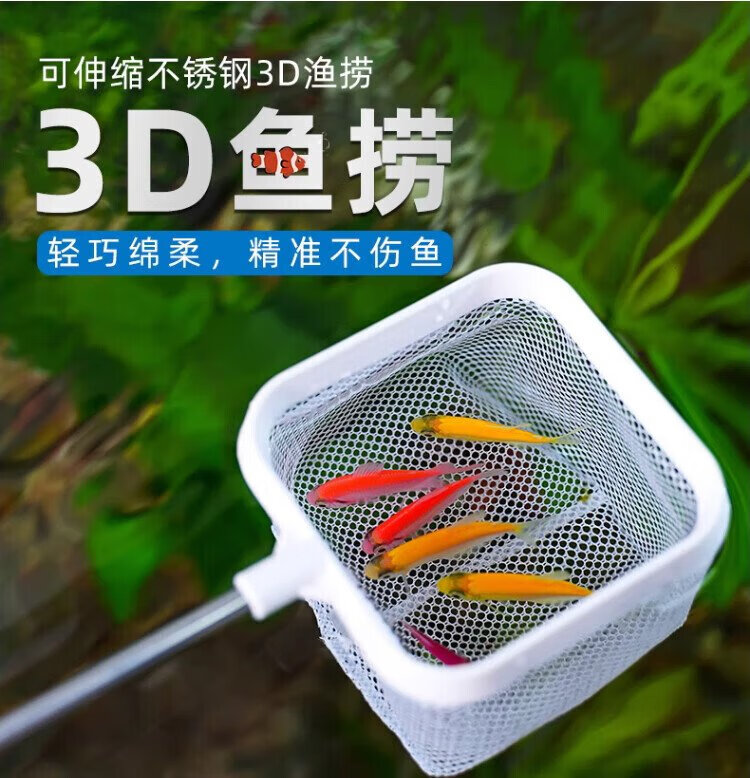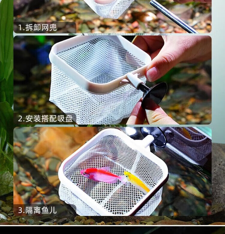 Huawoli 3D fishing net bag retractable with suction cup fish tank fishing net fish fishing net shovel rake hoe ornamental fish copy net dense net