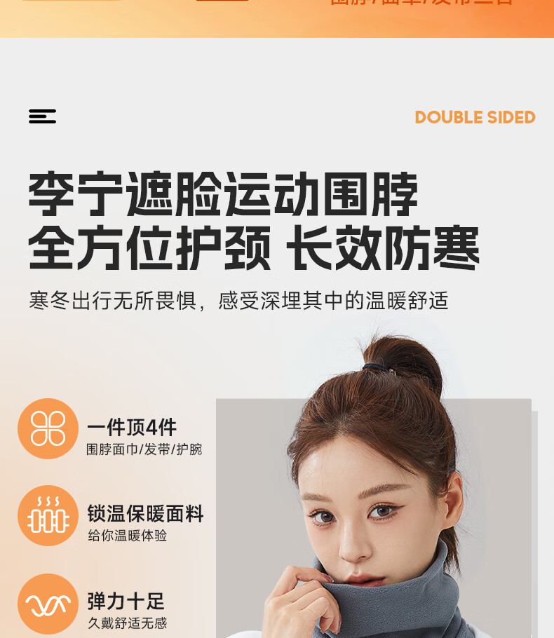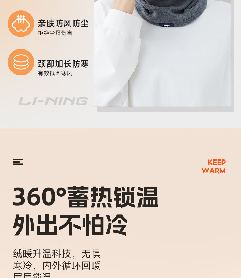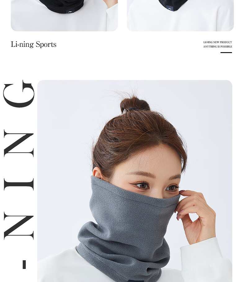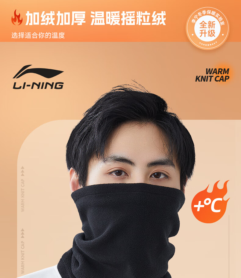 Li Ning neck scarf men's winter neck warm neck protection men's scarf mask cycling windproof and cold plus velvet thickening