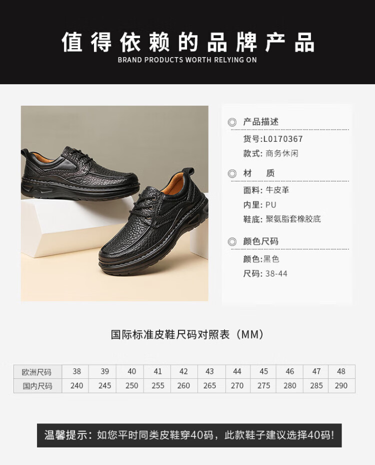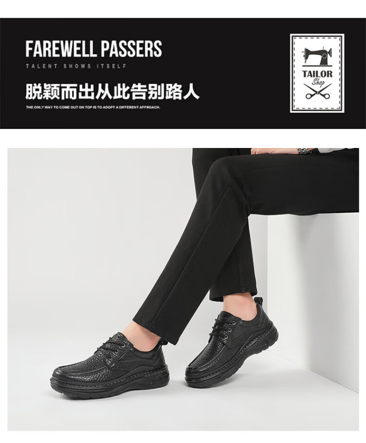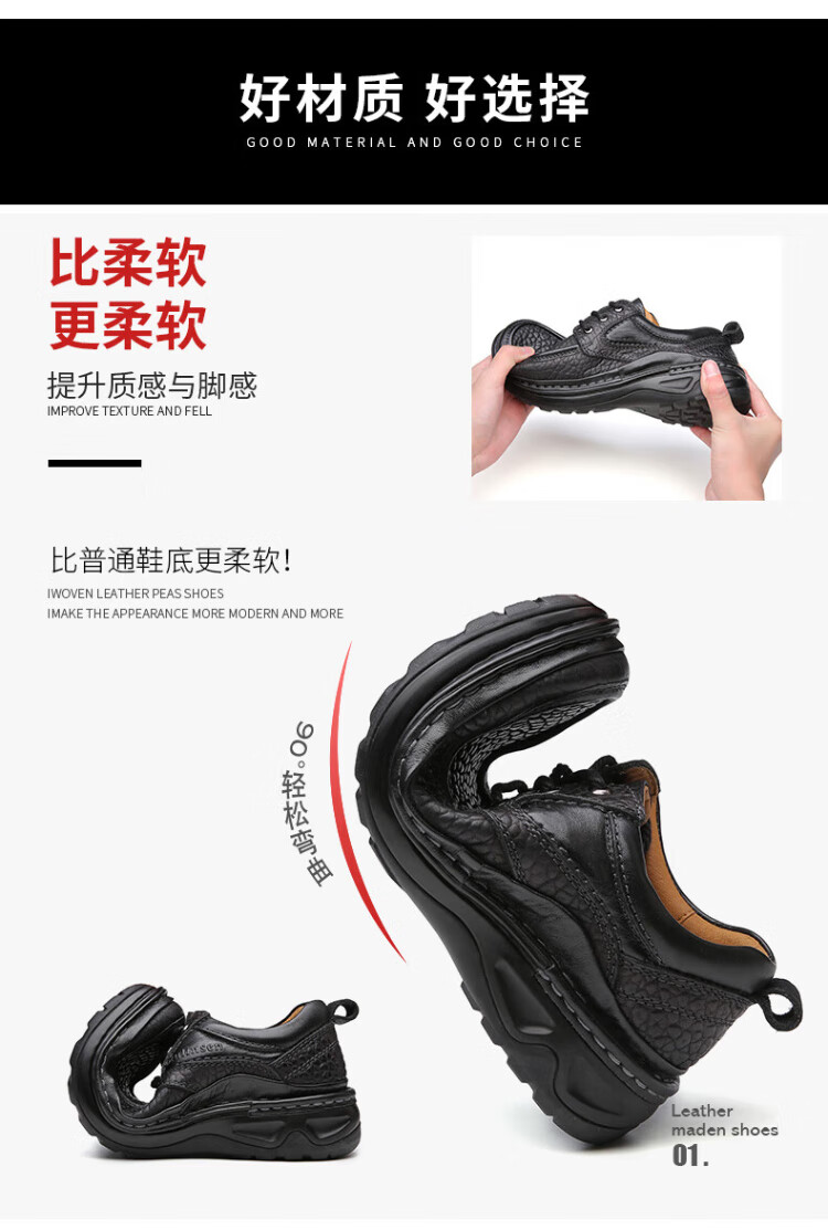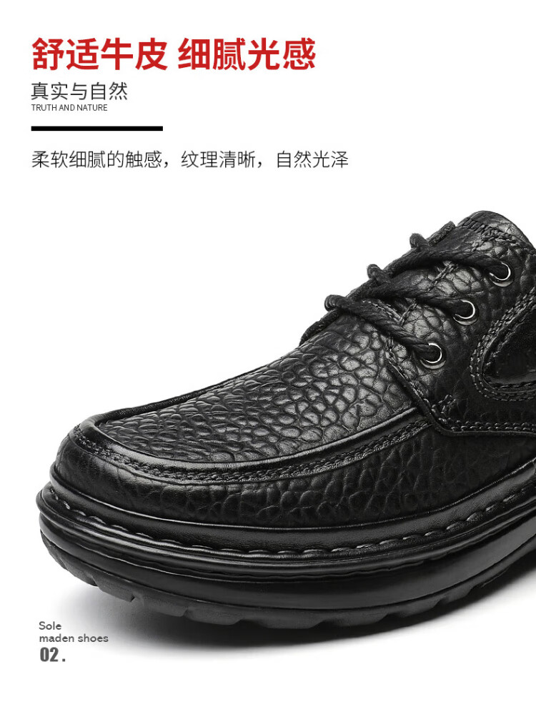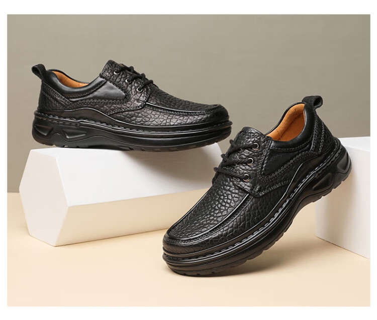 MULINSEN men's toe-layer cowhide business casual shoes wear-resistant thick sole middle-aged dad shoes L017367