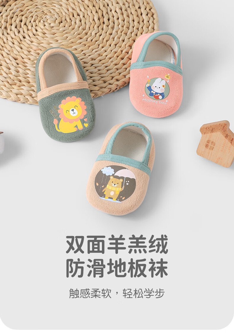 Youqi baby floor socks children's spring, autumn and winter indoor non-slip soft bottom plus velvet toddler anti-cool socks thick shoes and socks 2 pairs
