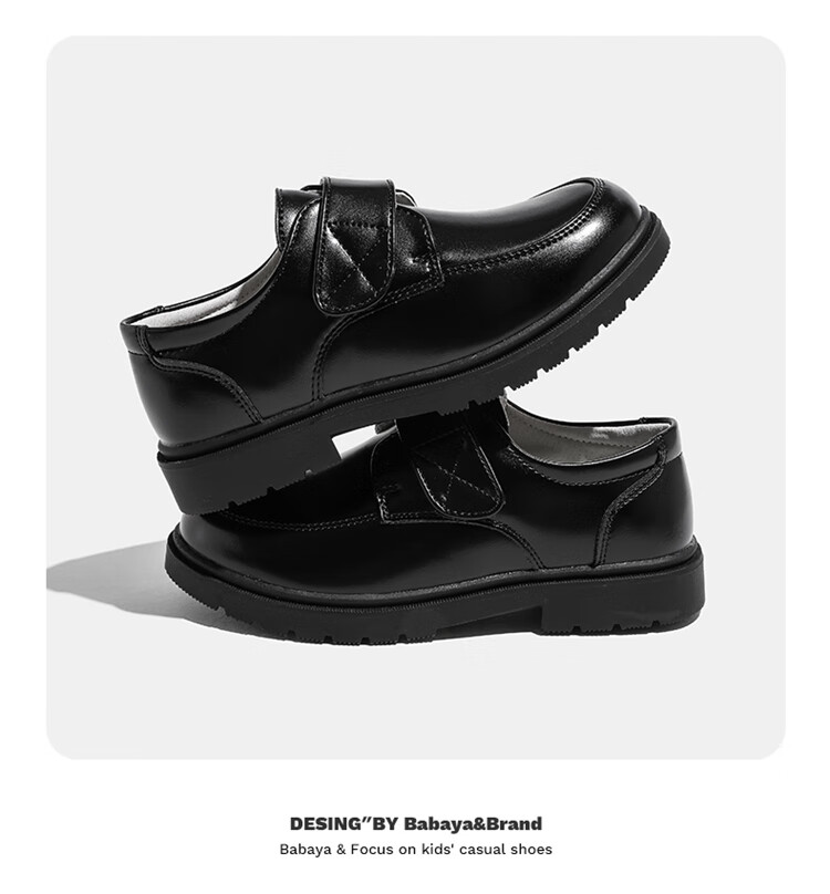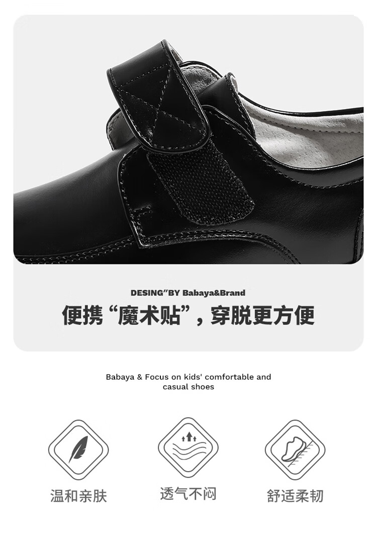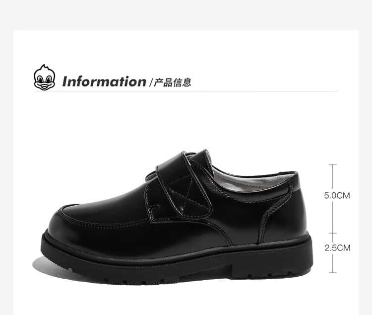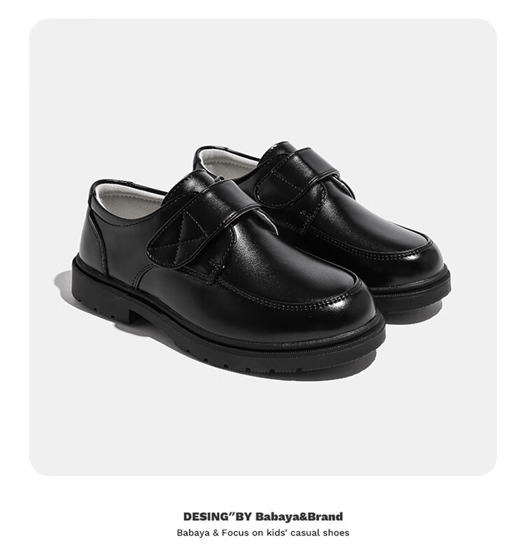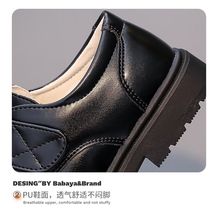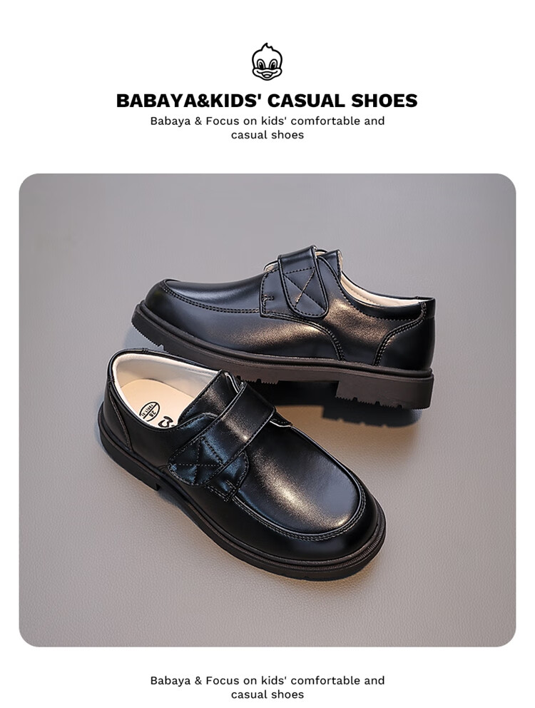 Barba Duck Children's Leather Shoes Boys Black British Style Performance Shoes Campus Soft Sole Shoes XD-BG35823 Black Size 38