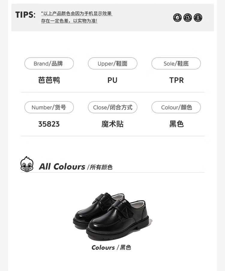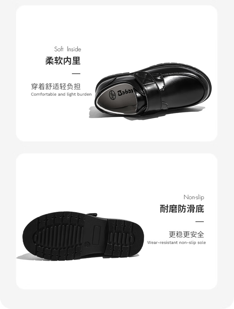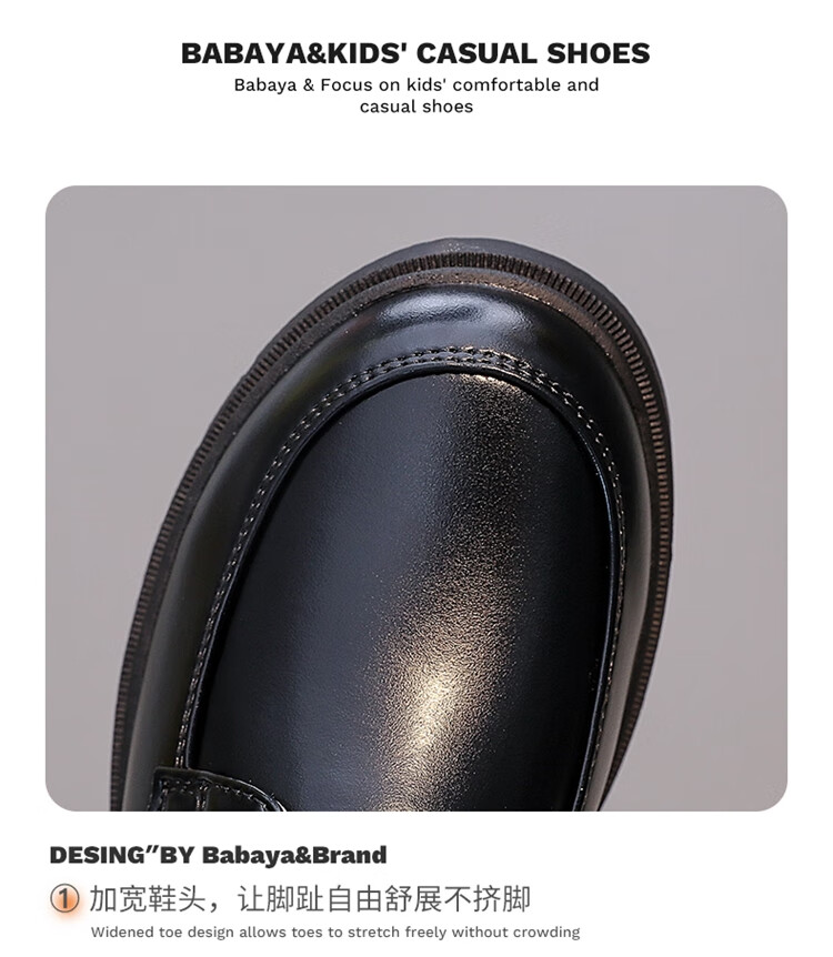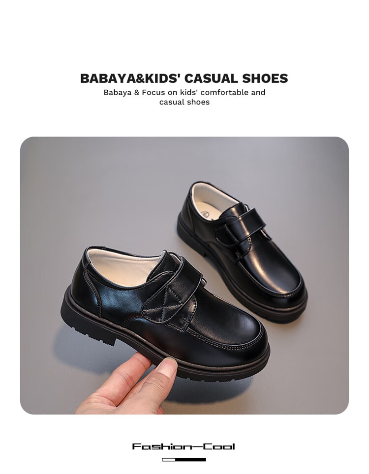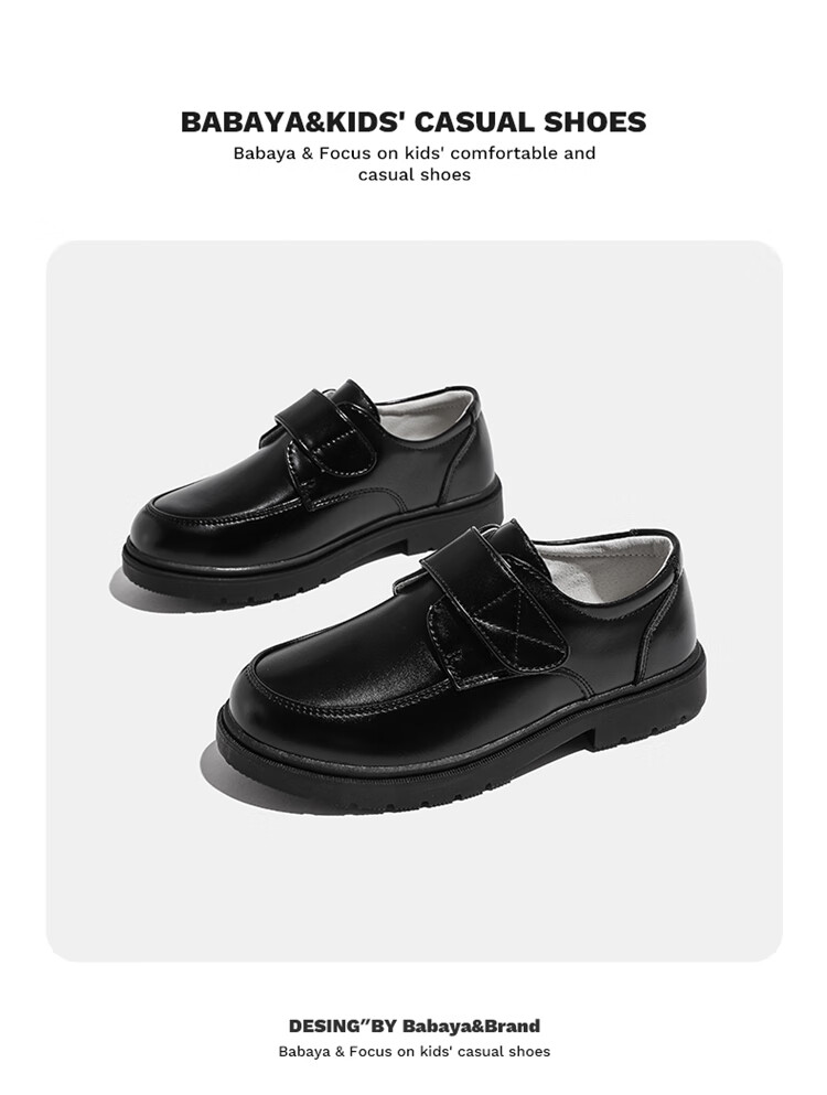 Barba Duck Children's Leather Shoes Boys Black British Style Performance Shoes Campus Soft Sole Shoes XD-BG35823 Black Size 38