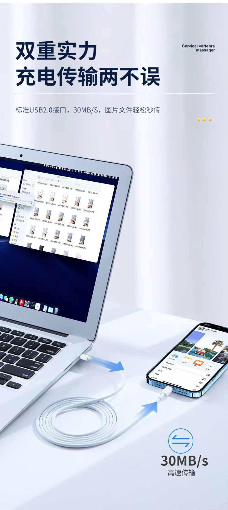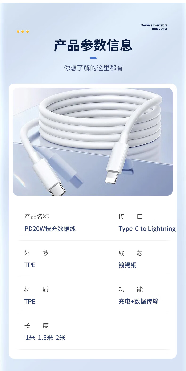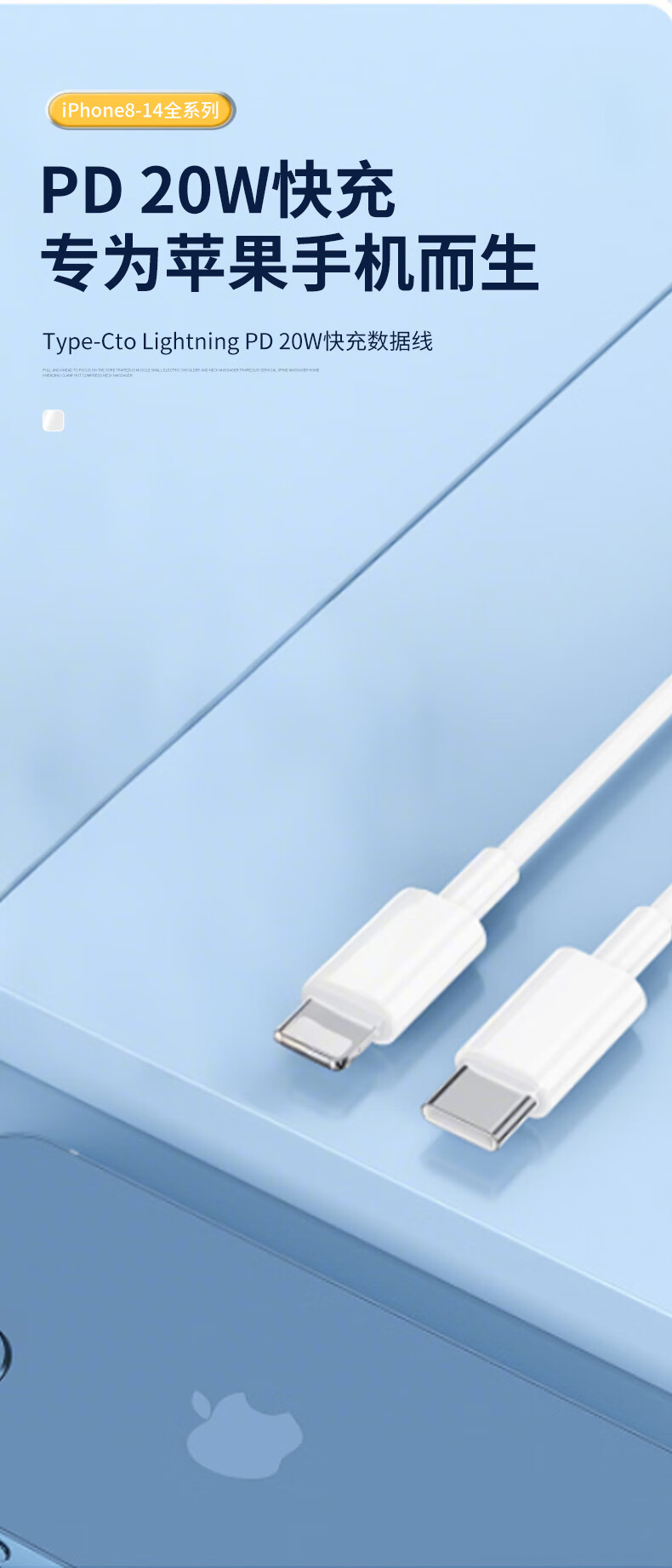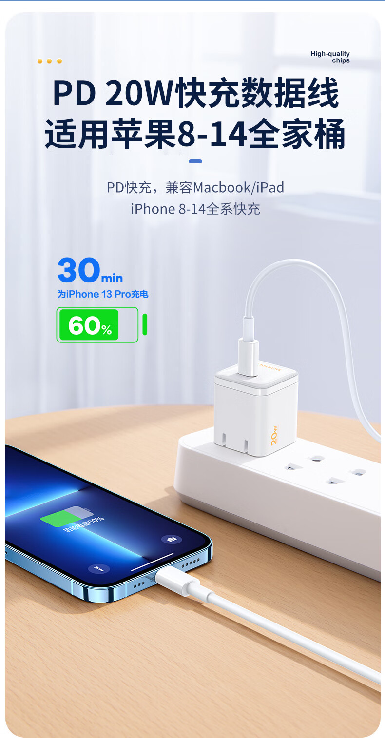 Lanwo Port suitable for Apple 14/13 data cable PD20W fast charging charging cable Type-C to Lightning mobile phone charger cable iphone14/13/12/11 1 meter white