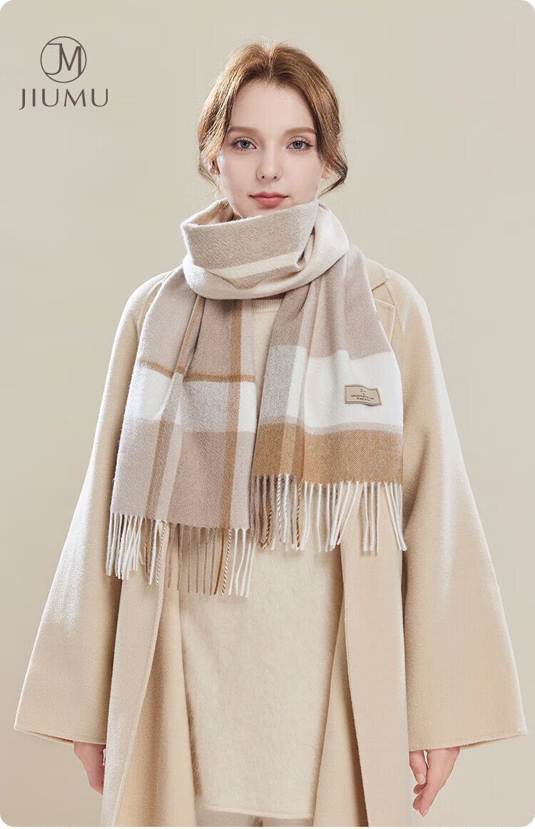 JIUMU 100% Cashmere Scarf Women's Autumn and Winter Shawl Women's Warm Scarf Christmas Birthday Gift Gift Box