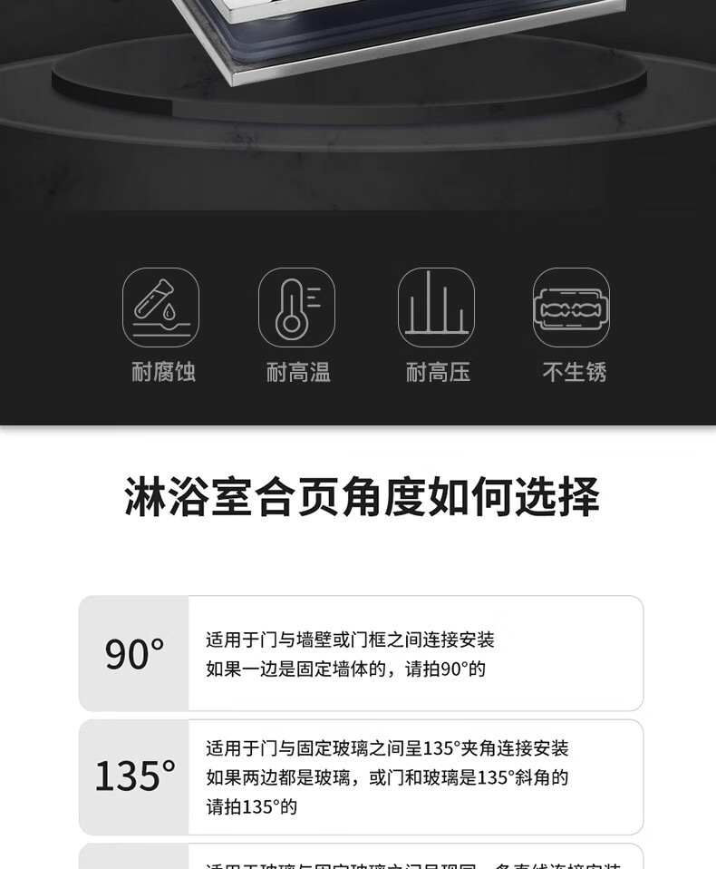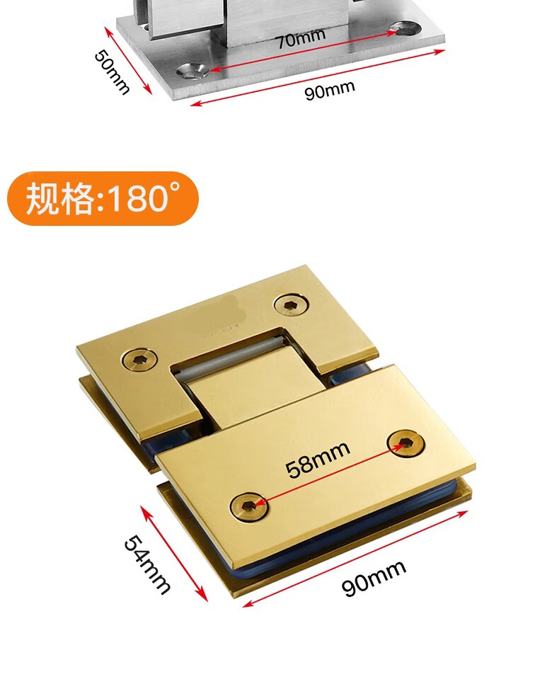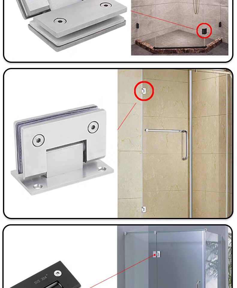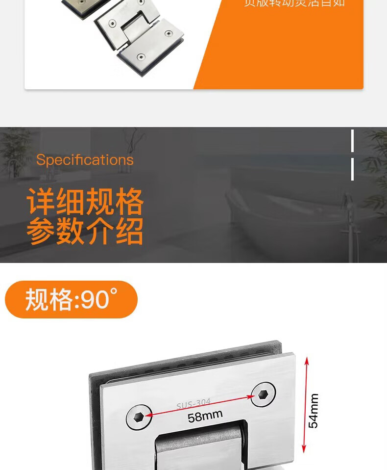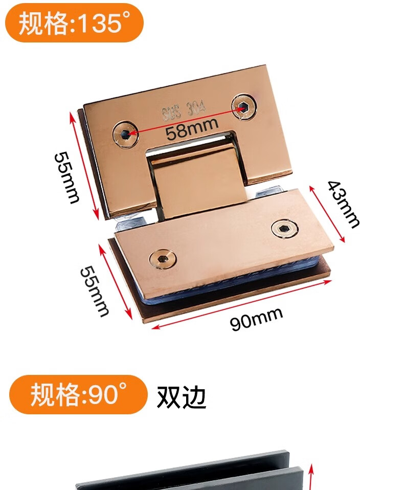 Thousand-speed wheel thickened bathroom shower room hinge glass clip hinge brushed 90 degrees 304 stainless steel