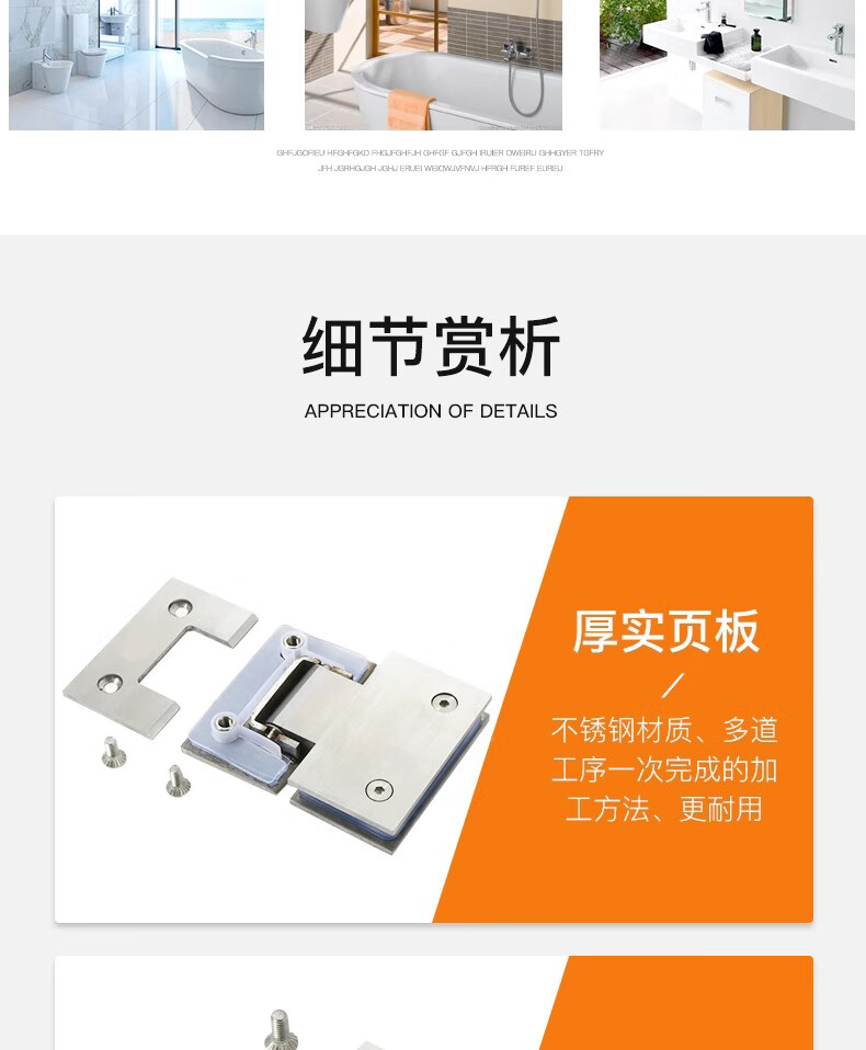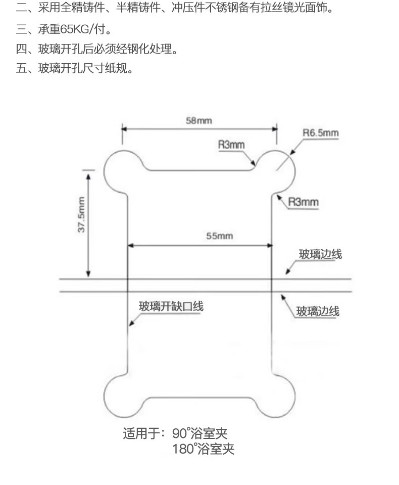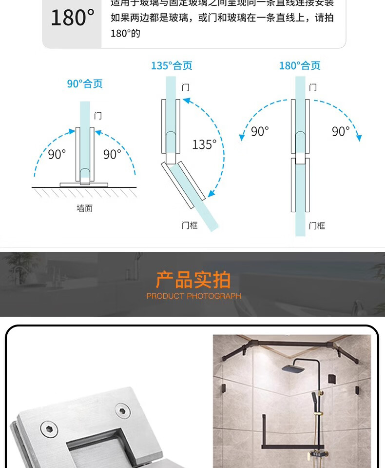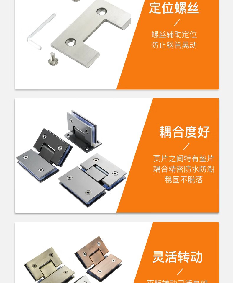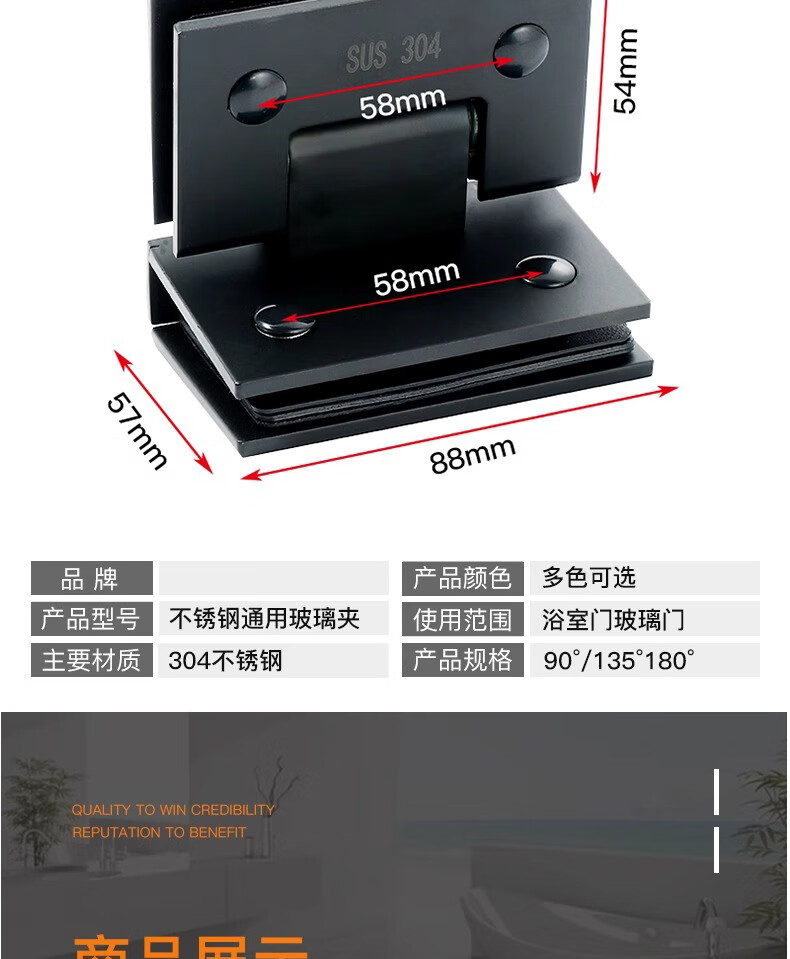 Thousand-speed wheel thickened bathroom shower room hinge glass clip hinge brushed 90 degrees 304 stainless steel