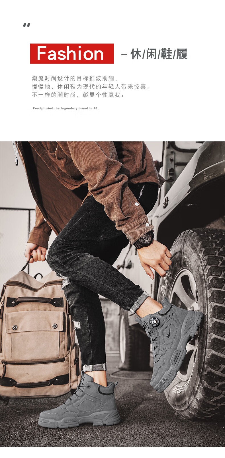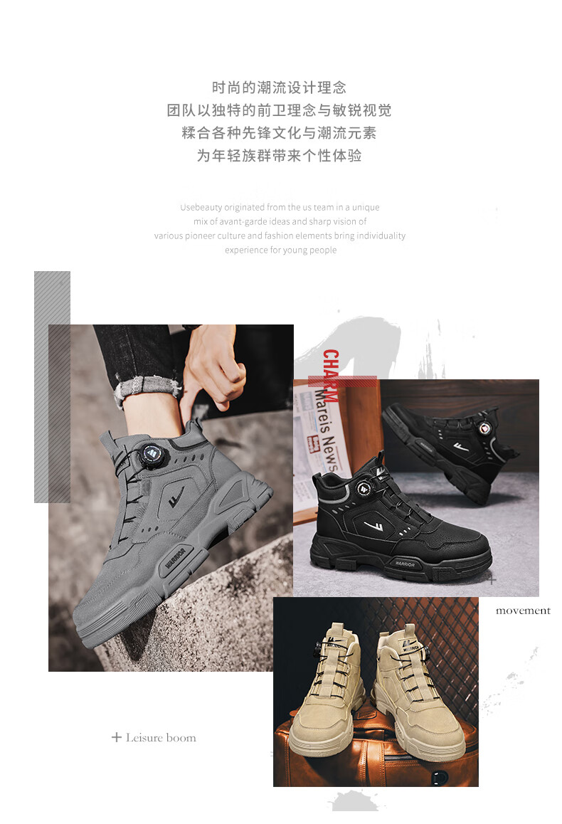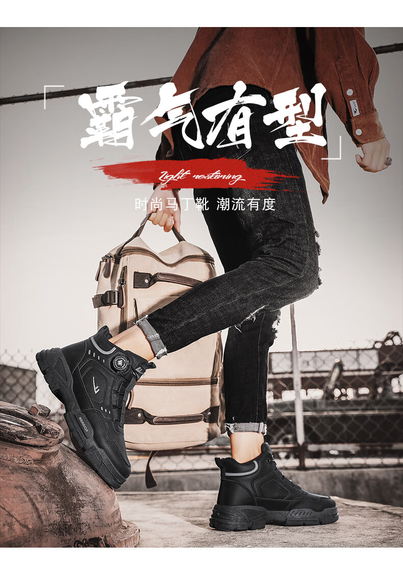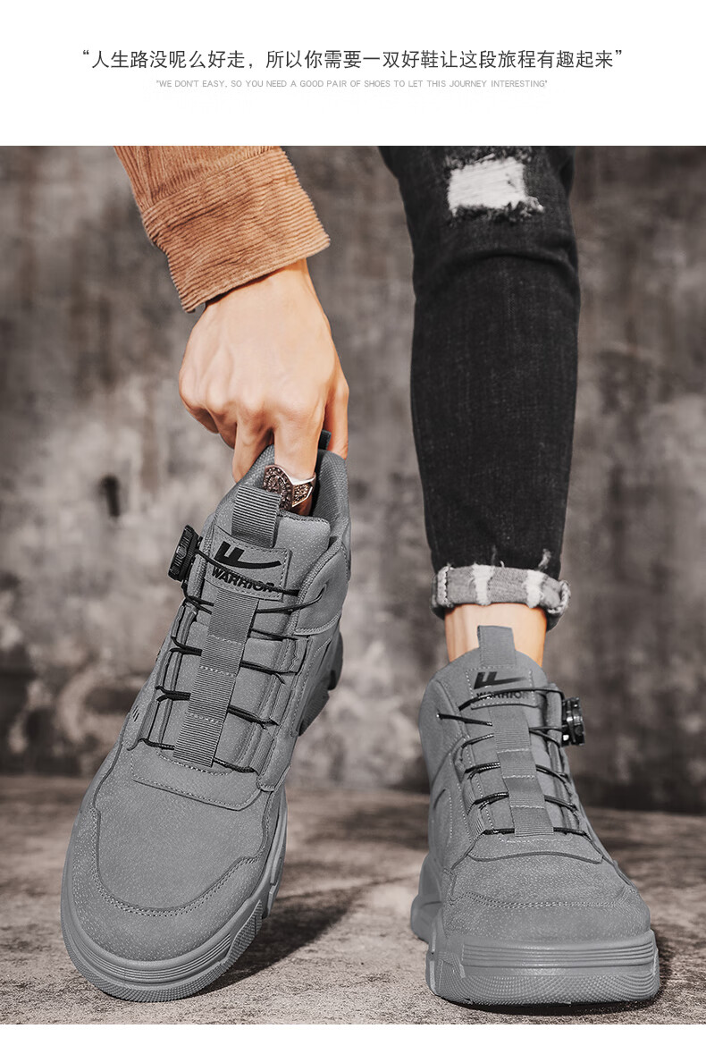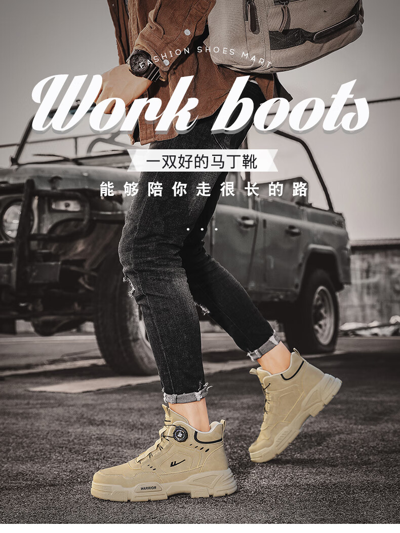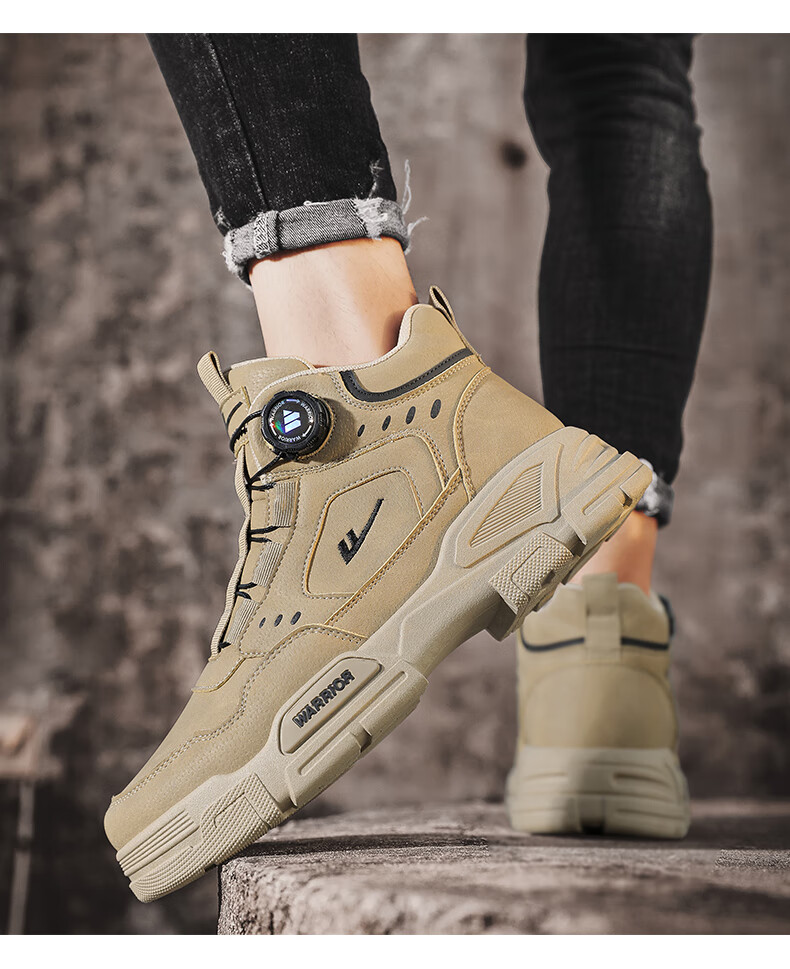 Pull back men's shoes Martin boots autumn and winter new men's high-top rhubarb boots workwear casual hiking shoes khaki 42