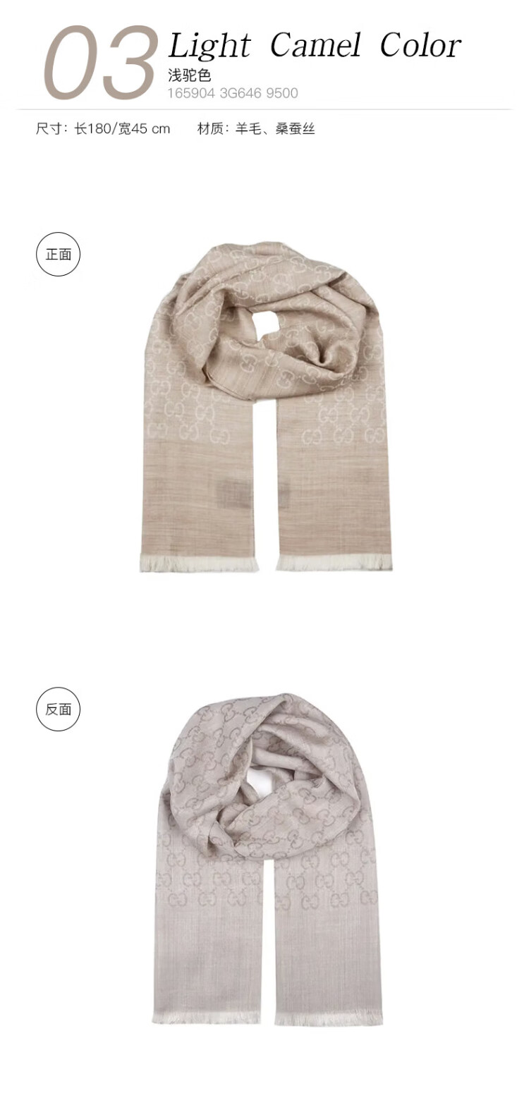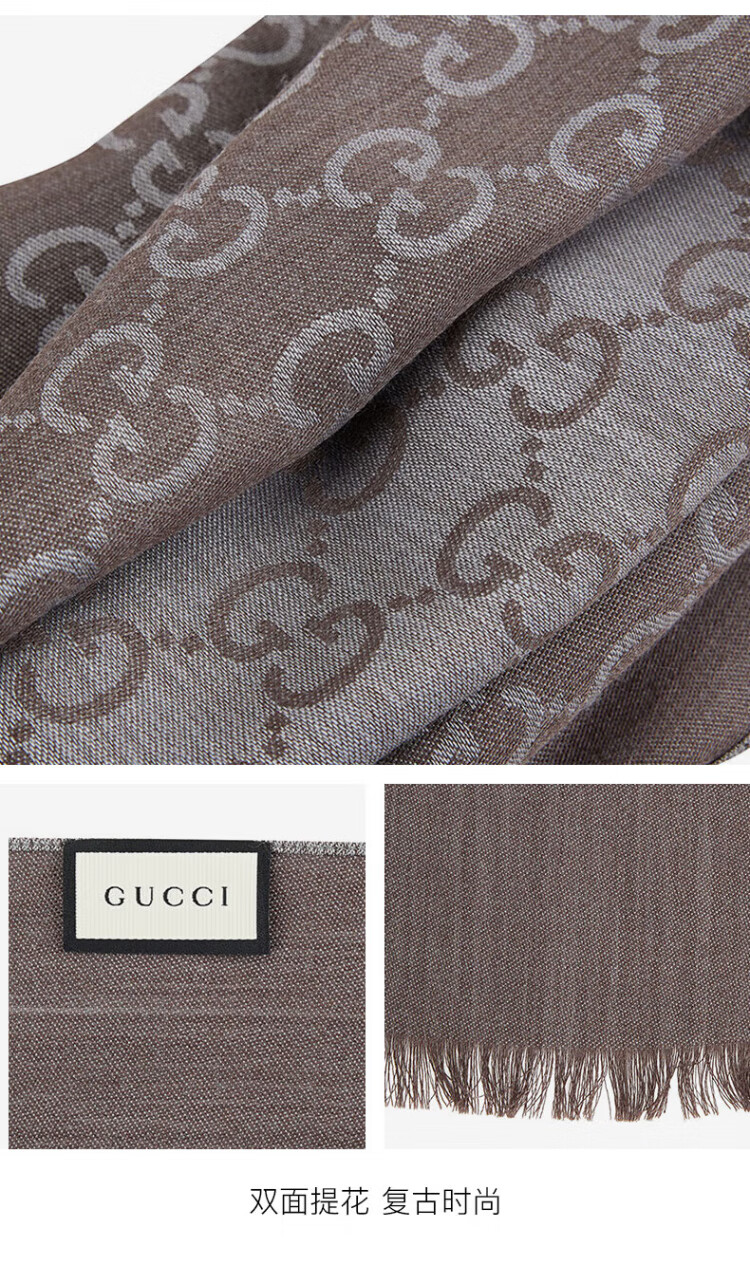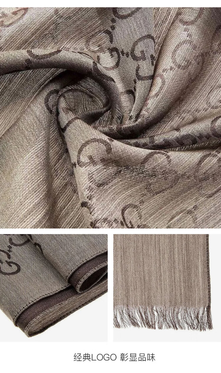 Gucci (GUCCI) classic double G double-sided printed fringed scarf for men and women, light brown 165904 3G646 9664
