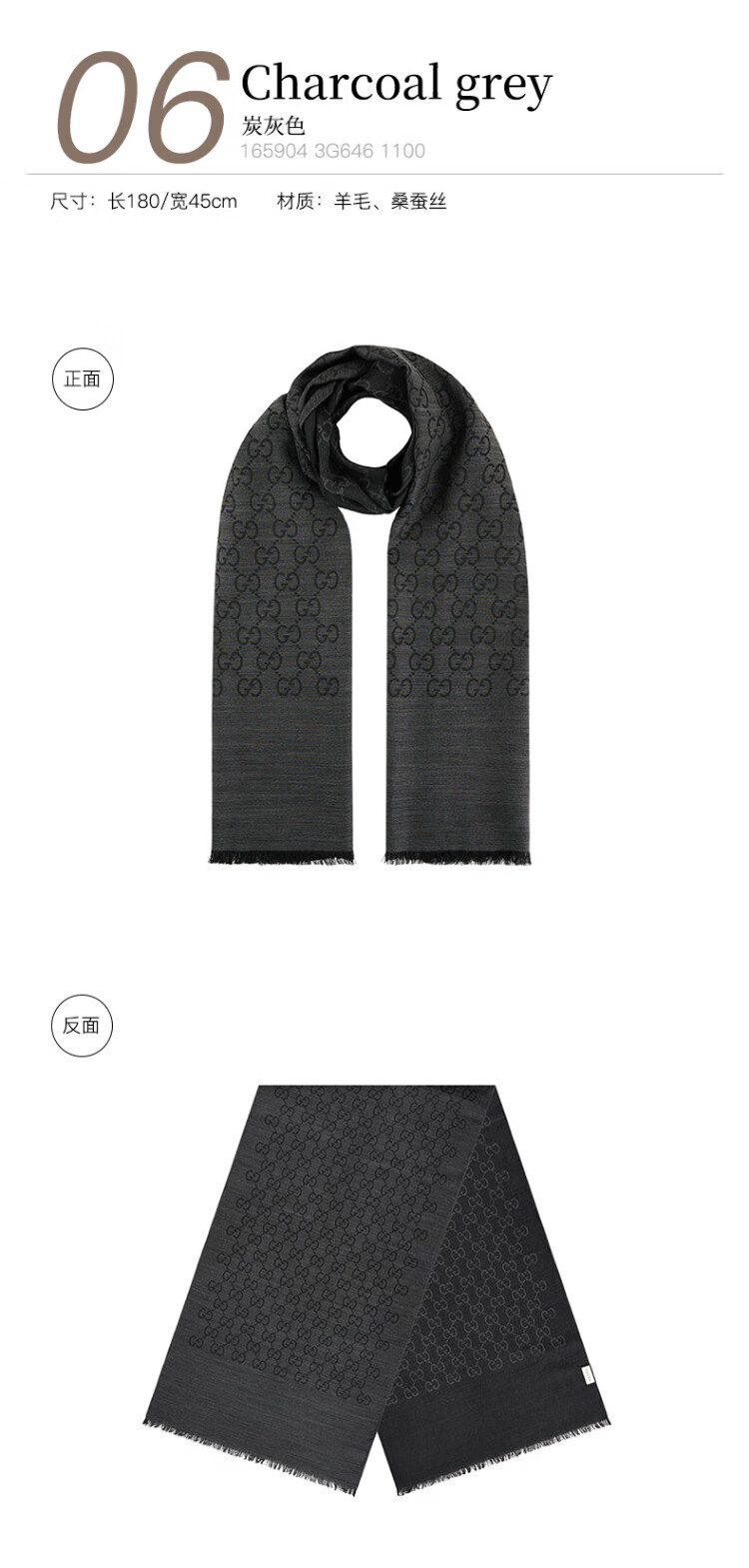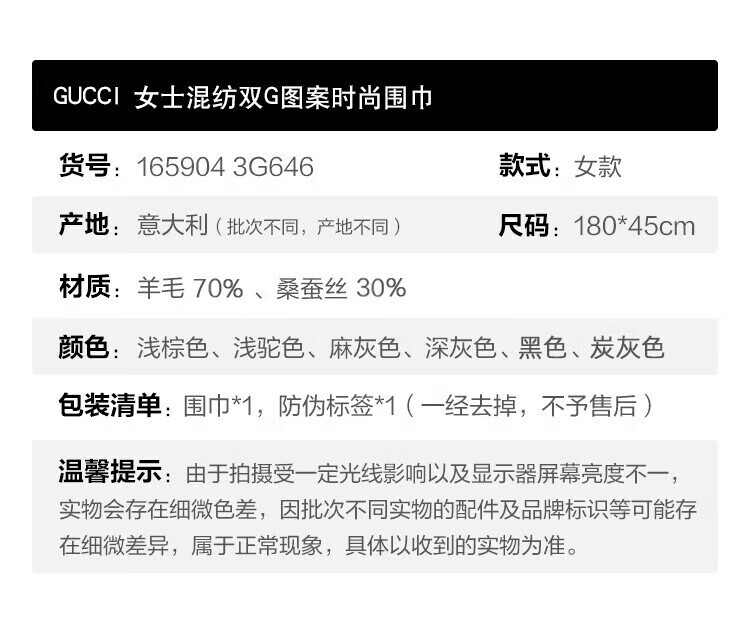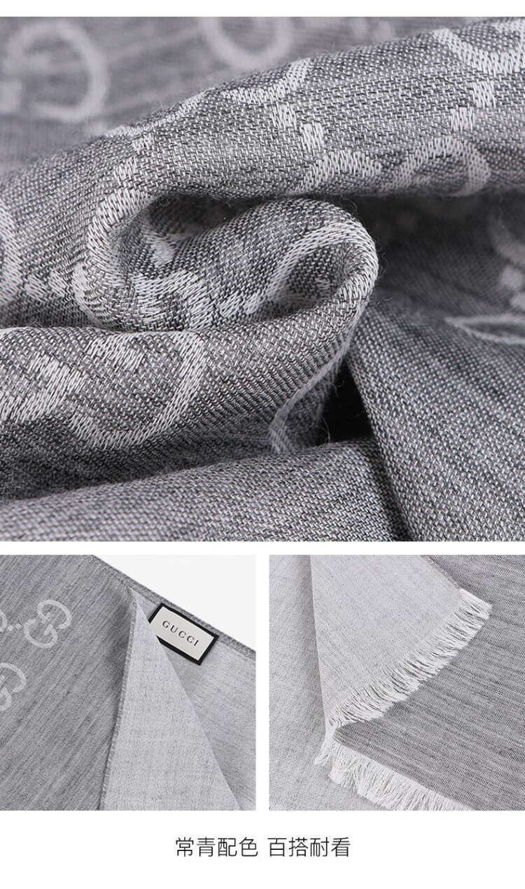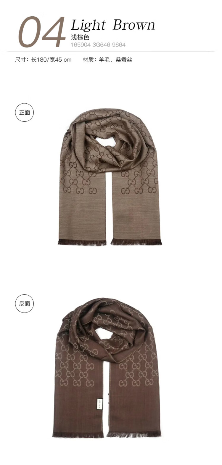 Gucci (GUCCI) classic double G double-sided printed fringed scarf for men and women, light brown 165904 3G646 9664