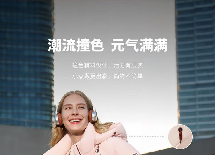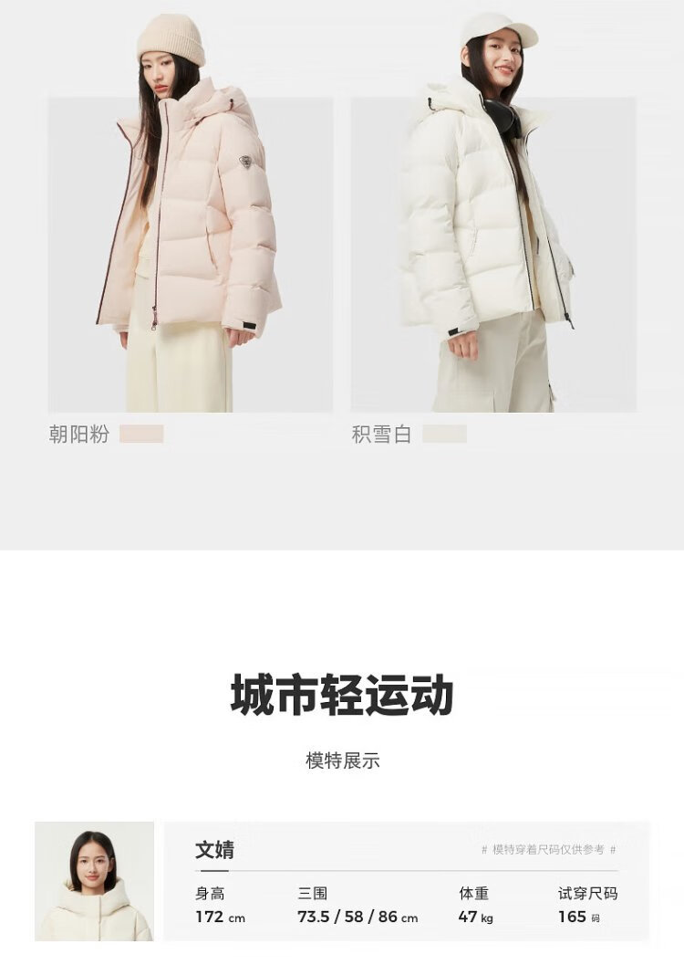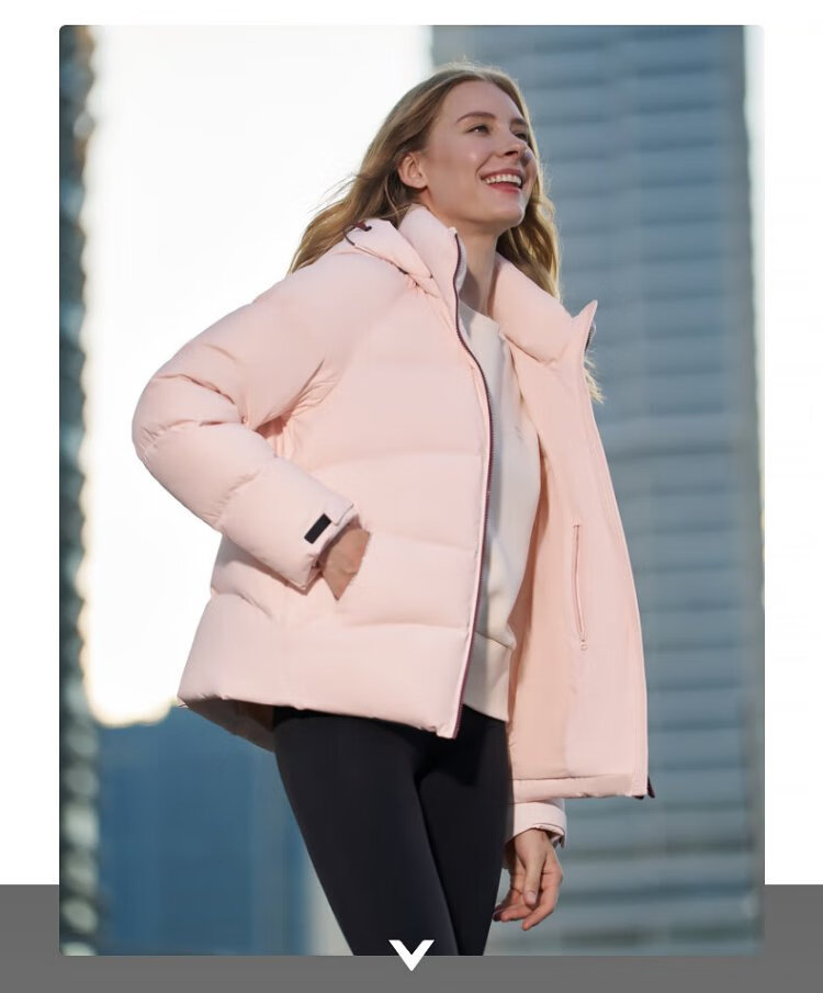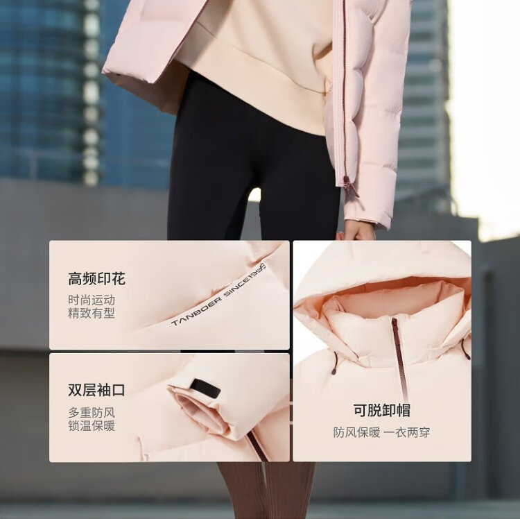 Tambor Down Jacket Women's Short Fashionable Sports Removable Hood Versatile Warm Jacket 550386D Chaoyang Pink 165