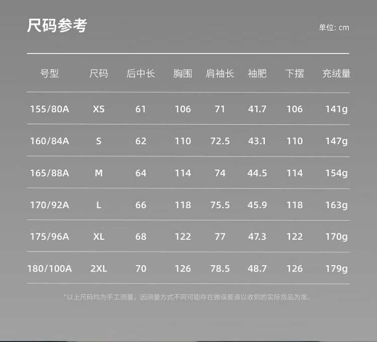 China (cm) 160-165/84-86 165-170 / 88-90 167-172 / 92-96 168-173 / 98-102 170-176 / 106-110