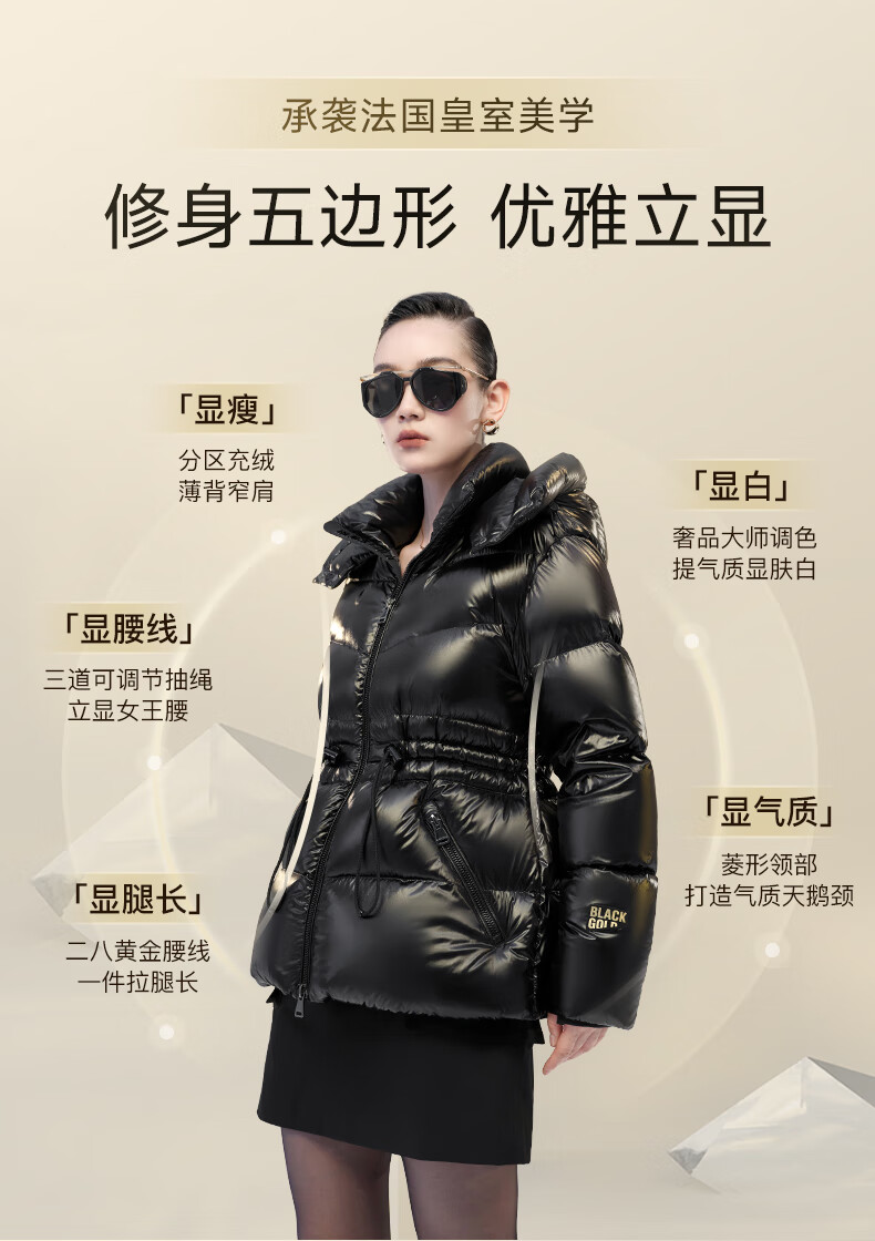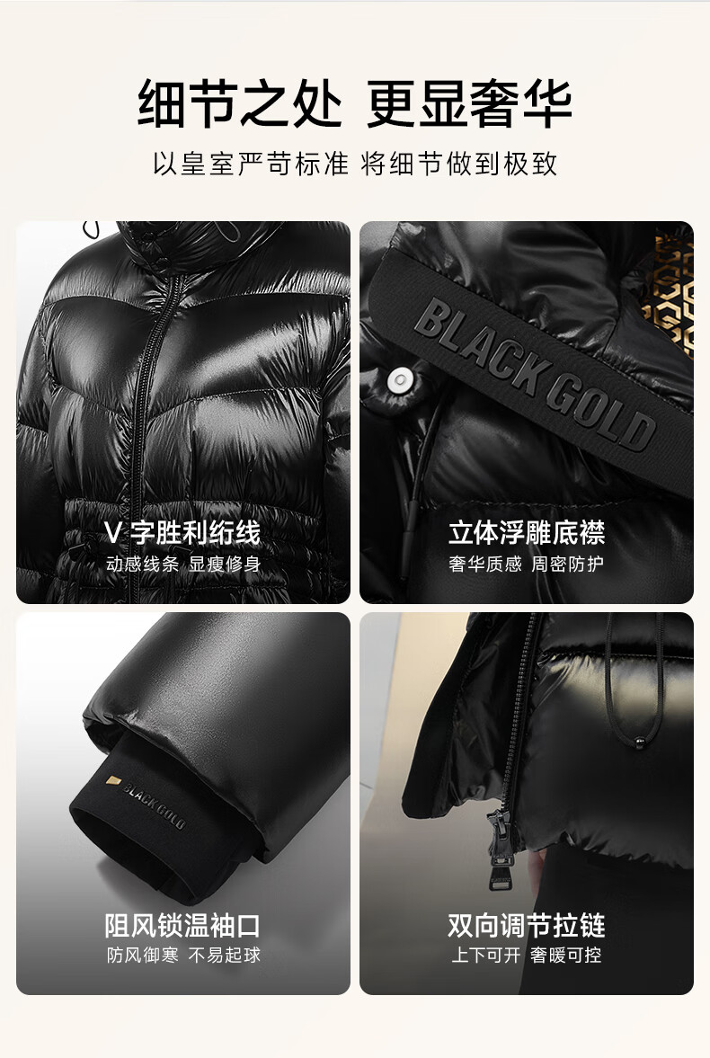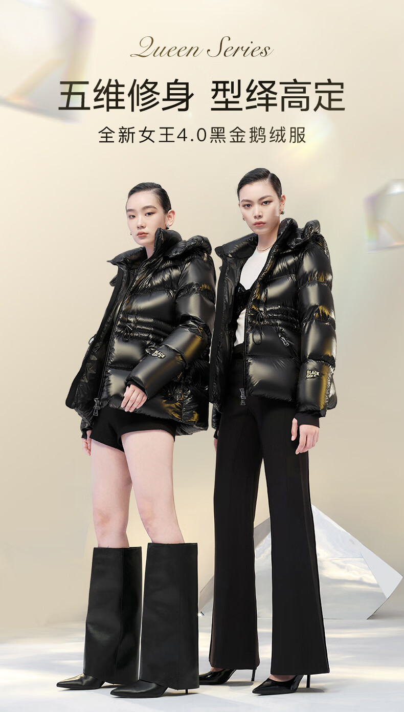 Govan Black Gold Goose Down Jacket Queen 4.0 Five-lattice Women's Short Winter Fashion Down Jacket High Custom Diamond Black M