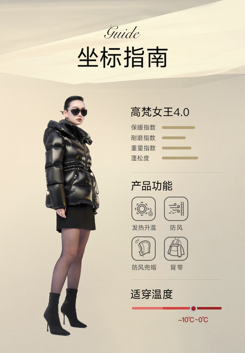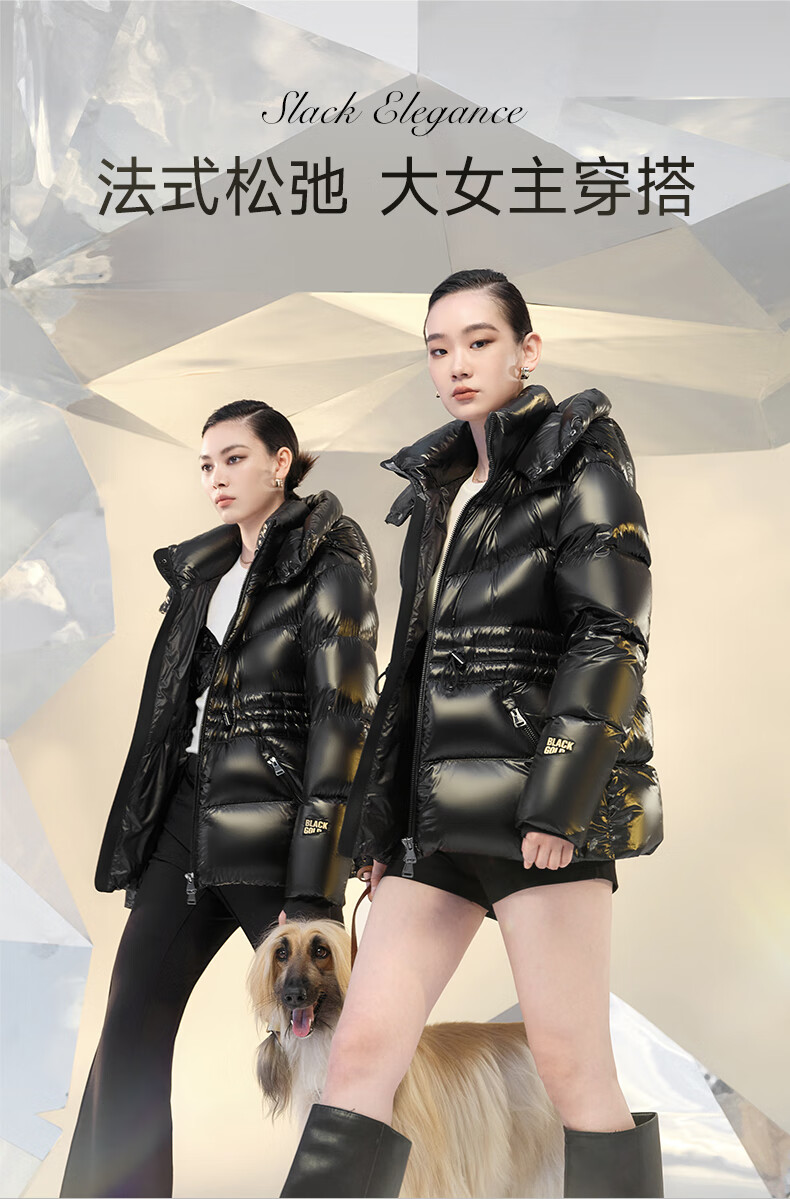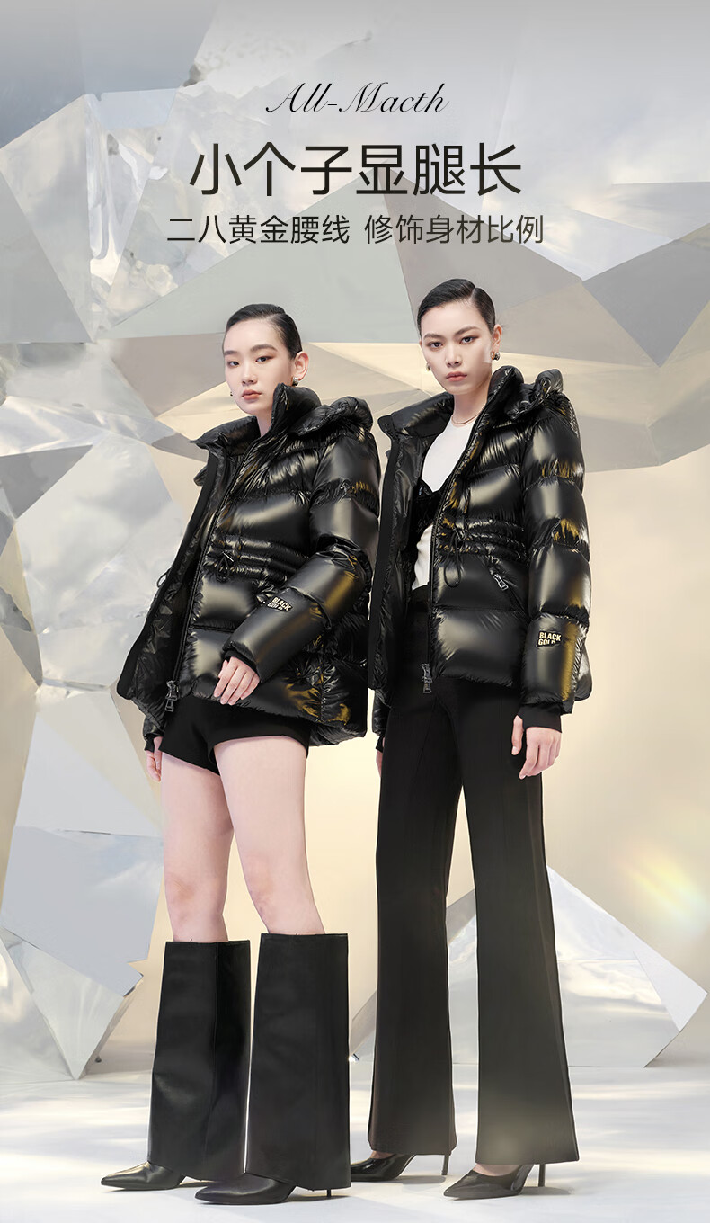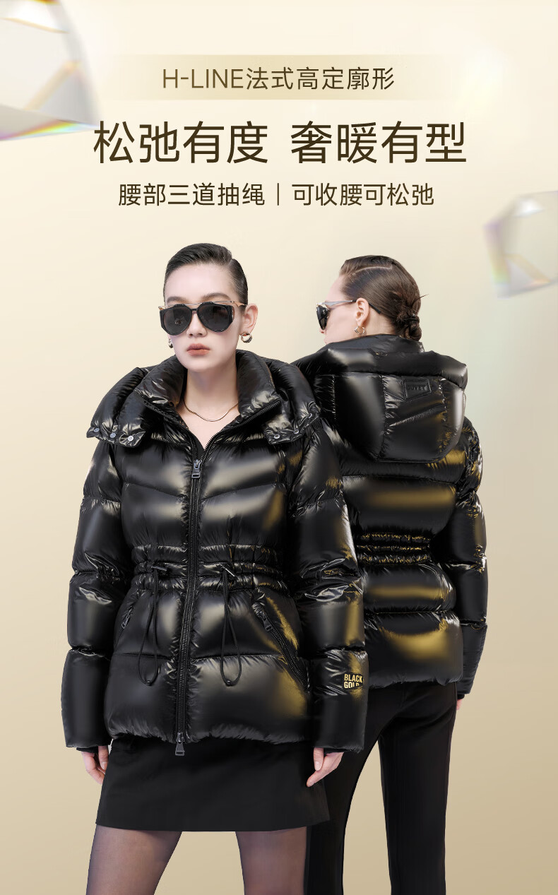 Govan Black Gold Goose Down Jacket Queen 4.0 Five-lattice Women's Short Winter Fashion Down Jacket High Custom Diamond Black M