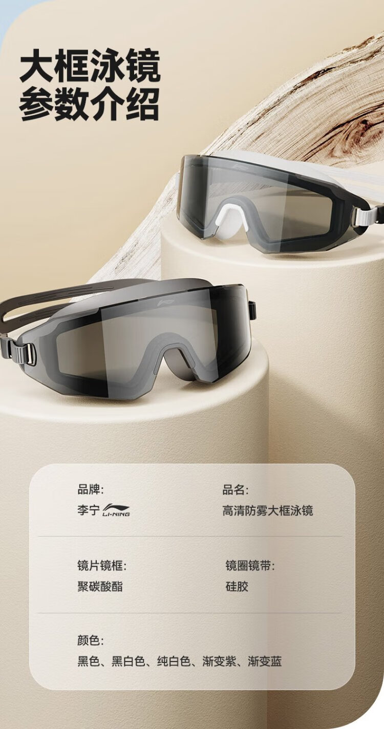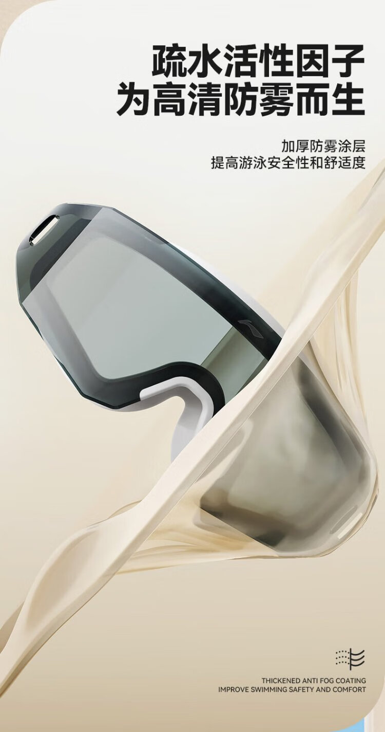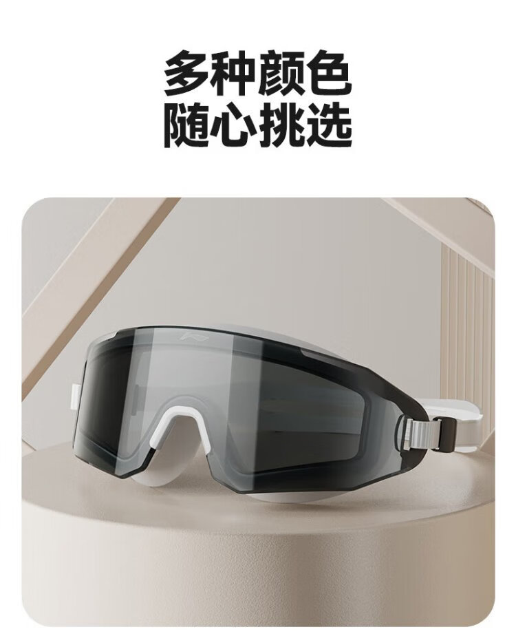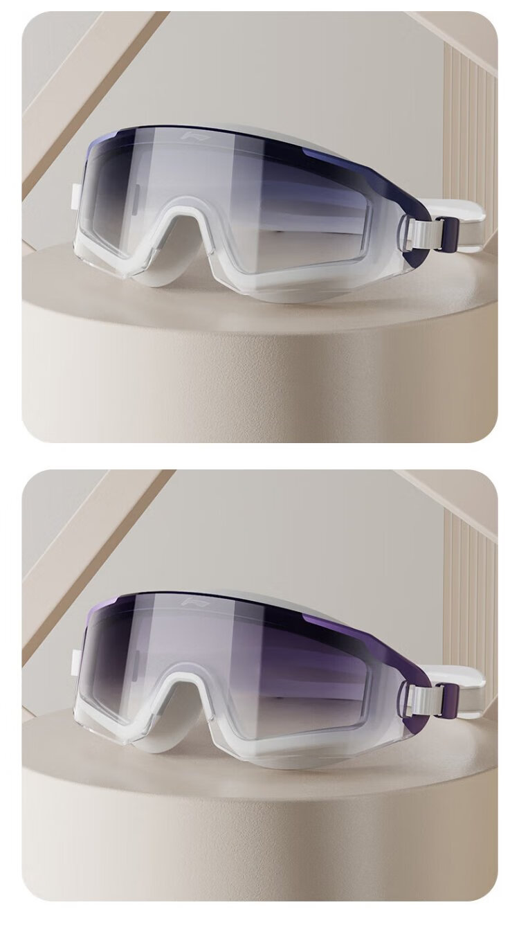 Li Ning (LI-NING) swimming goggles for men and women, anti-fog swimming goggles for adults, flat large frame swimming goggles and swimming cap set 36-461 purple