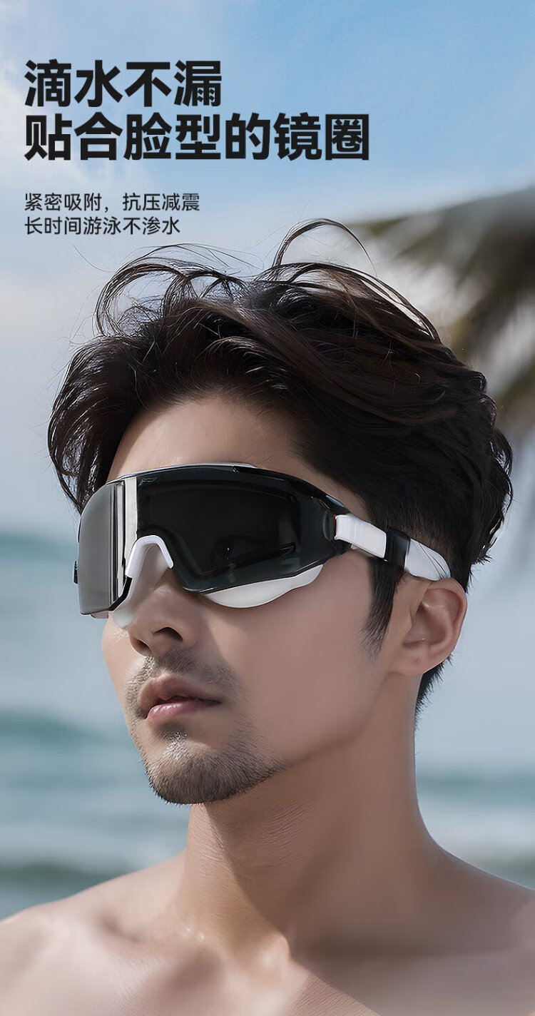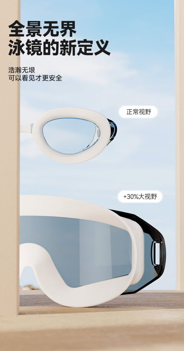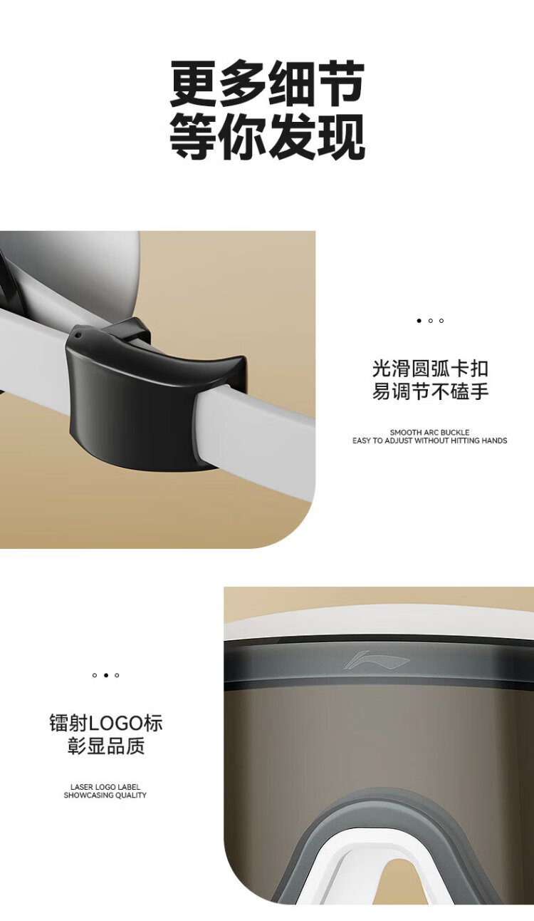 Li Ning (LI-NING) swimming goggles for men and women, anti-fog swimming goggles for adults, flat large frame swimming goggles and swimming cap set 36-461 purple