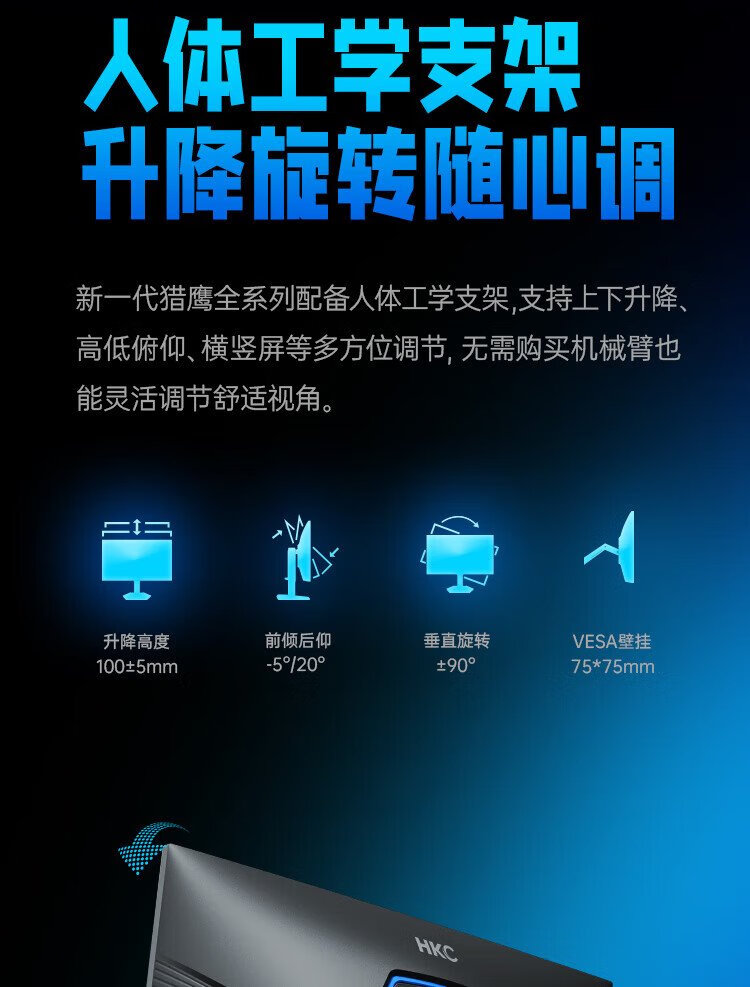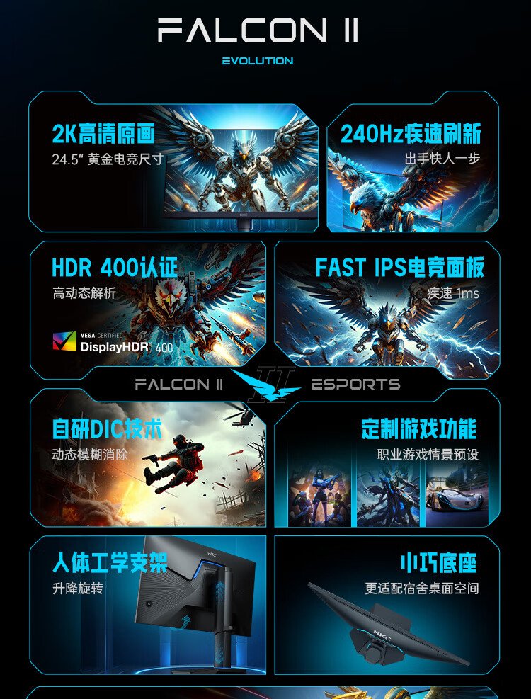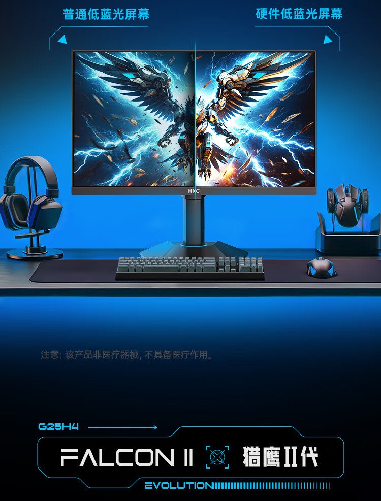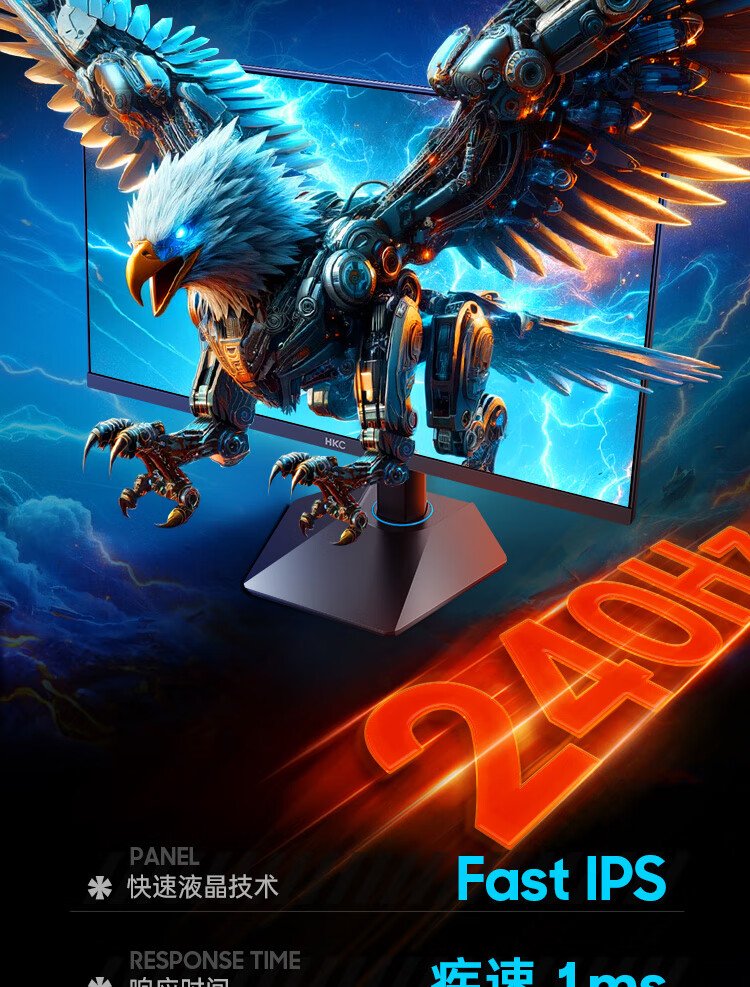 HKC 24.5-inch 2K 240Hz high brush 250Hz FastIPS hardware low blue light HDR400 rotating lift 1Ms gaming e-sports computer monitor Falcon G25H4