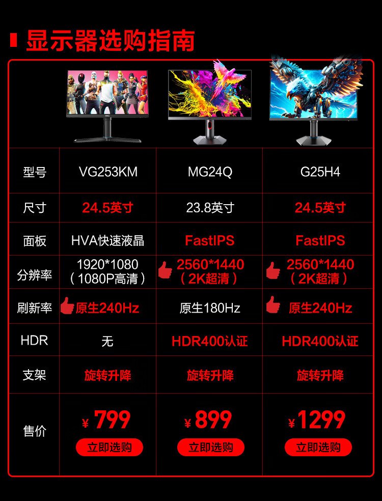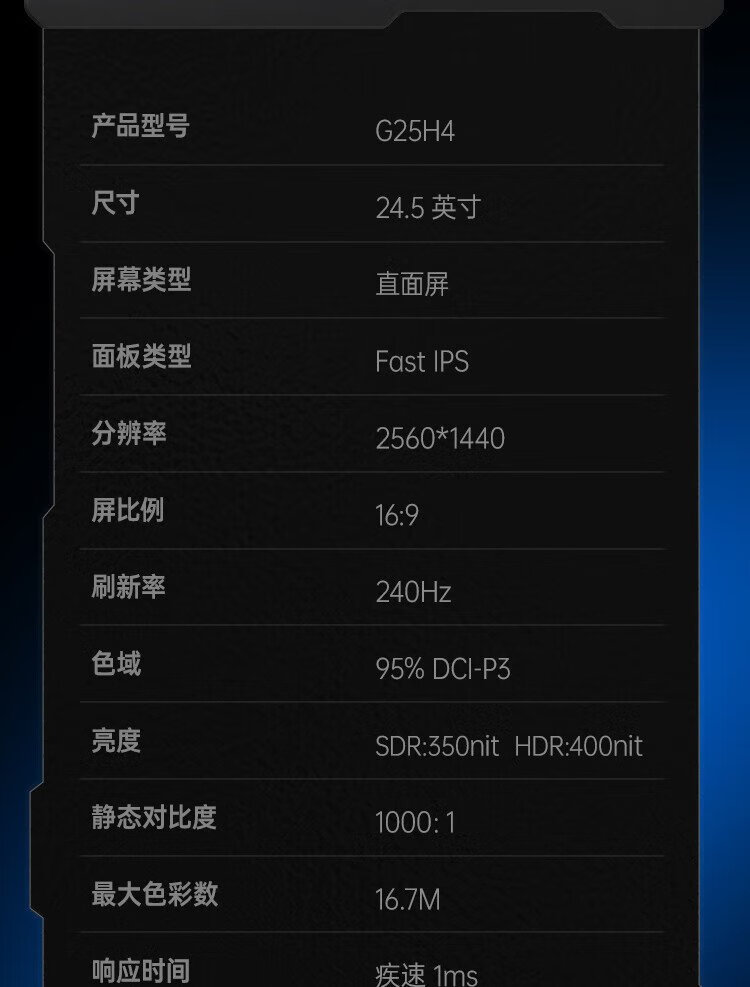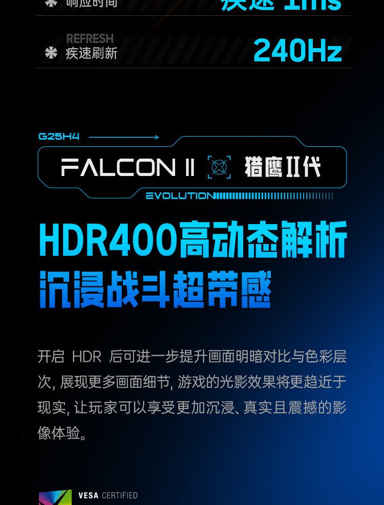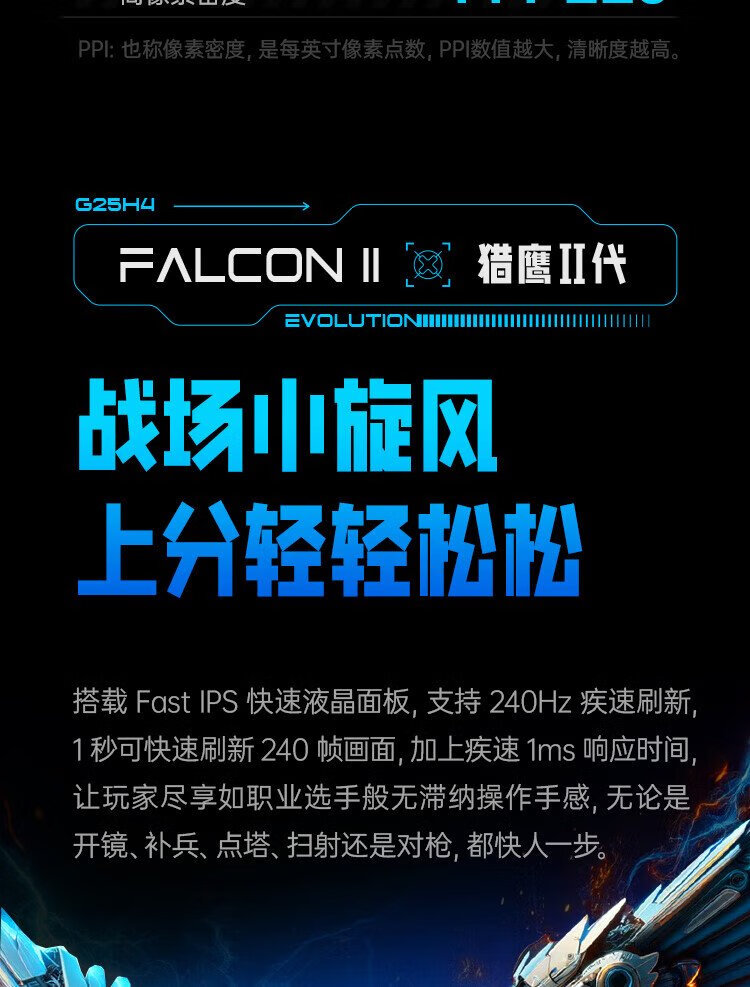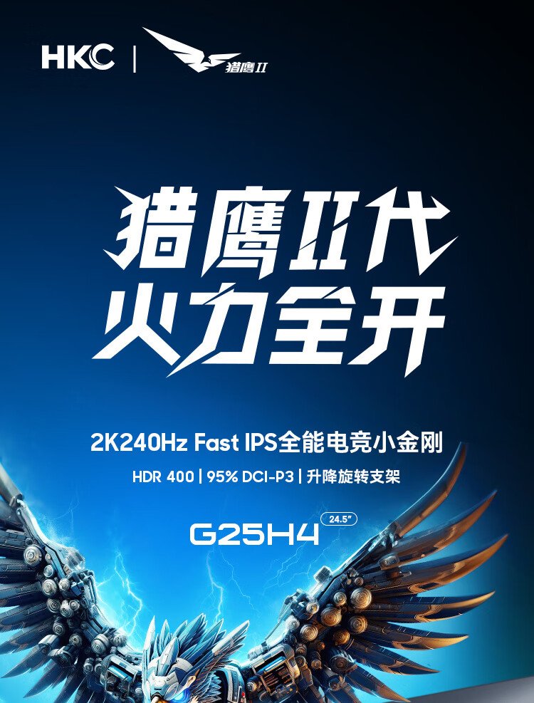 HKC 24.5-inch 2K 240Hz high brush 250Hz FastIPS hardware low blue light HDR400 rotating lift 1Ms gaming e-sports computer monitor Falcon G25H4