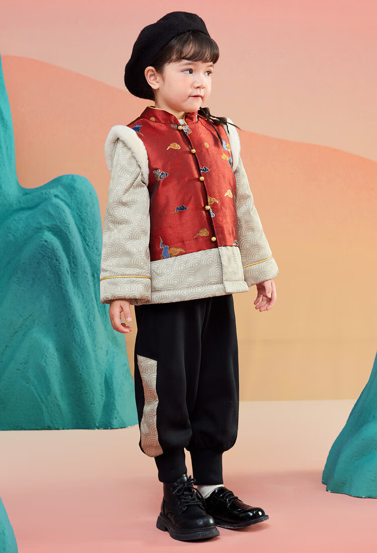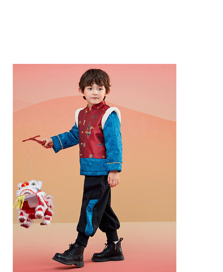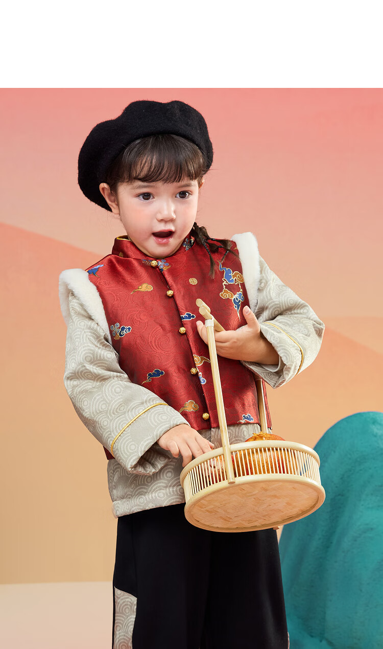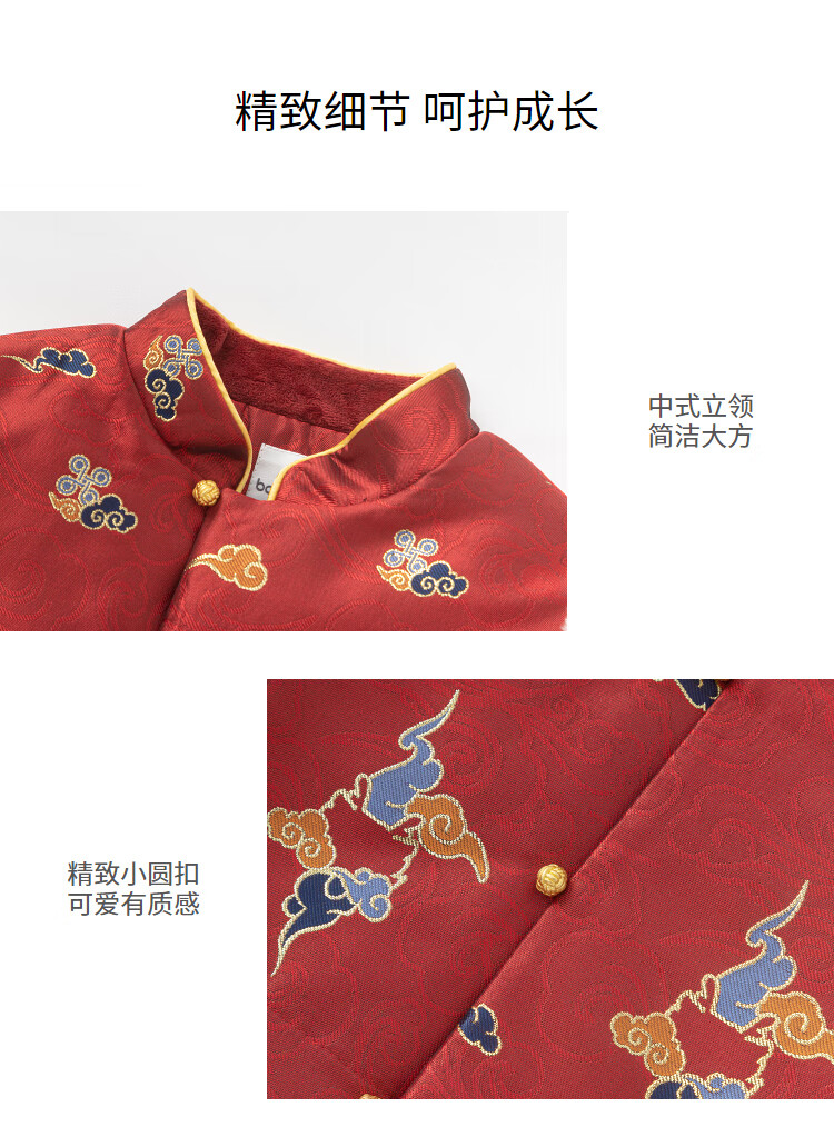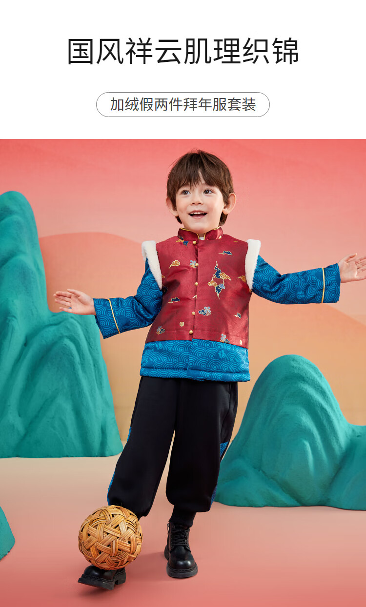 Balabala Boys' Suit Girls' Clothes Plus Velvet Winter Clothes National Style New Chinese New Year's Clothes Fake Two Pieces