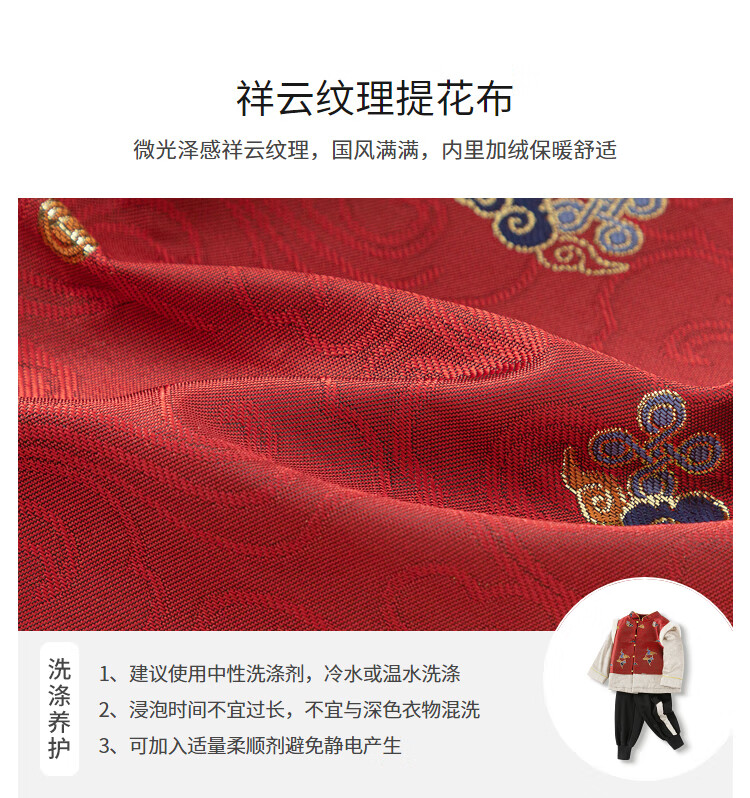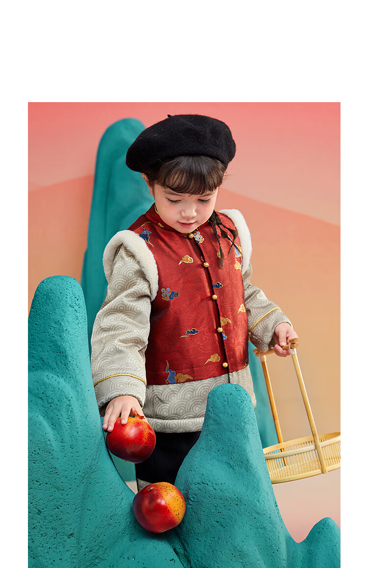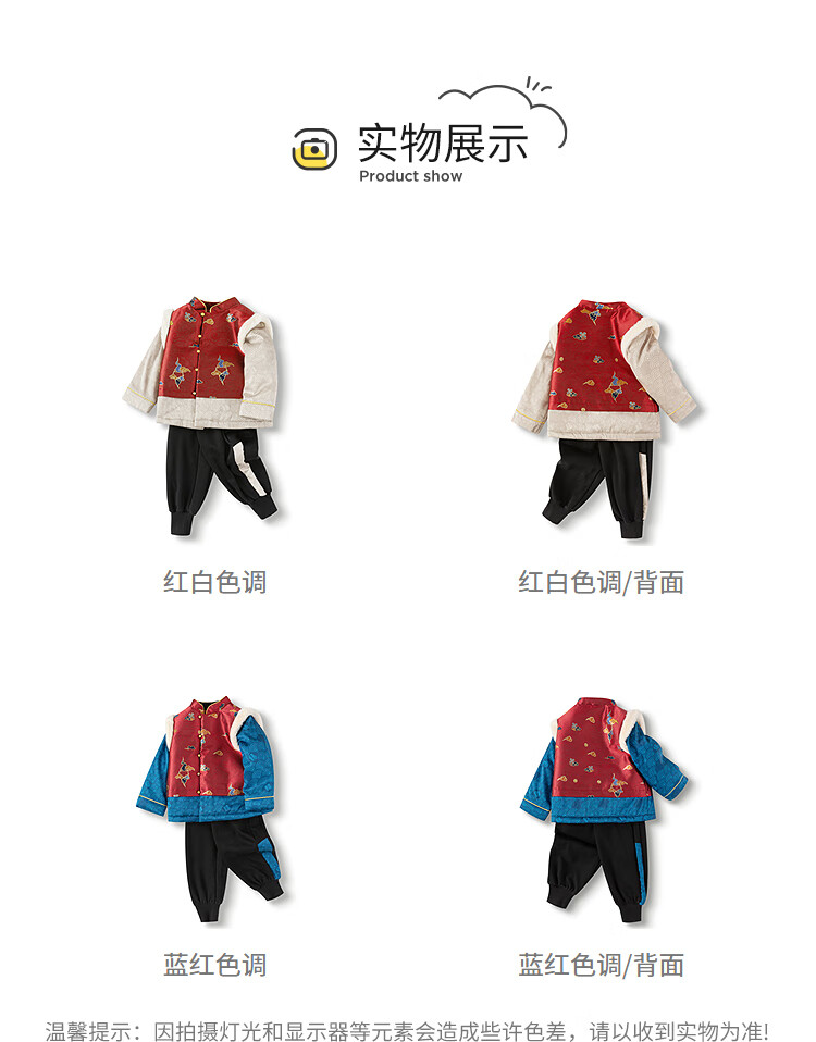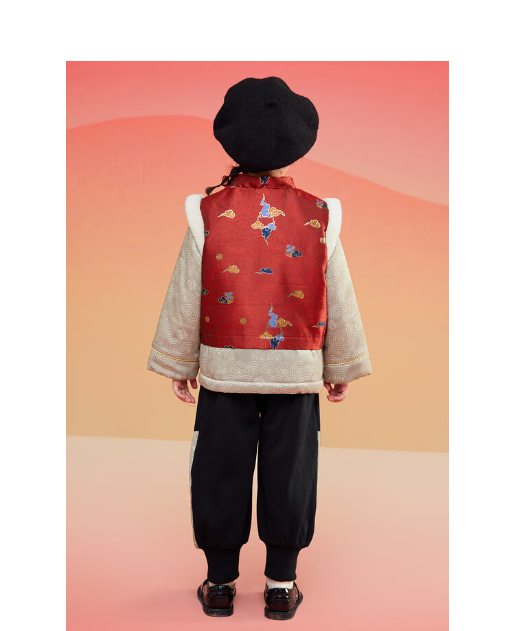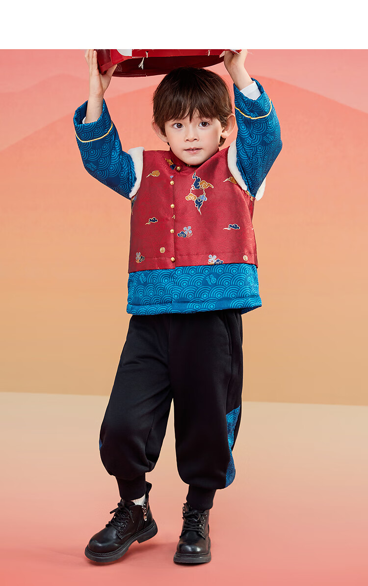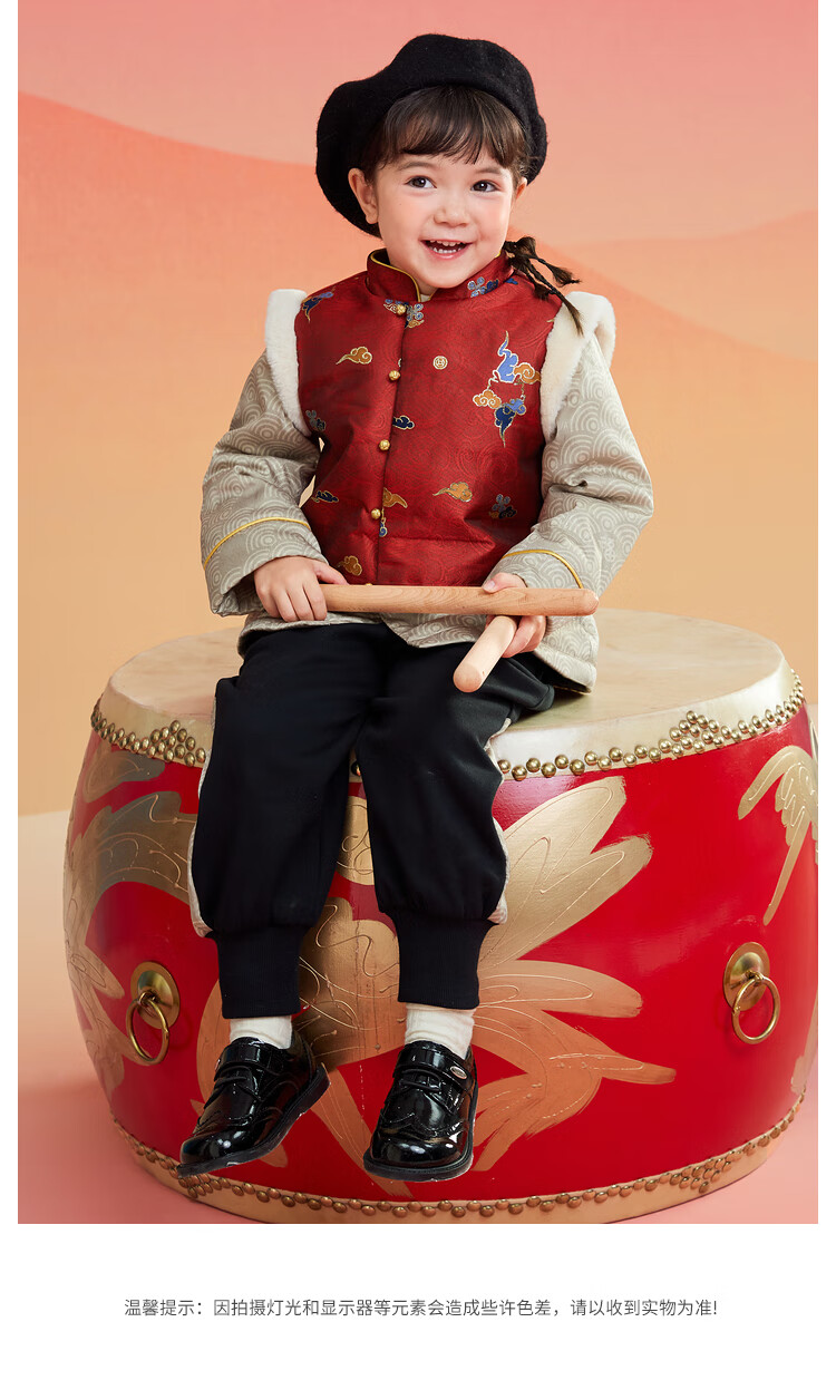 Balabala Boys' Suit Girls' Clothes Plus Velvet Winter Clothes National Style New Chinese New Year's Clothes Fake Two Pieces