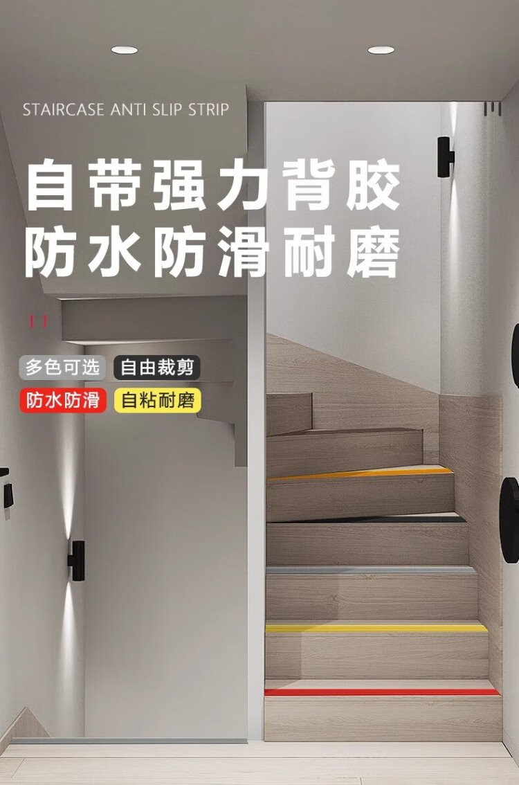 Zuoyou Zhonggong stair anti-slip strips gray 5cm*10m self-adhesive indoor step stickers outdoor step strips PVC anti-slip mat floor slope edge strips