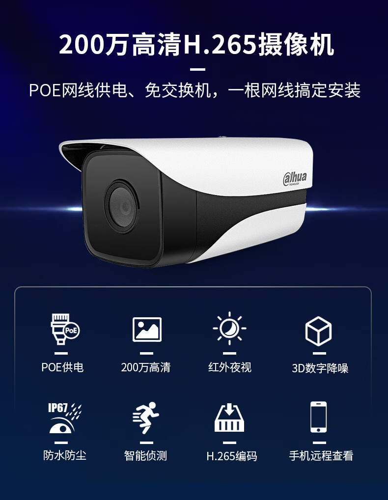 Dahua Dahua camera 2 million network high-definition gun POE network cable powered infrared night vision 50 meters DH-IPC-HFW1230M-A-I1 3.6mm