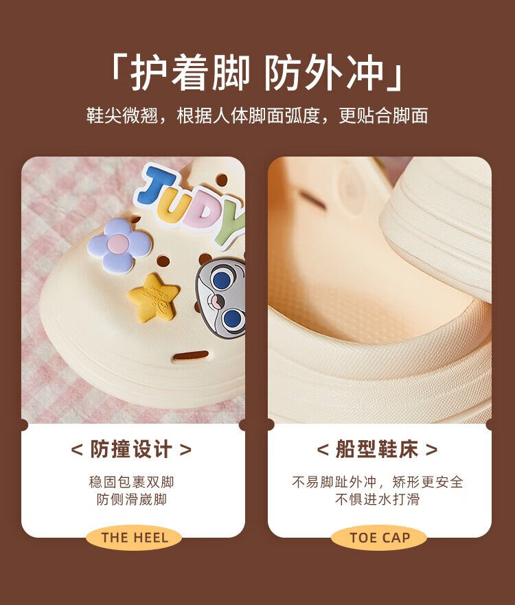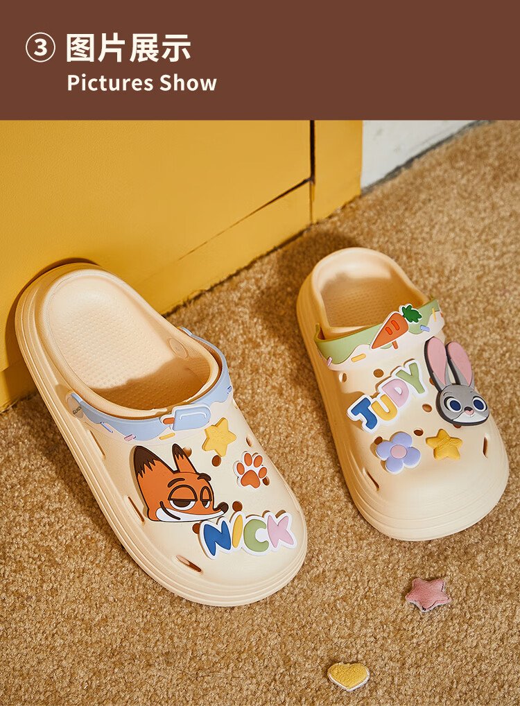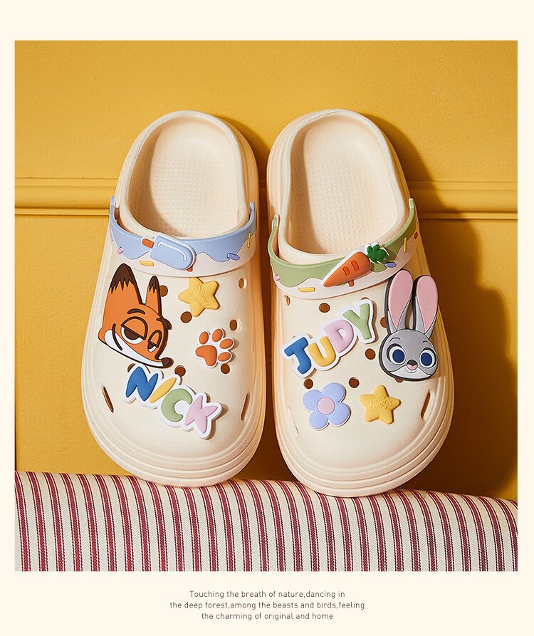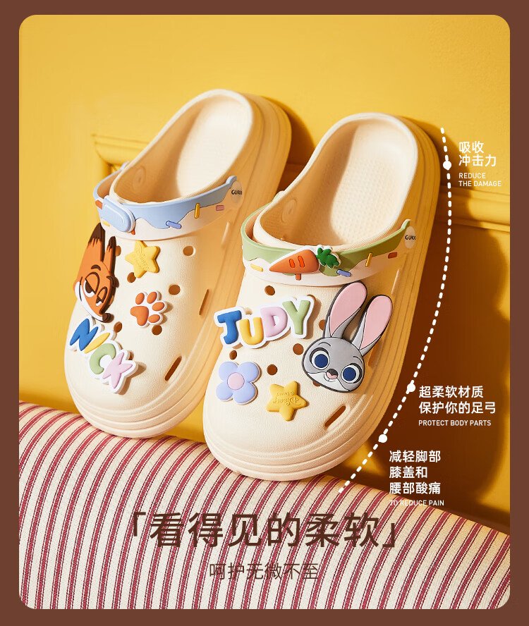 Gukoo Slippers Women's Summer Crazy Zootopia Crocs Home Can Wear Non-Slip Thick-Soled Beach Shoes Off-White 37-38