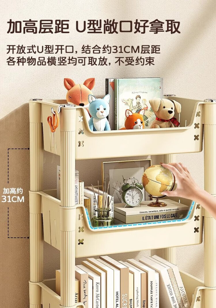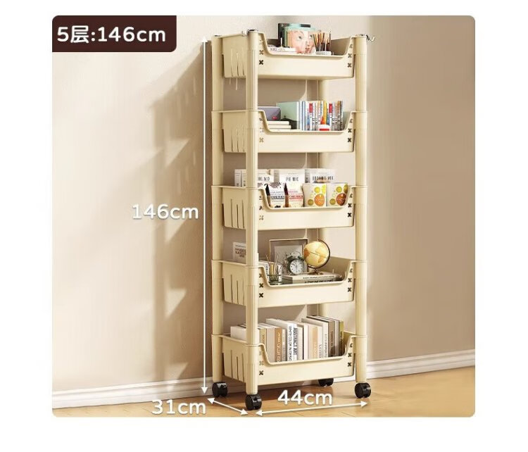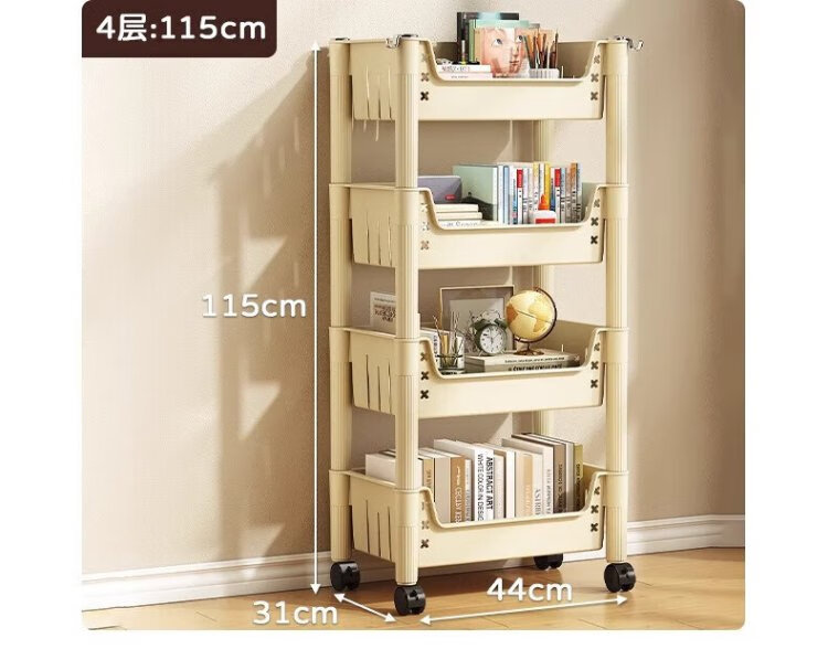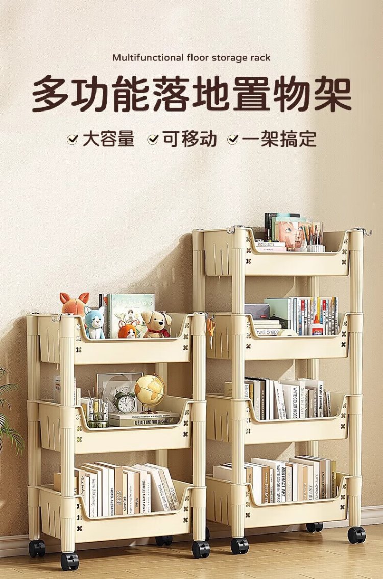 Quanpinwu movable bookshelf storage rack bookshelf floor-standing school bag storage rack storage rack snack rack small trolley small bookshelf