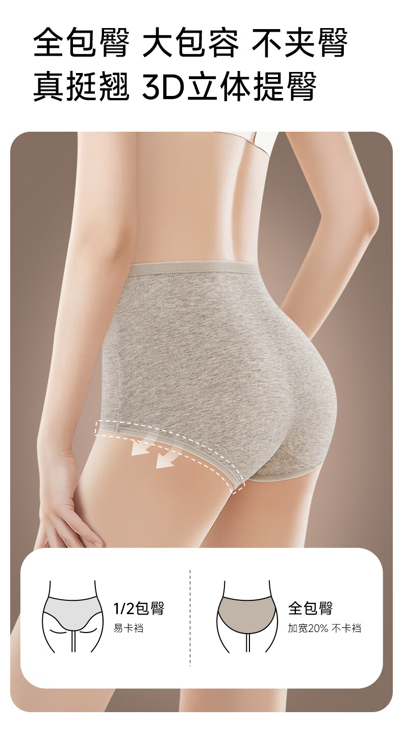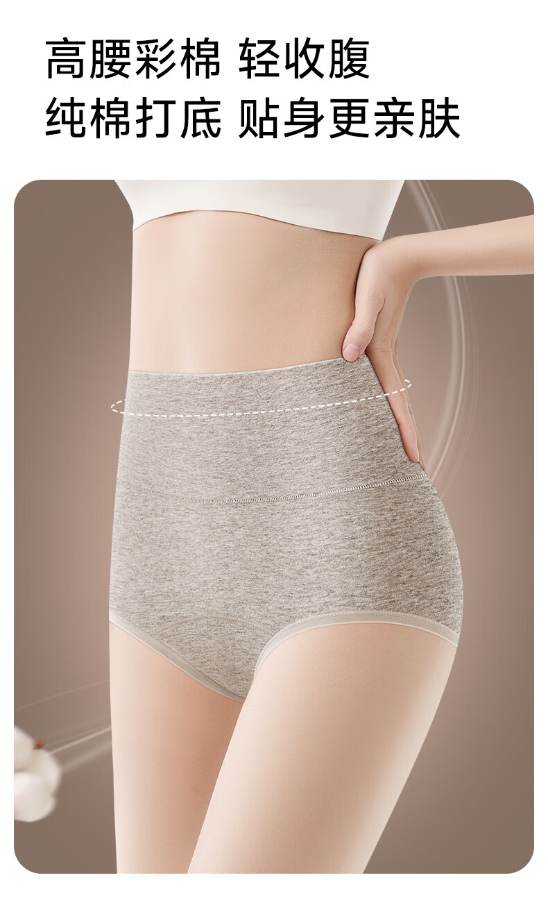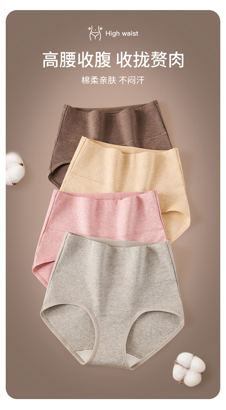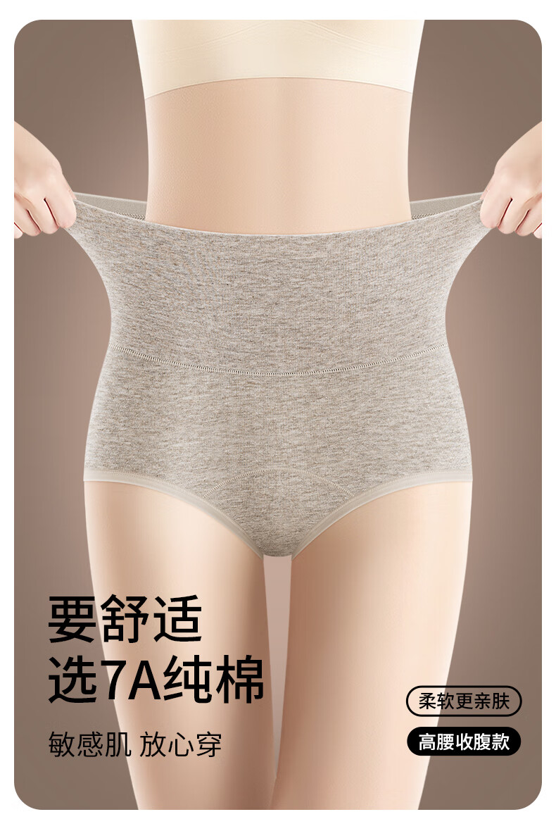 Meiya high-waist pure cotton women's underwear with extended silk crotch, seamless tummy control, butt lift, 7A women's triangle base