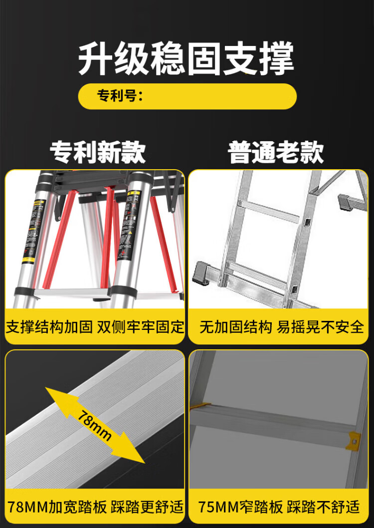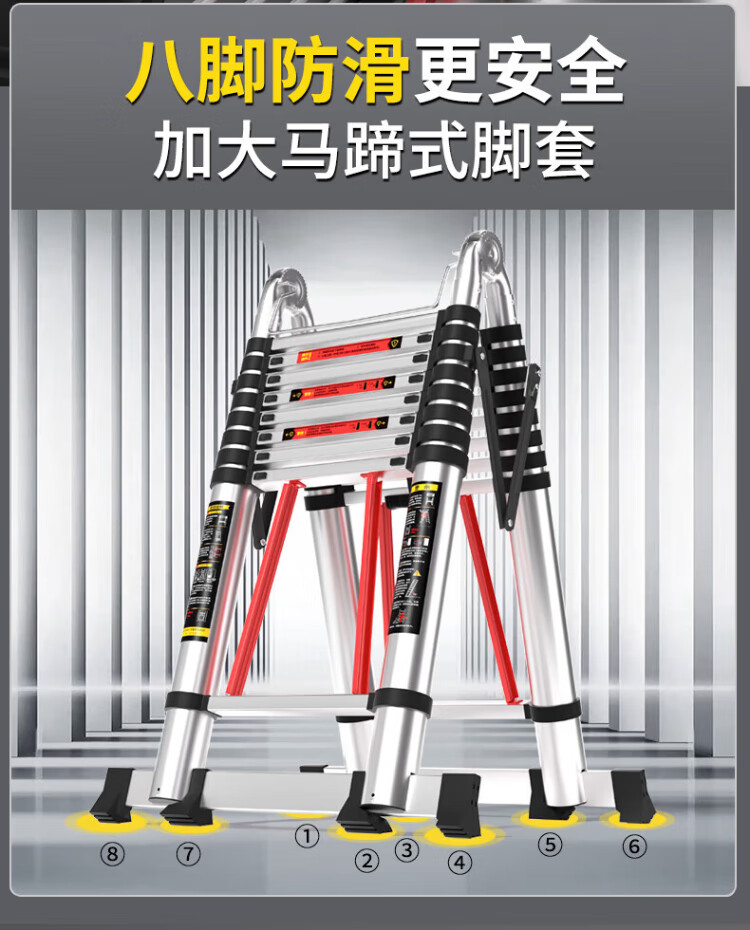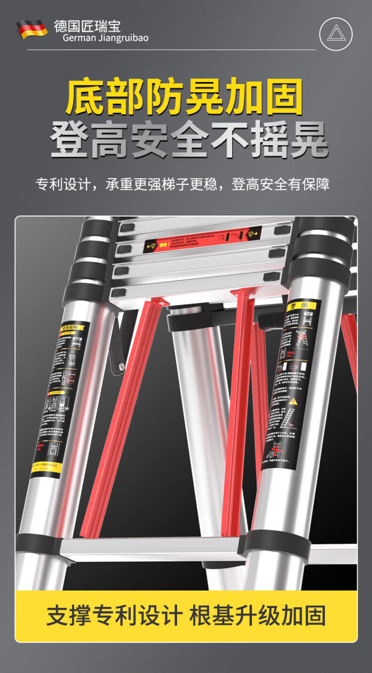 Jiang Ruibao herringbone ladder telescopic ladder thickened multi-functional aluminum alloy engineering folding staircase industrial grade ladder herringbone ladder 2.3 meters