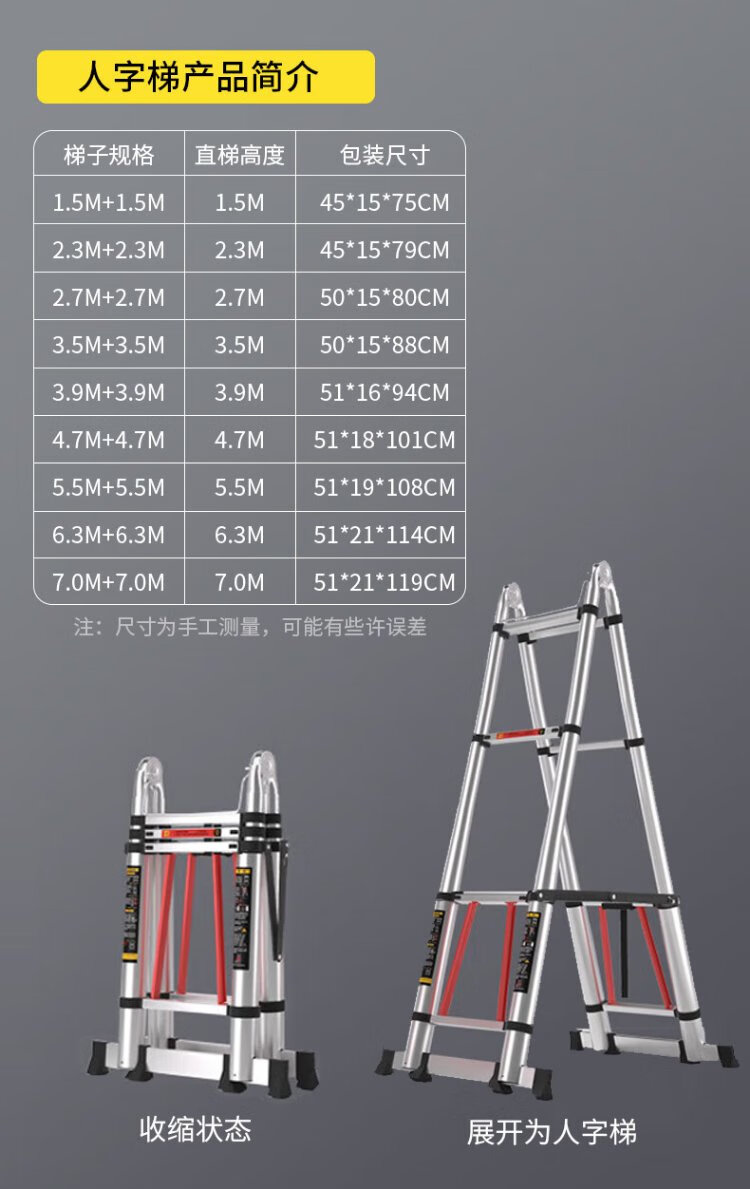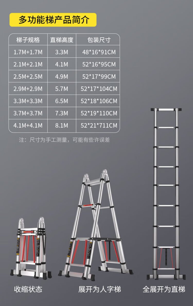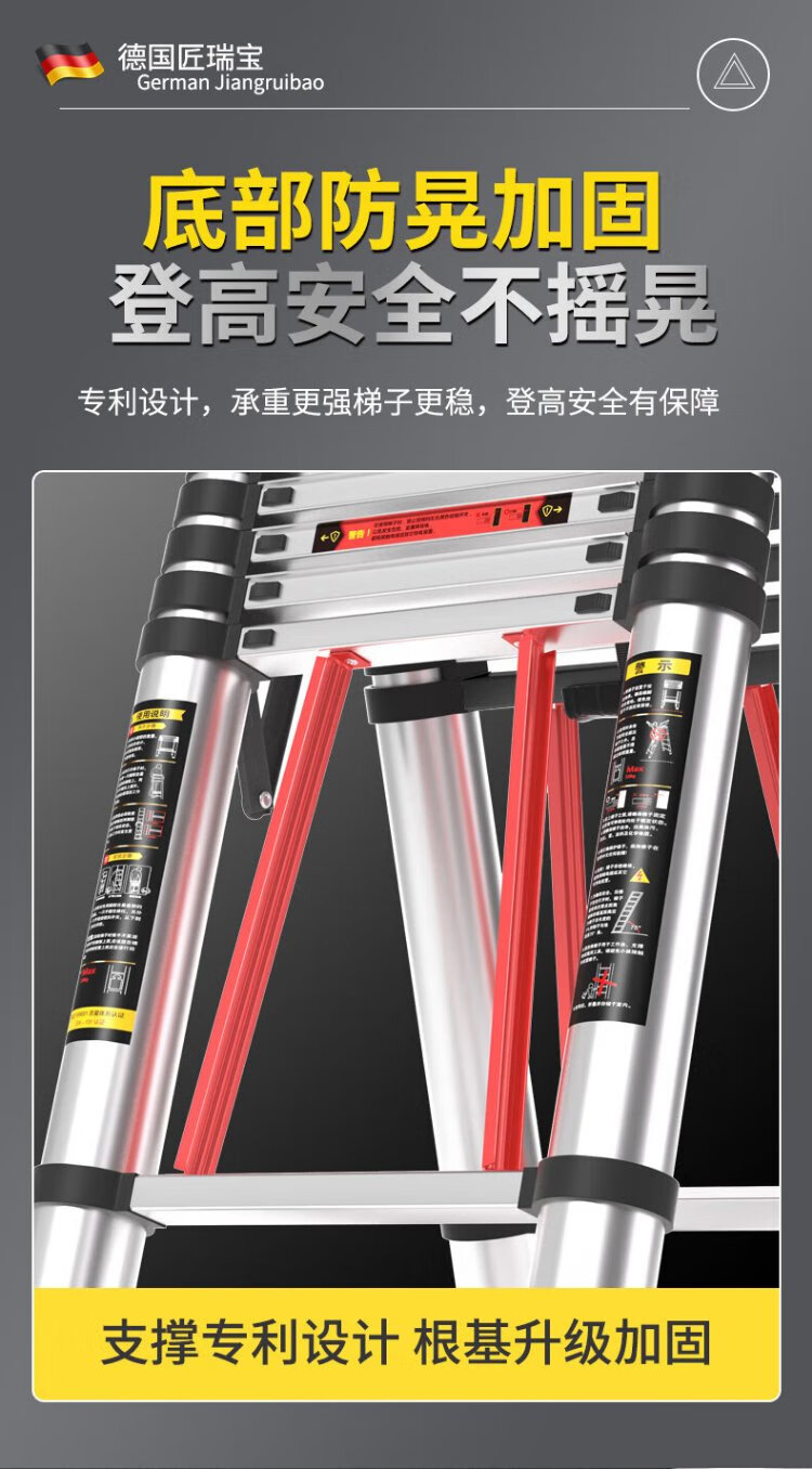 Jiang Ruibao Herringbone Ladder Telescopic Ladder Thickened Multifunctional Aluminum Alloy Engineering Folding Staircase Industrial Grade Ladder Multifunctional 3.7m Straight Ladder 7.4m