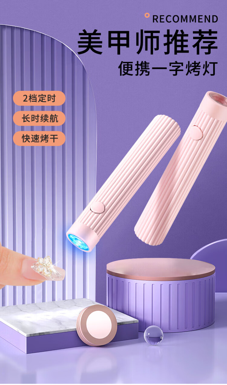 Warner Lin Kai nail lamp one-word lamp wearable nail polish gel solid glue baking lamp quick-drying lighting nail art handheld phototherapy lamp powder