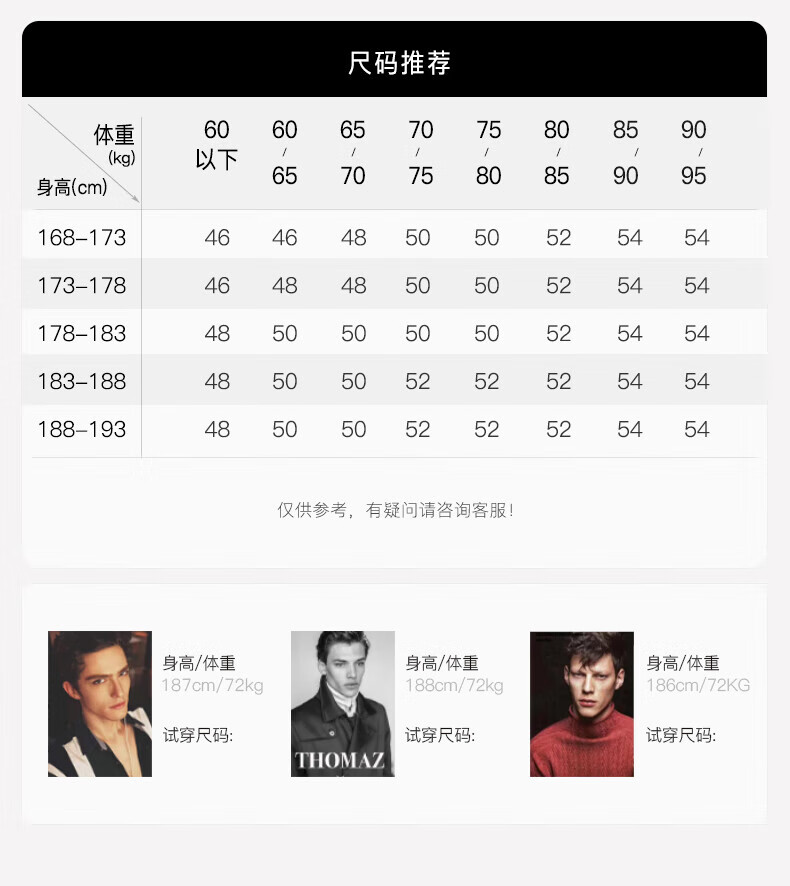 China (cm) 160-165/84-86 165-170 / 88-90 167-172 / 92-96 168-173 / 98-102 170-176 / 106-110