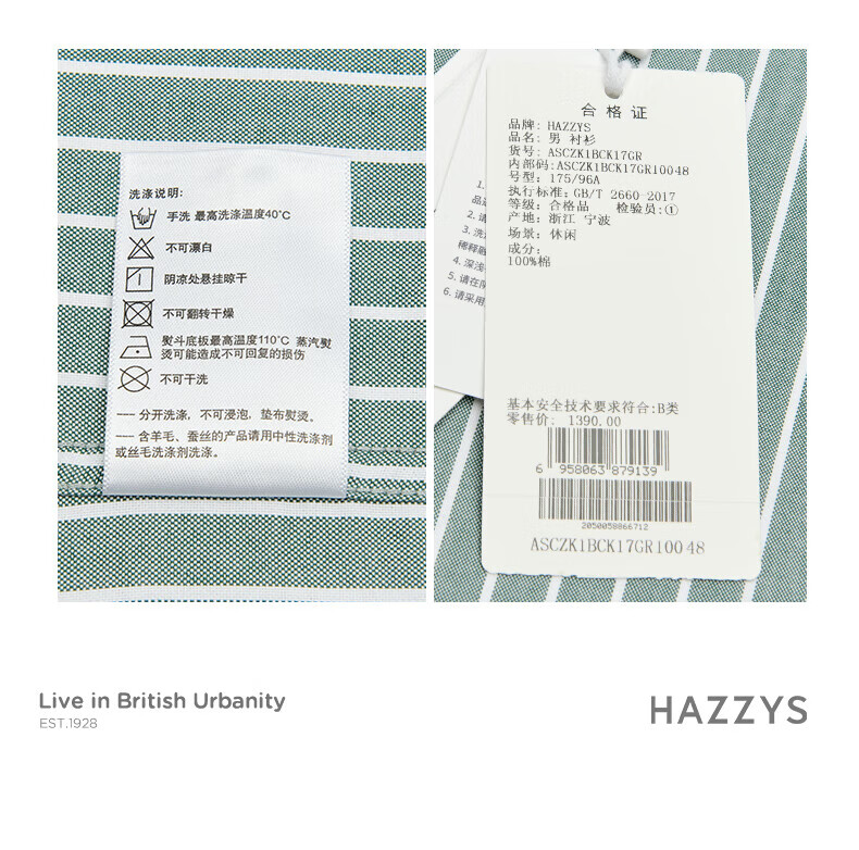 HAZZYS men's wide and narrow vertical striped cotton long-sleeved shirt ASCZK1BCK17 black BK 180/100A50