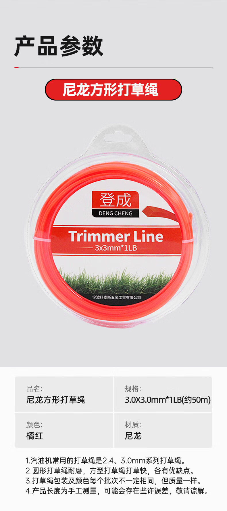 Dengcheng lawn mower mowing rope mowing rope lawn mower rope universal accessories lawn mower line nylon rope line cutting 3.0 square