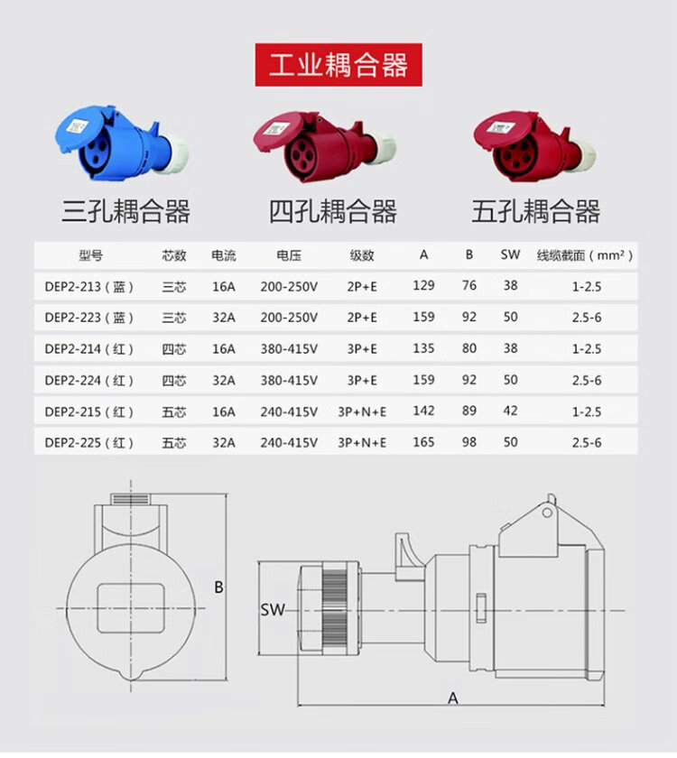 Delixi Electric aviation plug and socket coupler connector DEP2-013 16A 3-core 250V industrial plug
